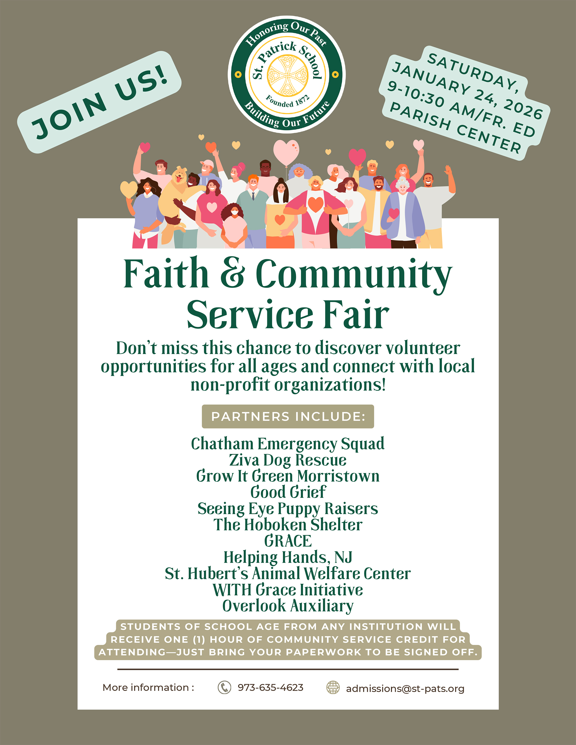 St. Patrick School in Chatham, N.J., will host a Faith & Community Service Fair on Saturday, Jan. 24,