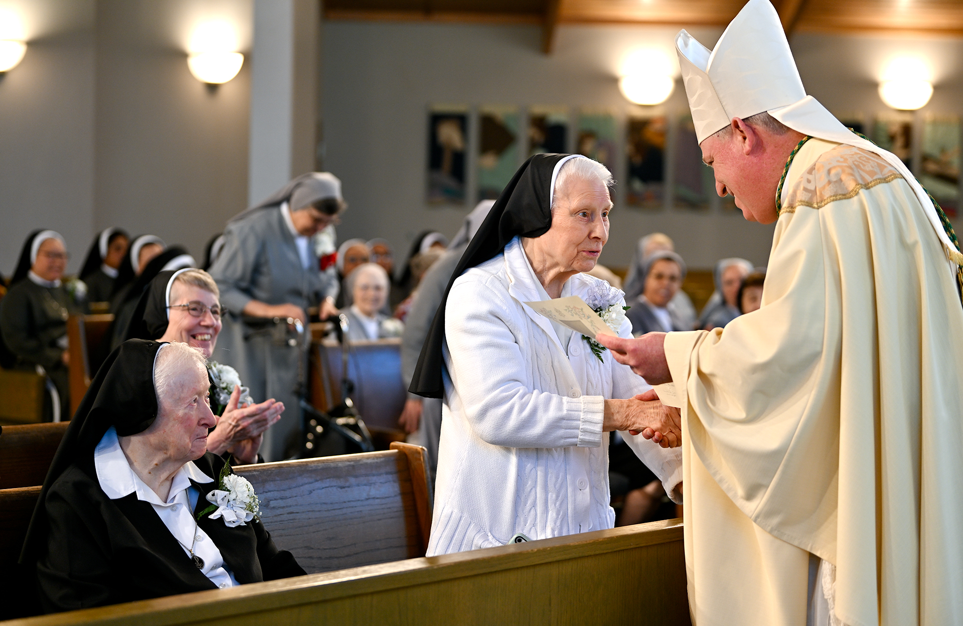 On April 18, Bishop Kevin J. Sweeney joyfully commemorated 55 dedicated religious sisters and priests as they reached major anniversaries in consecrated life — from 25 to an inspiring 80