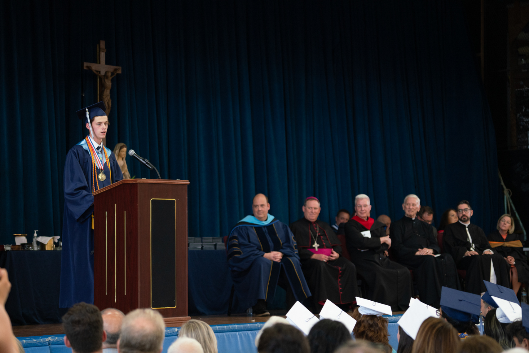 Morris Catholic High School in Denville held a Baccalaureate Mass and Commencement Ceremony on June 5 for its 100-member Class of 2025. Bishop Kevin J. Sweeney celebrated Mass with concelebrating priests and distributed diplomas to the graduates during the commencement ceremony. The valedictorian was Colin Shepard. The salutatorian was David Bondarowicz. The Class of 2025 earned $24,763,800 in scholarships and financial aid.