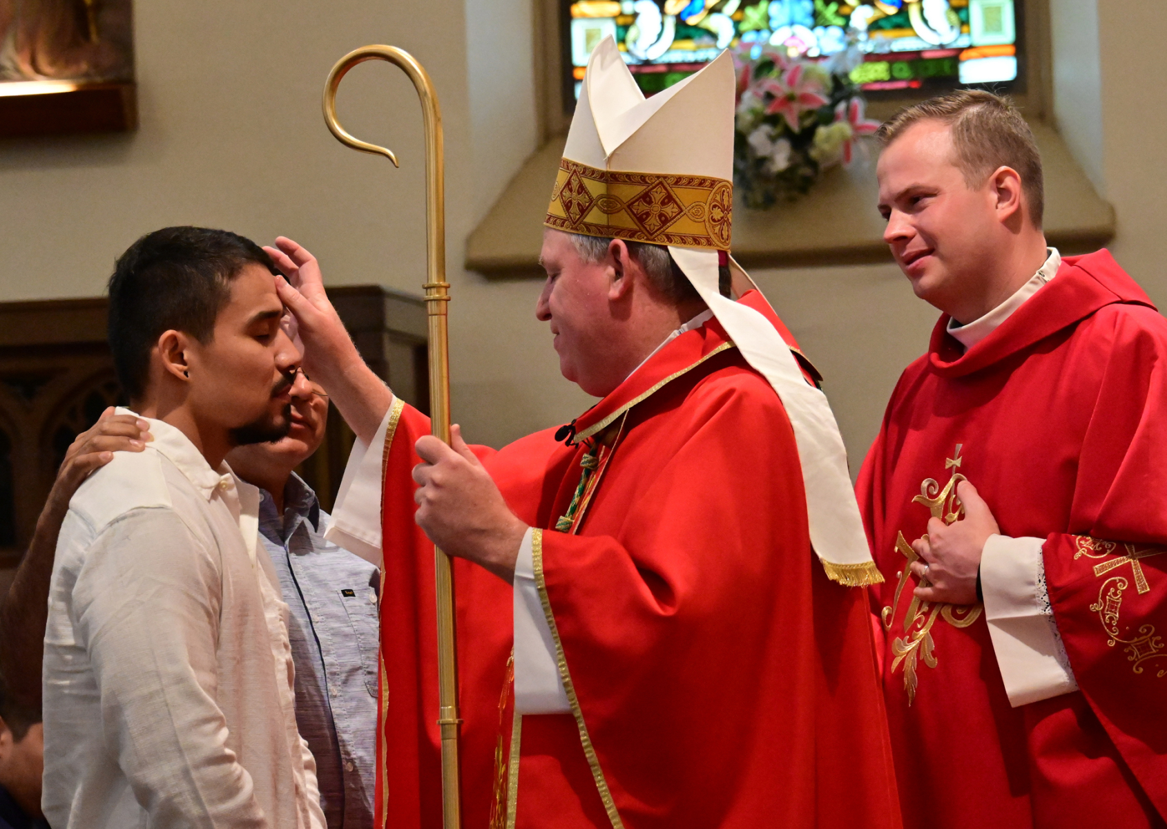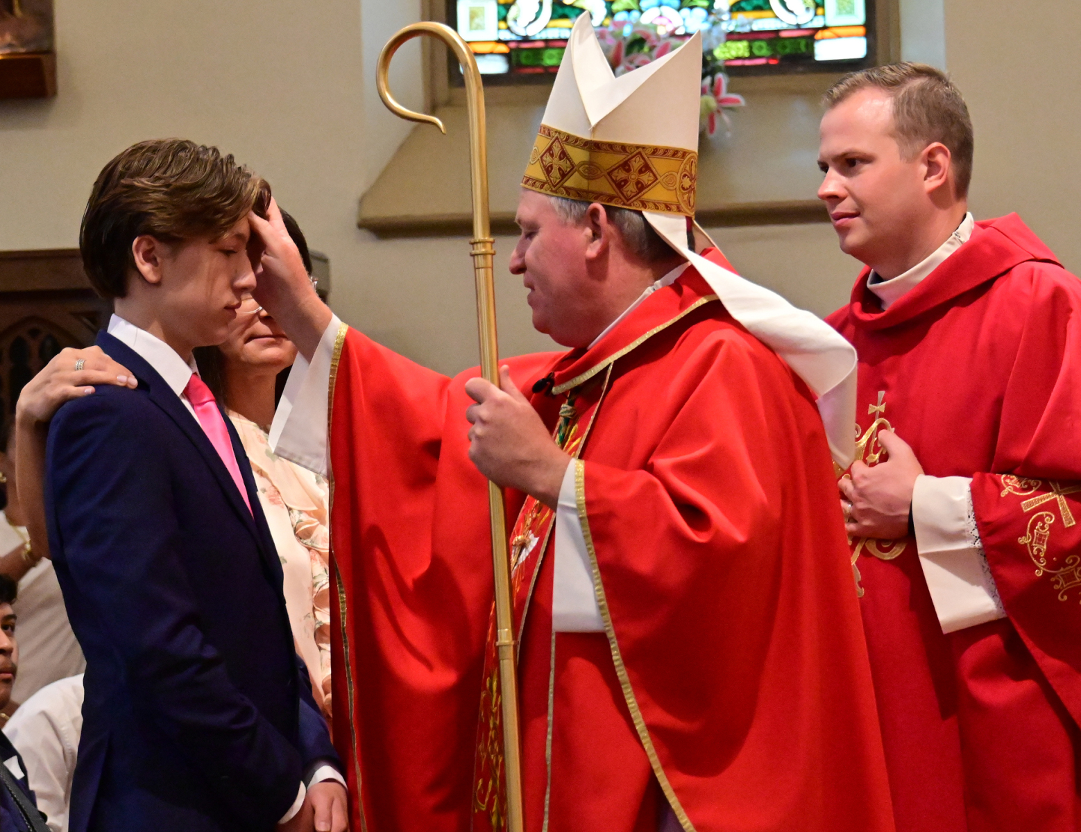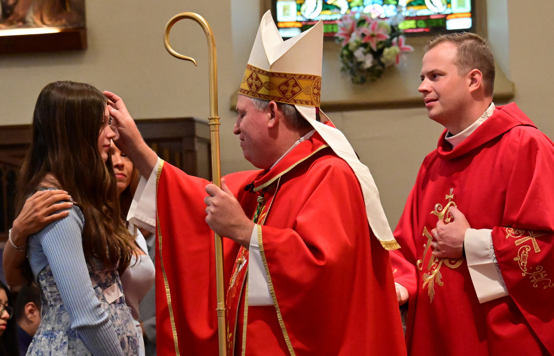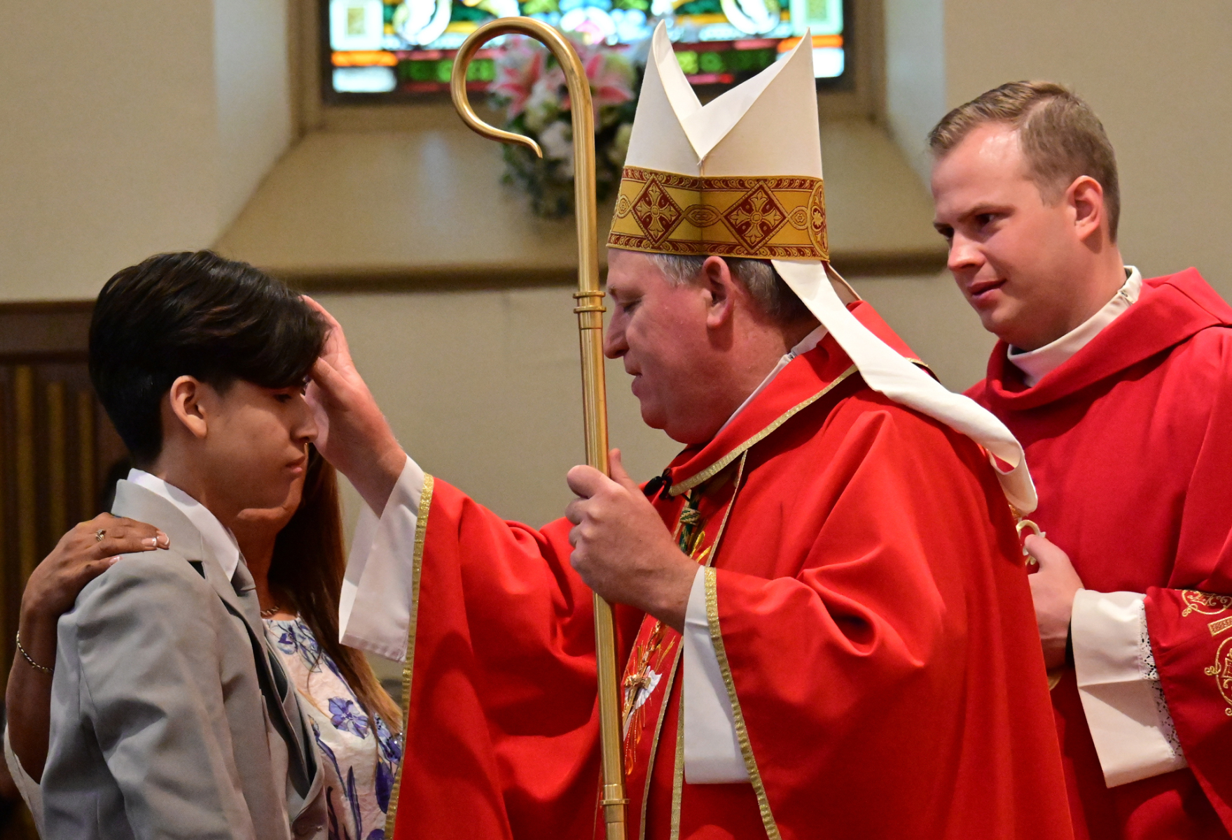 St. Bonaventure Parish in Paterson welcomed Bishop Kevin J. Sweeney on June 8, who celebrated Mass. There, the bishop confirmed 12 youth of the parish. Father Alex Nevitt, administrator of St. Bonaventure’s, concelebrated the Mass with Bishop Sweeney.