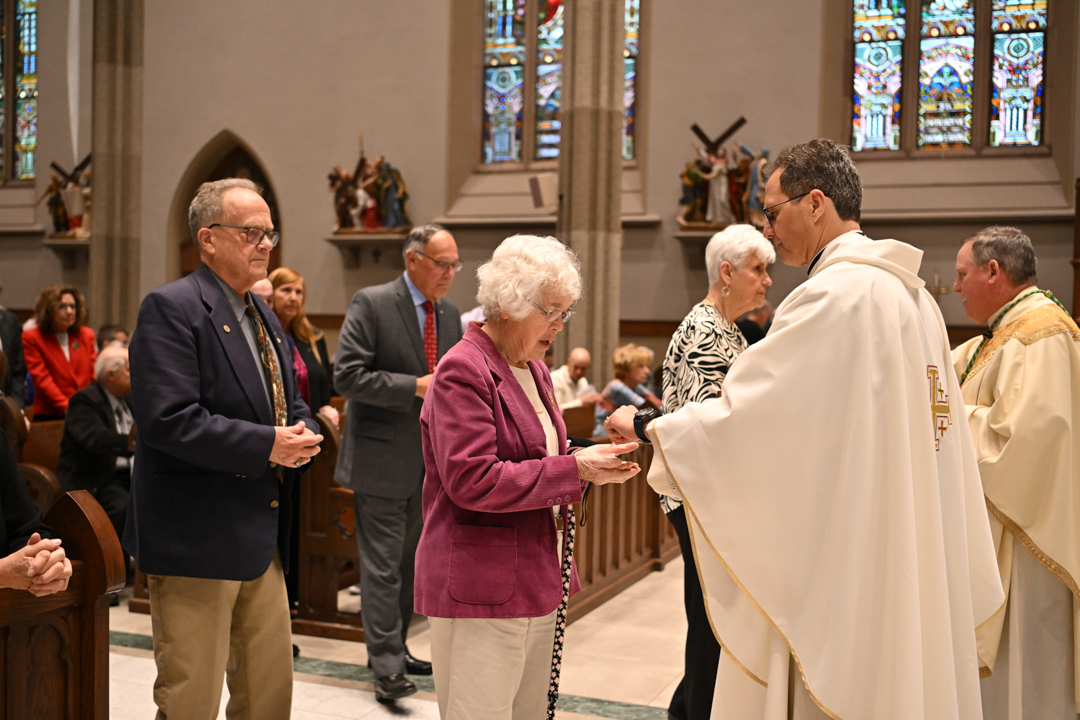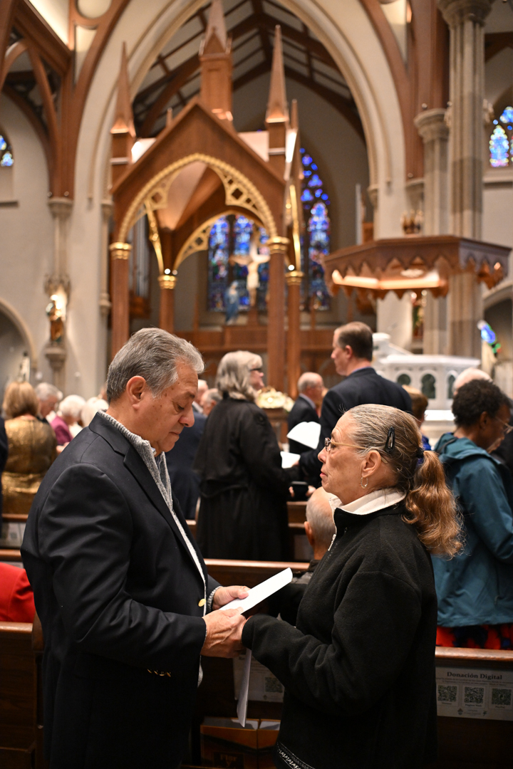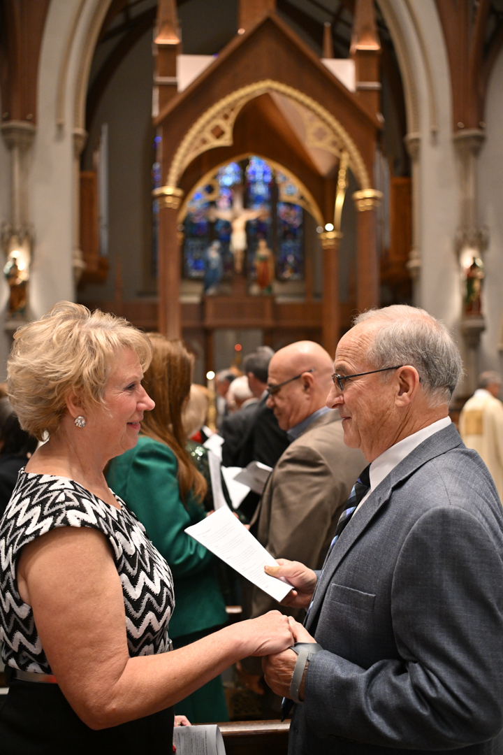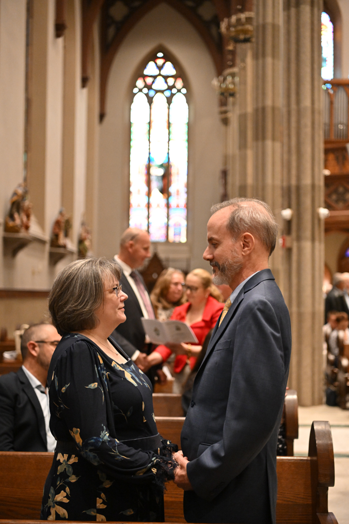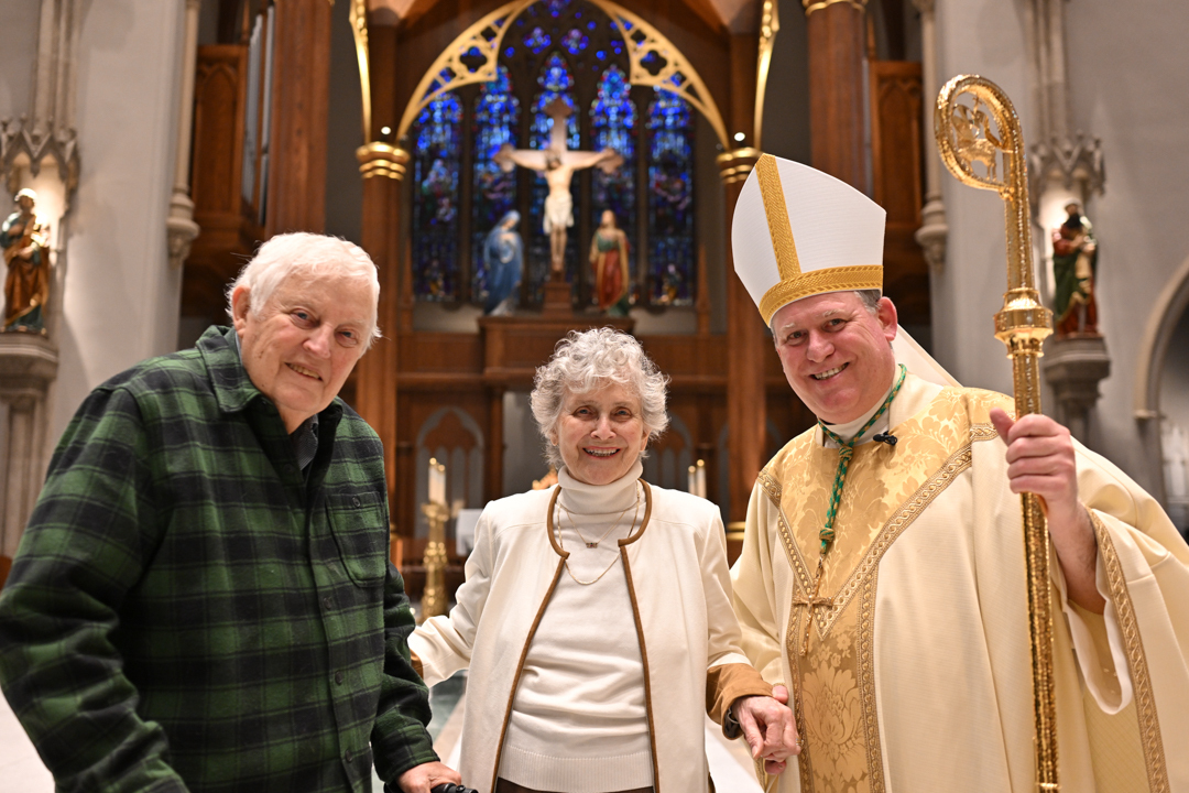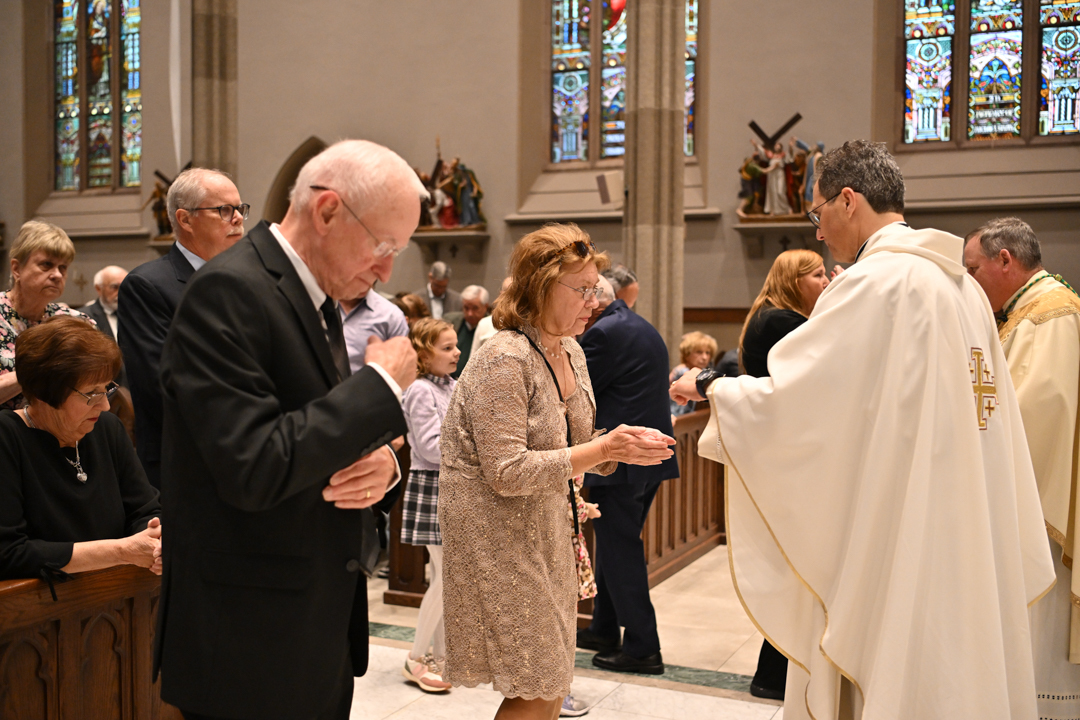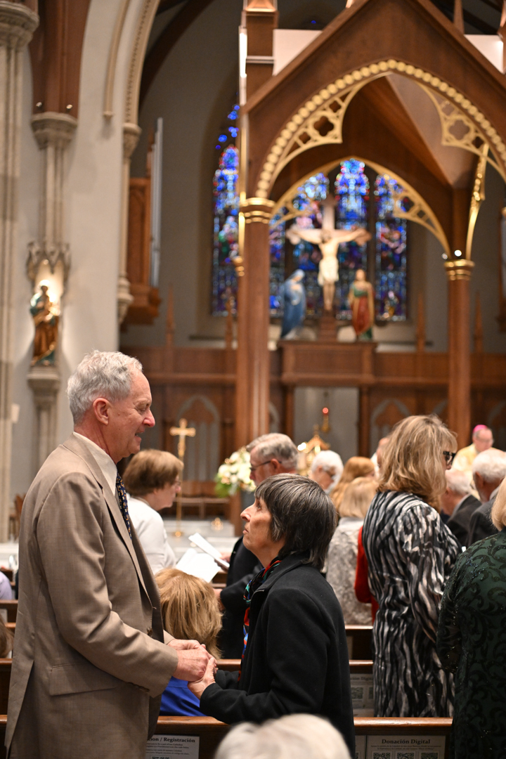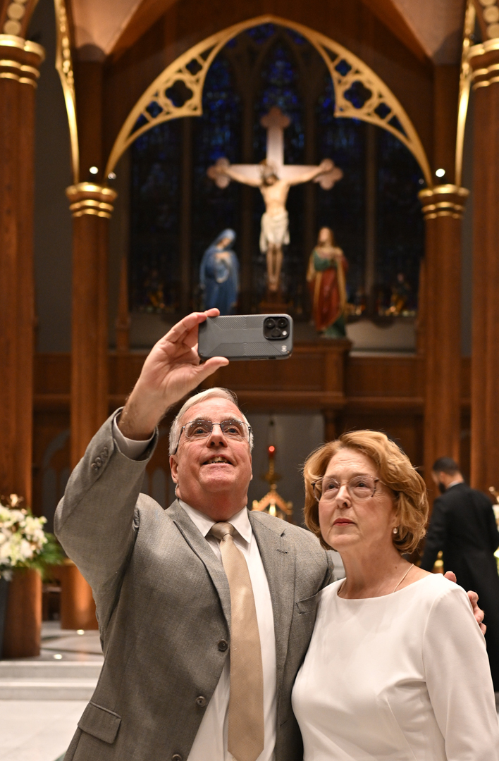 Couples marking 25, 50, or more years of marriage celebrated, often with their families present. They exchanged vows holding hands, like on their wedding days. Before Bishop Sweeney, they renewed their love, fidelity, and commitment to each other in Holy Matrimony.