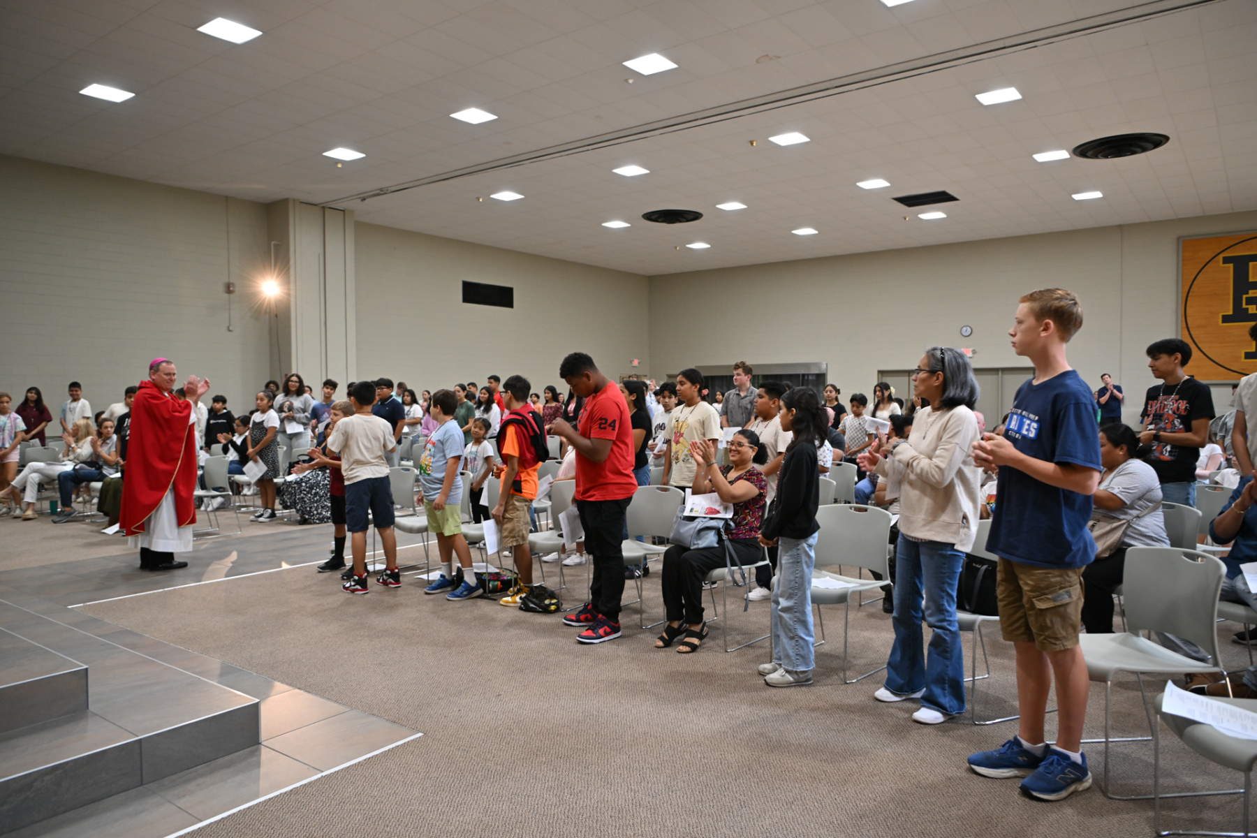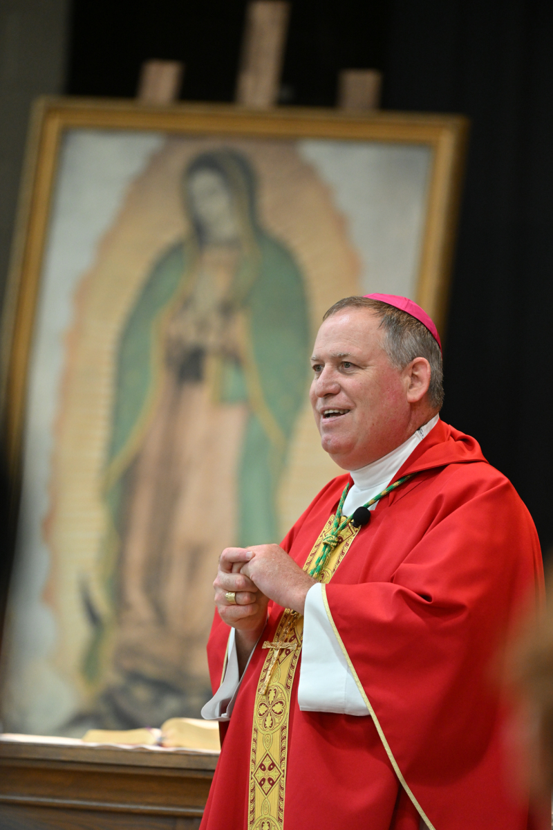The event included workshops on the Eucharist and vocations; Mass, a Eucharistic procession, and Benediction with Bishop Kevin J. Sweeney; and lunch, games, and sports for the youth.