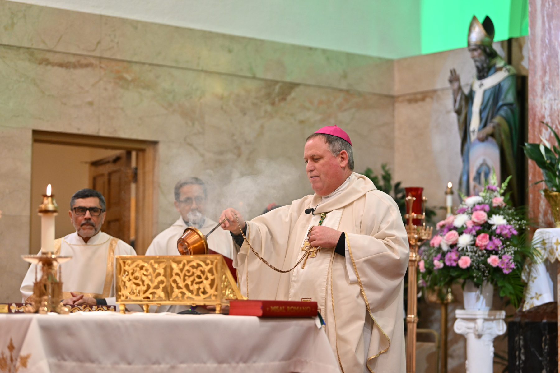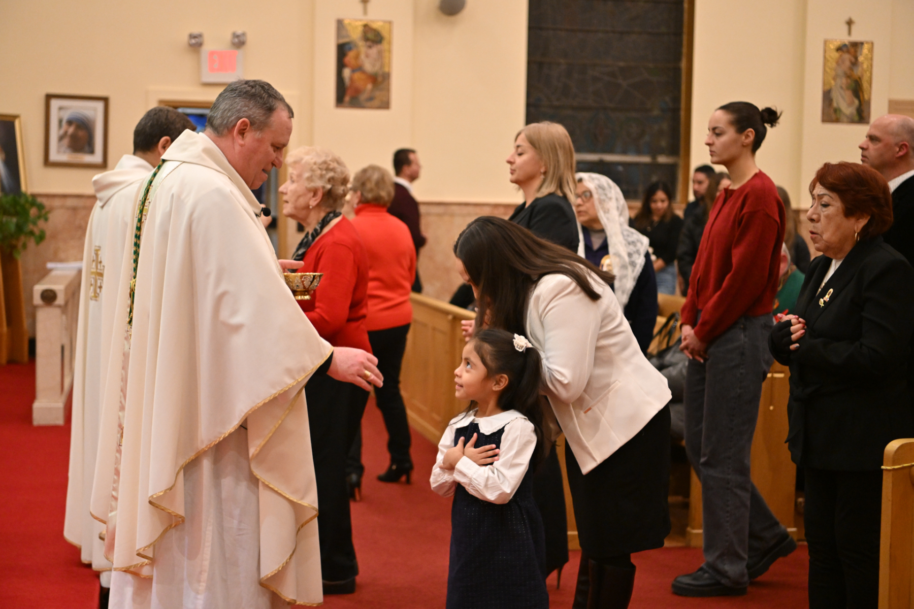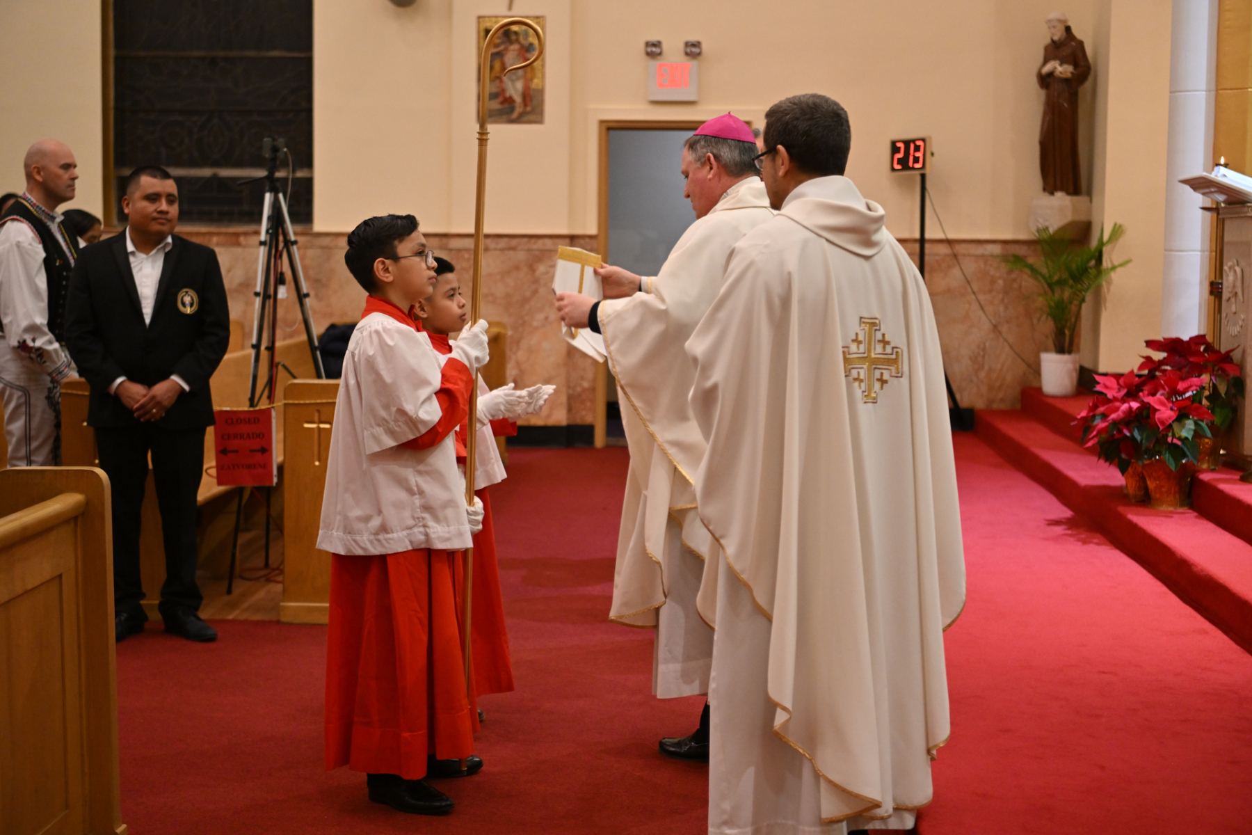 Bishop Kevin J. Sweeney was the main celebrant of the Mass. Father Misael Jaramillo, pastor of Cyril and Methodius, and Father Francis Conka, a priest of the Congregation of the Oratory of St. Philip Neri from New York, were concelebrants. Deacon Eugenio Morales of the parish assisted with the liturgy.