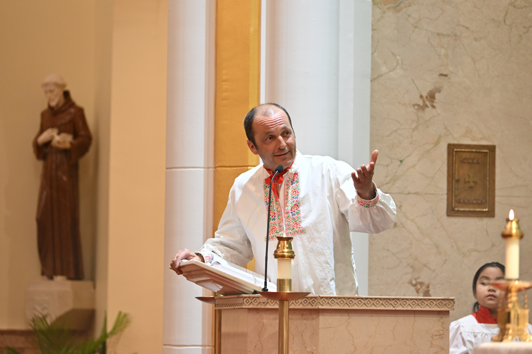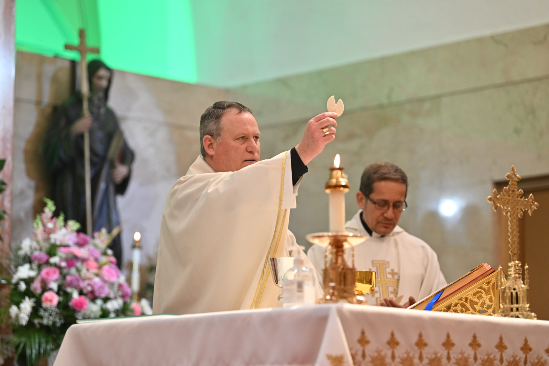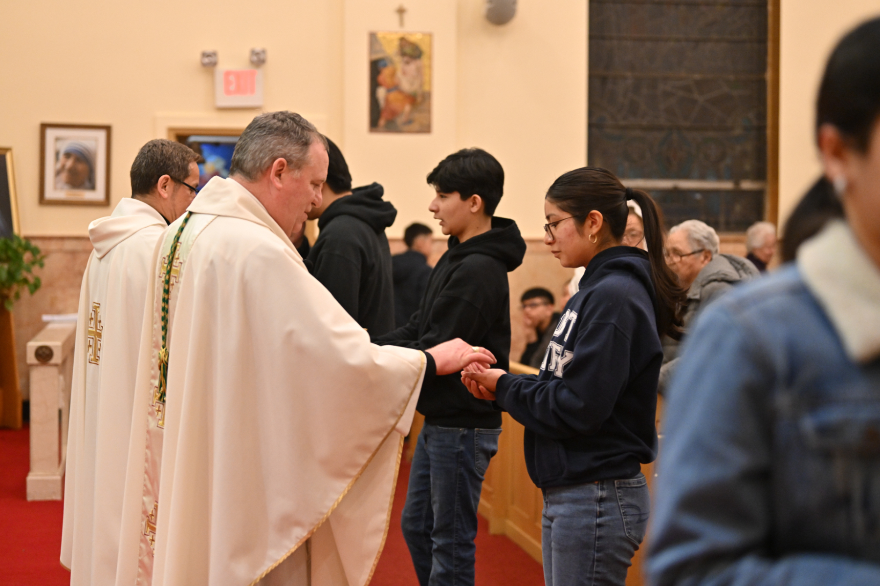 Bishop Kevin J. Sweeney was the main celebrant of the Mass. Father Misael Jaramillo, pastor of Cyril and Methodius, and Father Francis Conka, a priest of the Congregation of the Oratory of St. Philip Neri from New York, were concelebrants. Deacon Eugenio Morales of the parish assisted with the liturgy.