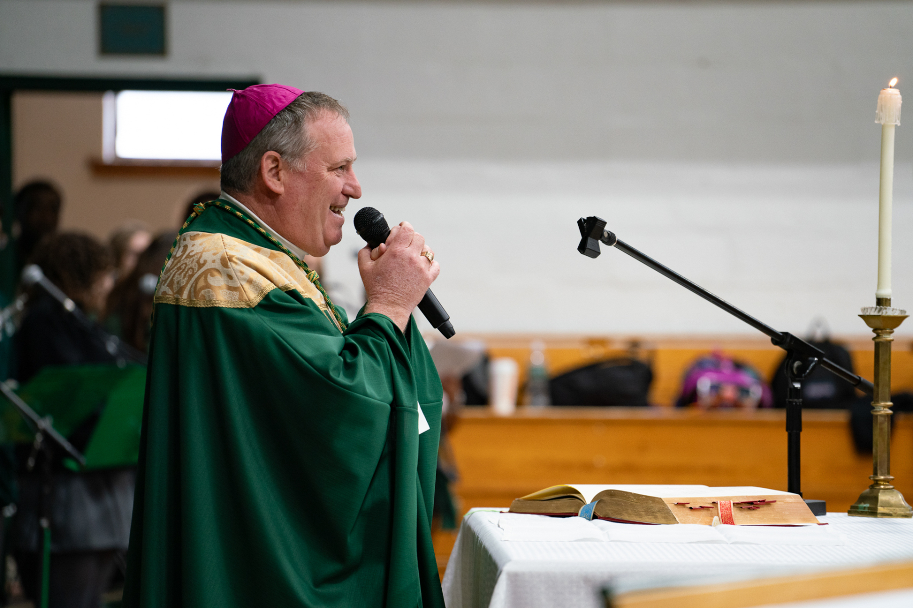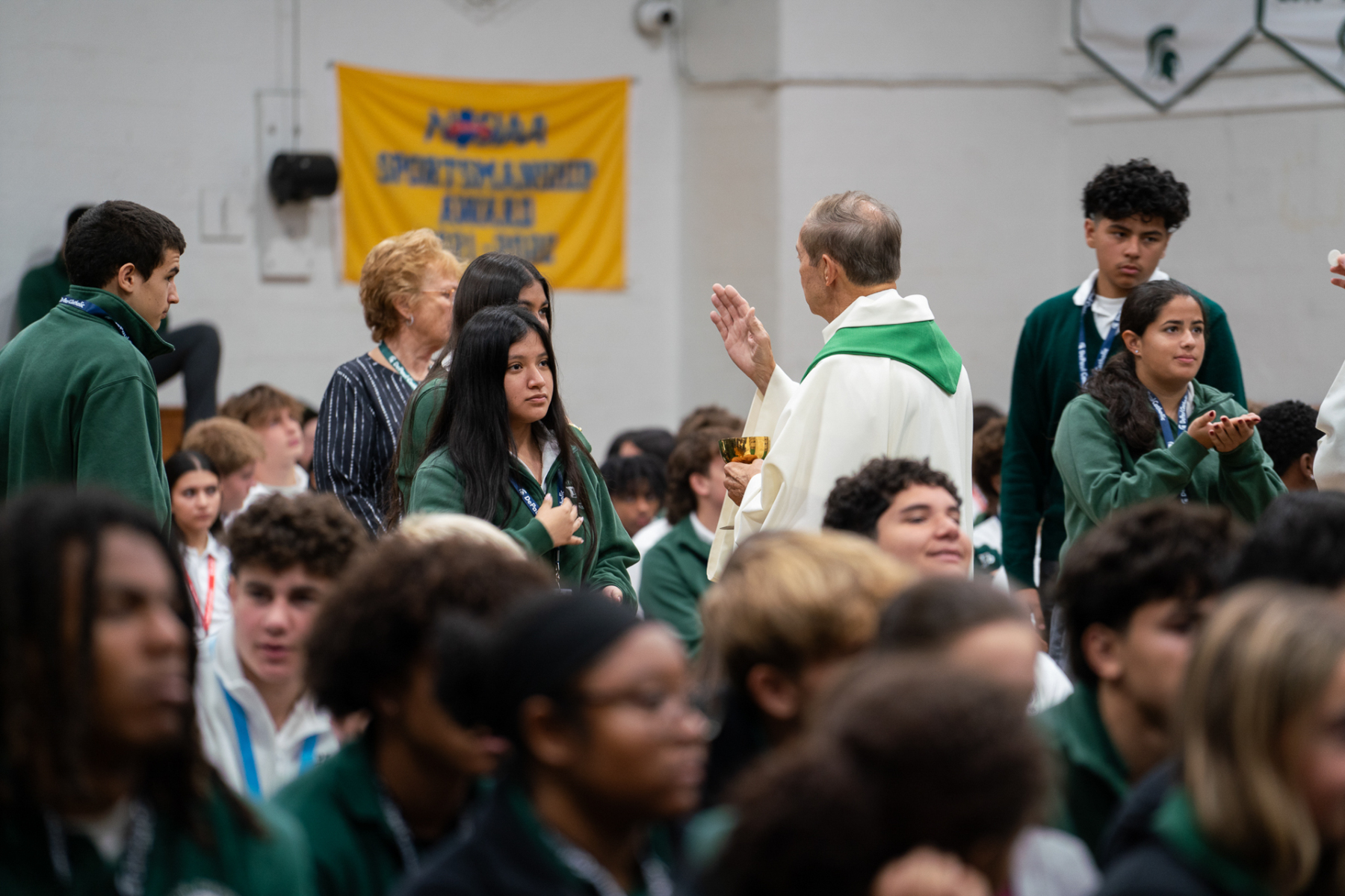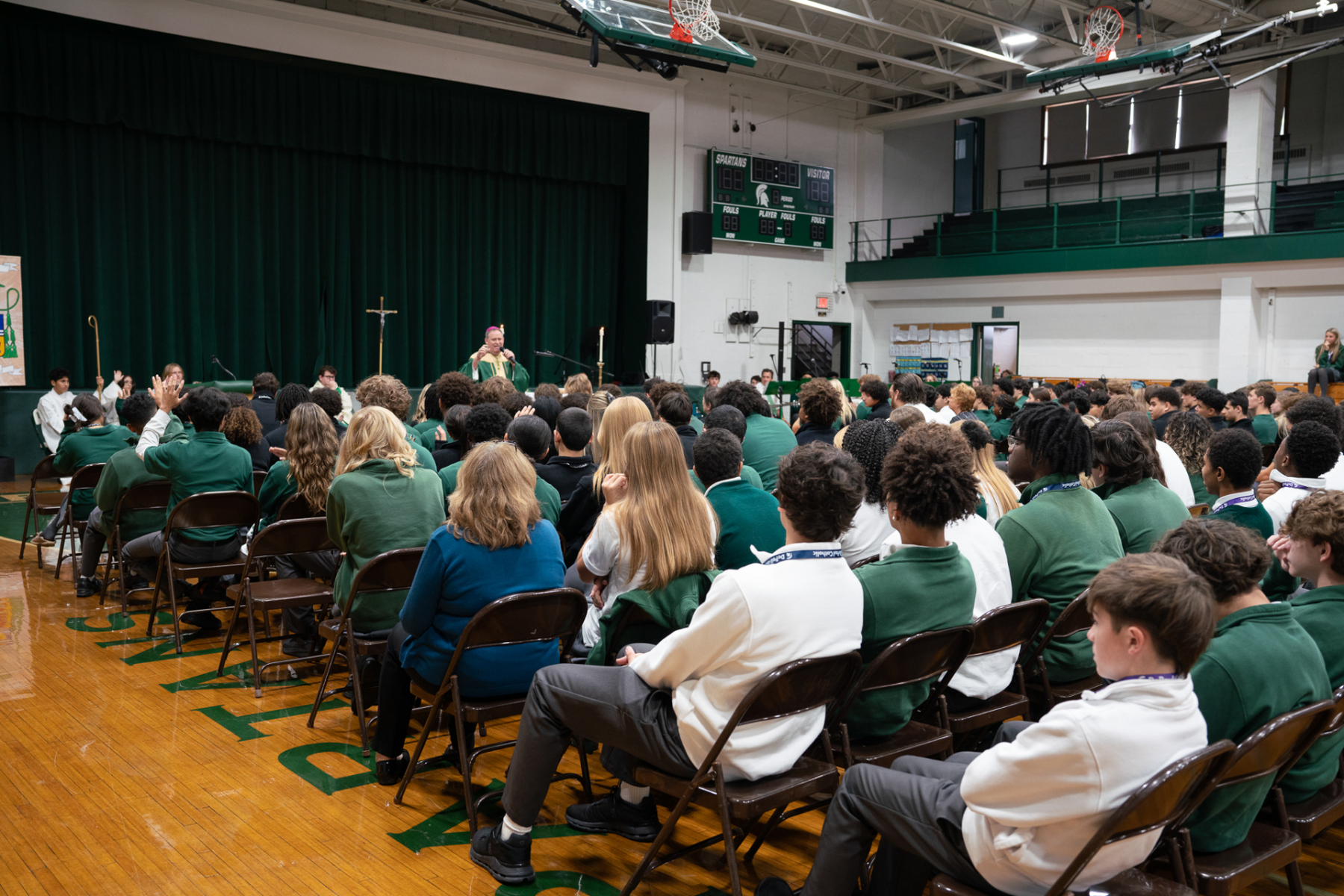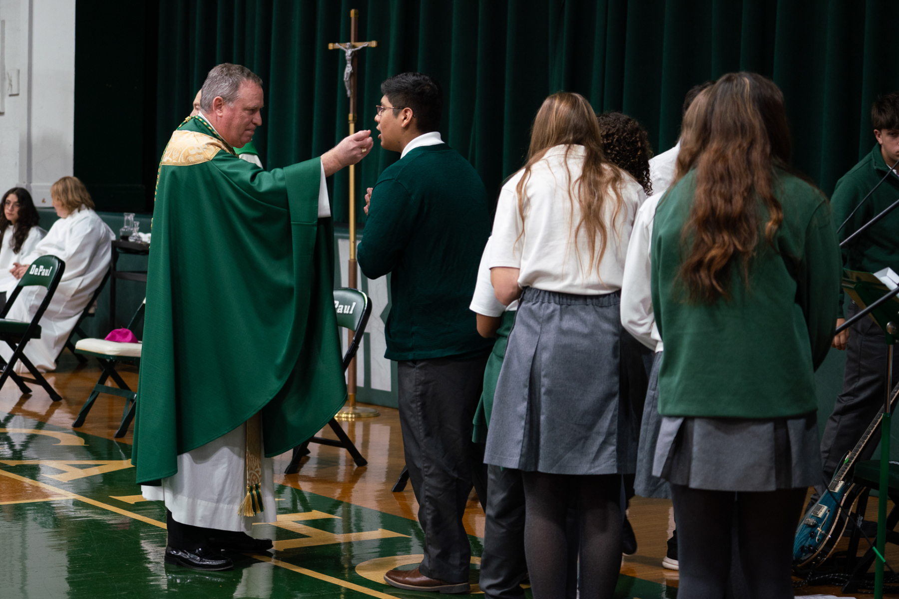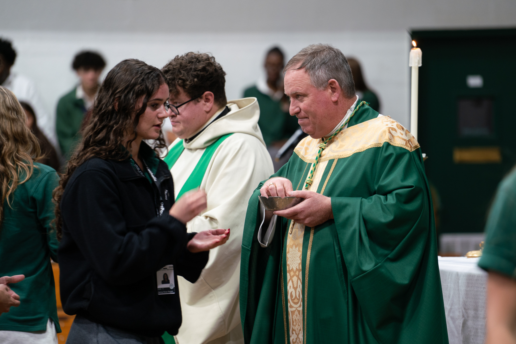 DePaul students grow in understanding of God’s presence in their lives and in one another by attending Mass, participating in theology classes, and sharing in faith-filled moments. Bishop Sweeney encouraged everyone to recognize God’s presence in themselves and in individuals they meet.