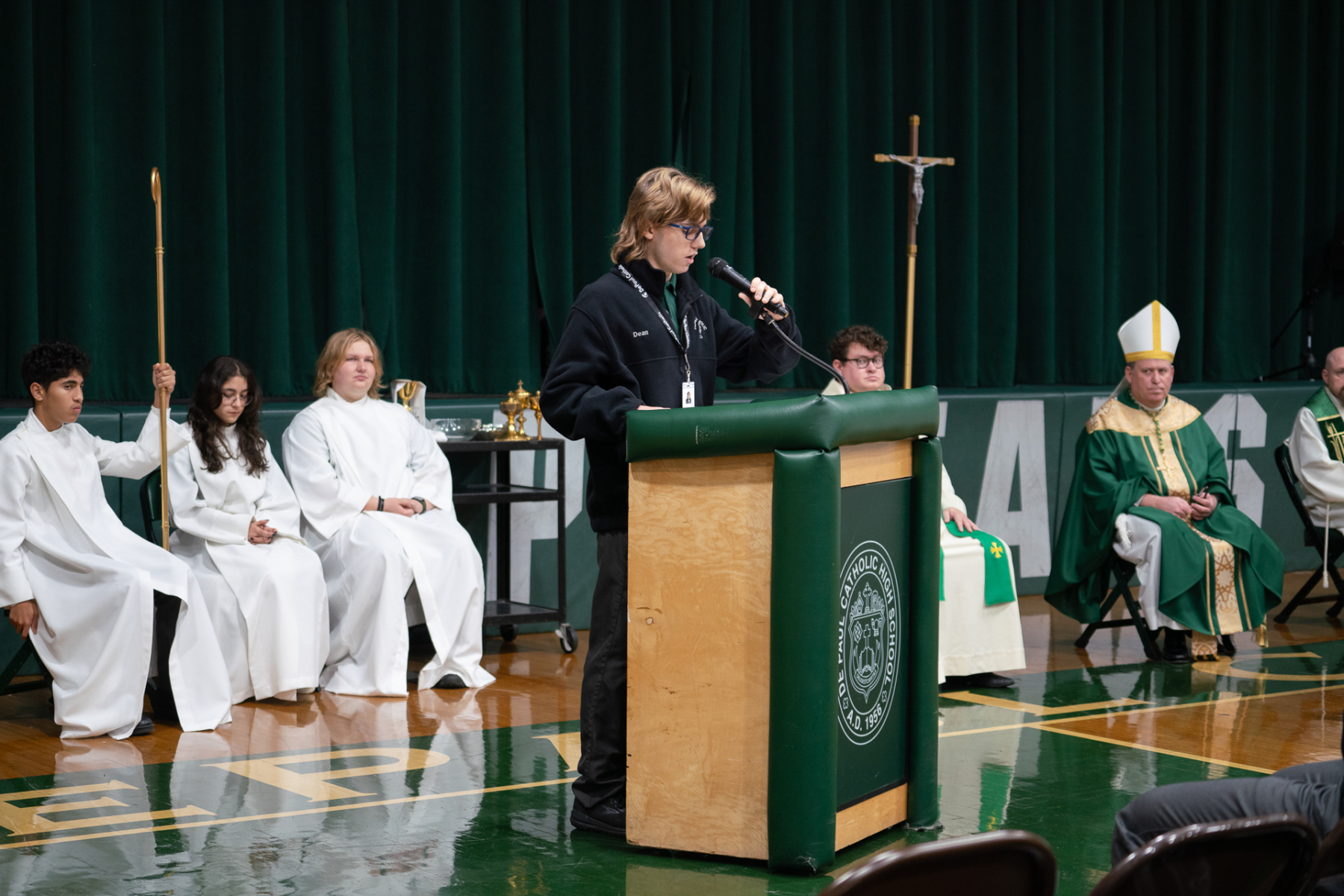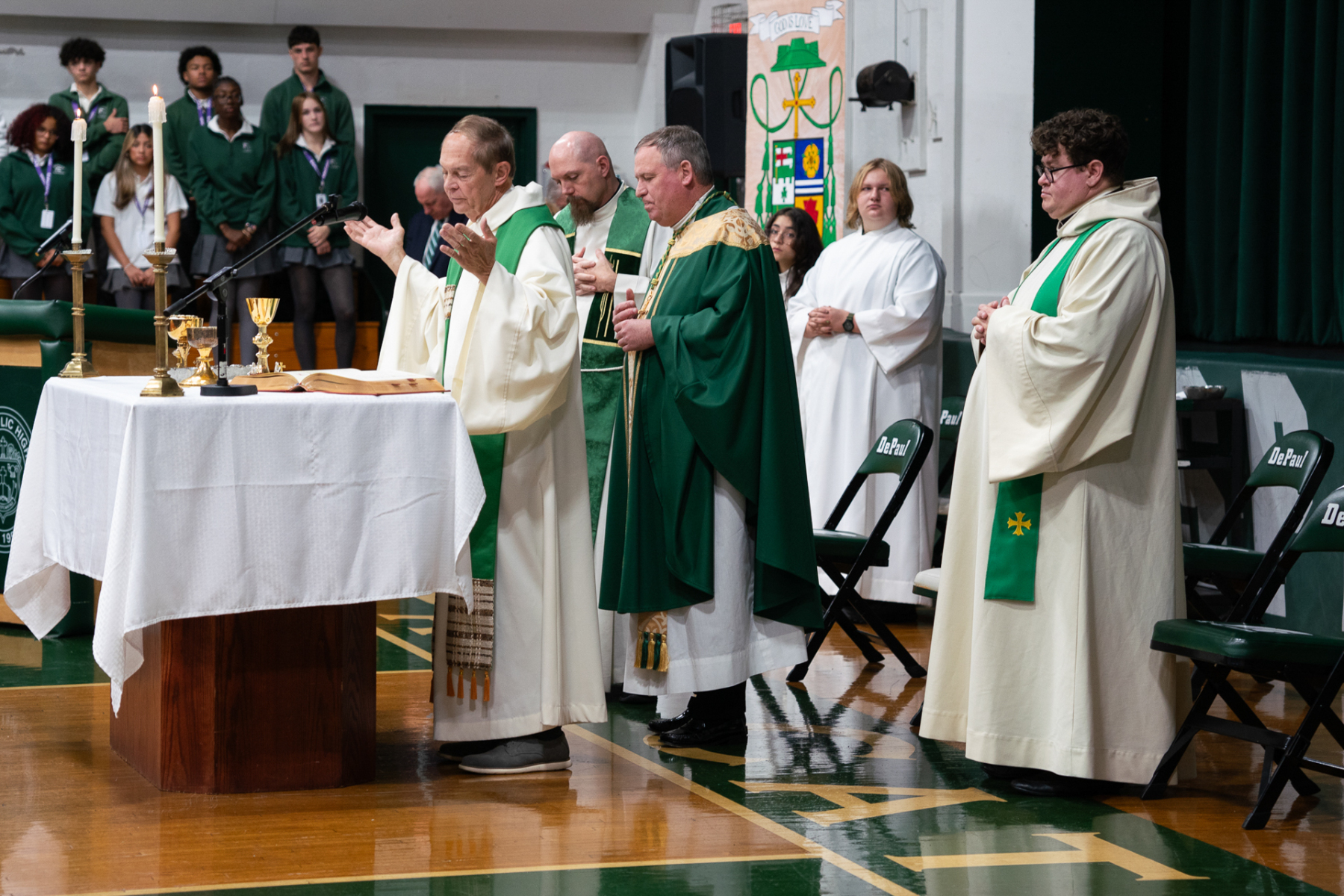 Concelebrating the Mass with Bishop Sweeney were Father Frank Lennie, a DePaul chaplain and an alumnus of school, Class of 2010; Father Brian Ditullio, a DePaul chaplain; and Father John Tarantino, a retired priest of the Paterson Diocese in New Jersey. Father Tarantino is a DePaul Catholic alumnus, Class of 1968. During his priestly ministry, he served DePaul from 1980 to 1987, as a faculty member and chair of the Theology Department.