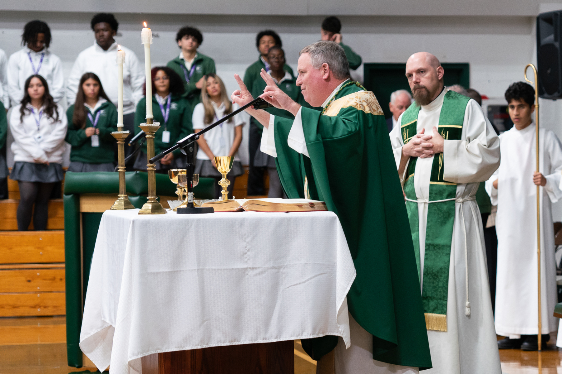 In his homily, Bishop Sweeney reflected on the true meaning of Catholic education, reminding DePaul students that each day, they are blessed with the opportunity to pray together with classmates, faculty, staff, and members of the school community.