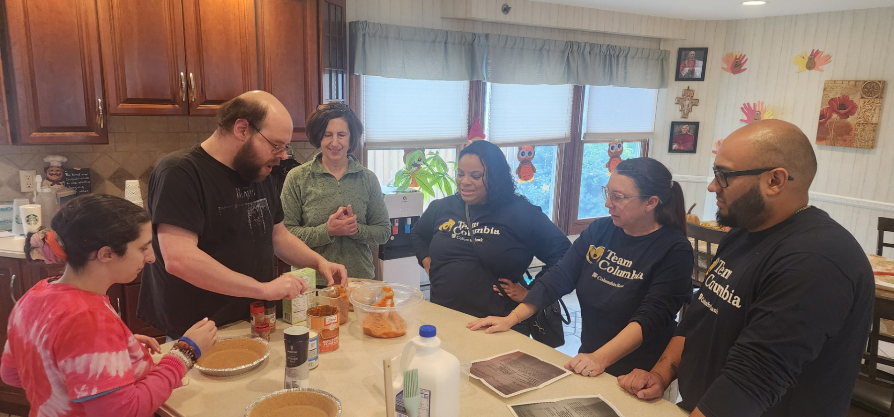 Volunteers from Columbia Bank made their annual visit to Department for Persons with Disabilities (DPD), part of Catholic Charities of the Paterson Diocese in New Jersey, from Nov. 20 to 21, as part of the bank’s ongoing commitment to partner with local social service agencies. The visits, part of Columbia Bank’s Week of Giving program, are designed to provide opportunities for employees to volunteer their time to give back to their communities. The employees visited DPD’s Wehrlen House in West Milford, N.J., and Barnet House in Pompton Lakes, N.J., where they met with staff, baked pies with the residents, composed cards of gratitude for family and friends and shared a meal while getting acquainted with staff and residents of both facilities. The DPD looks forward to continuing its community partnership with Columbia Bank and to future visits by the volunteers.