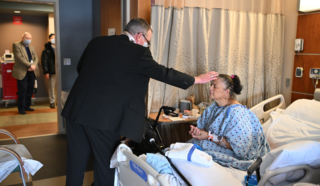 Many St. Joseph’s University Medical Center patients and staff in Paterson enjoyed a visit from Bishop Kevin J. Sweeney on Feb. 11 for the Feast of Our Lady of Lourdes and World Day of Prayer for the Sick.
