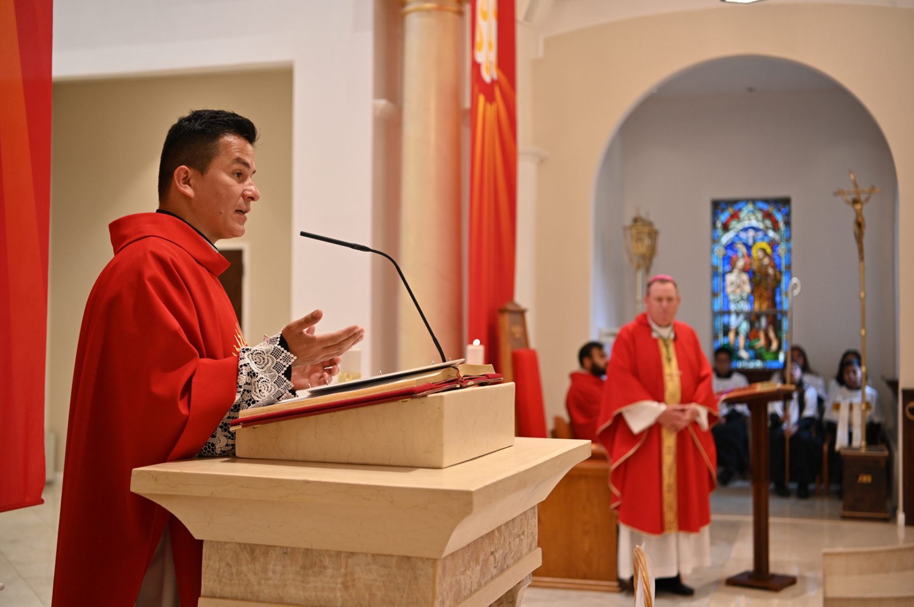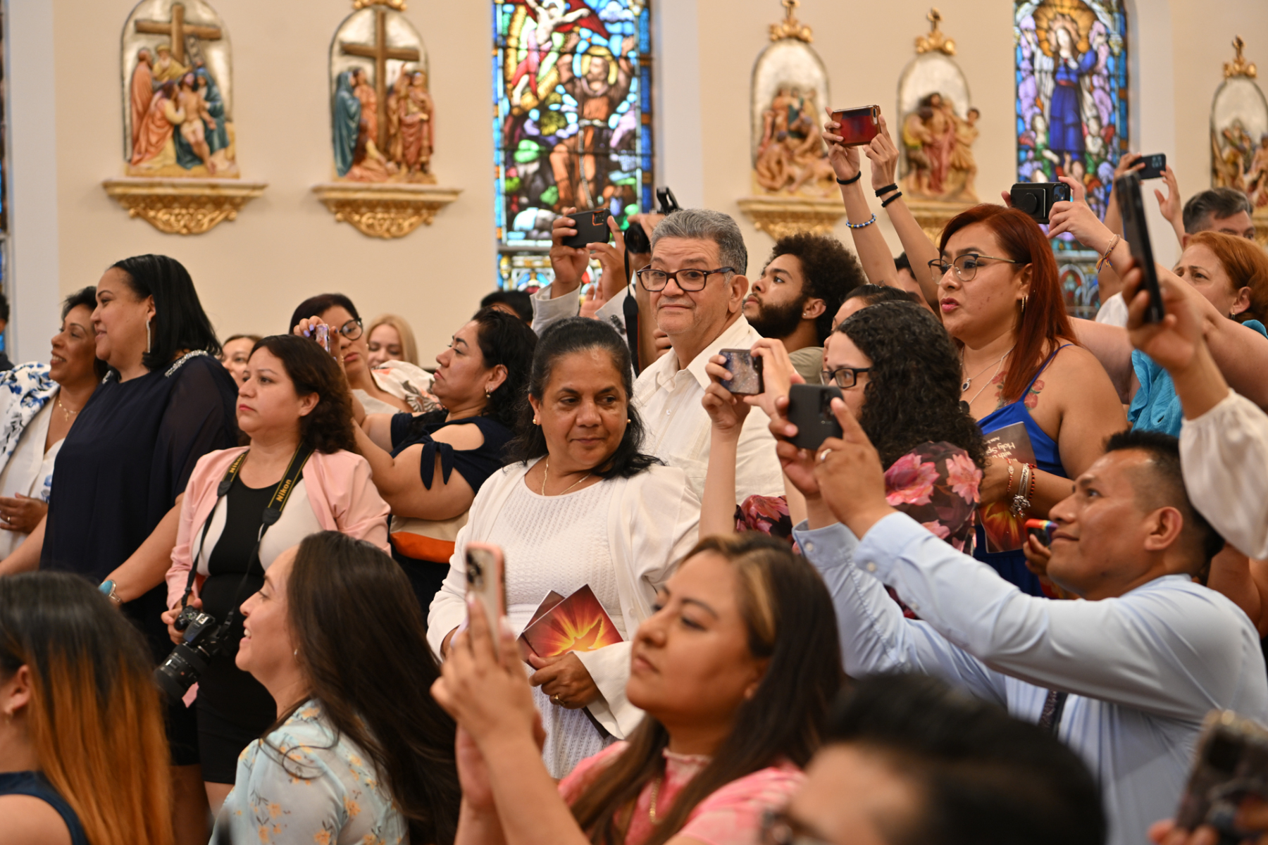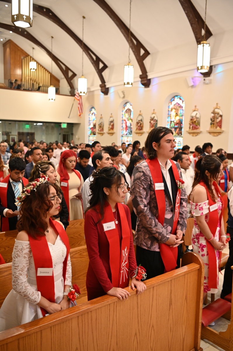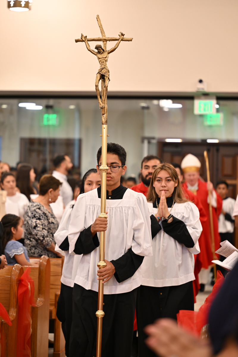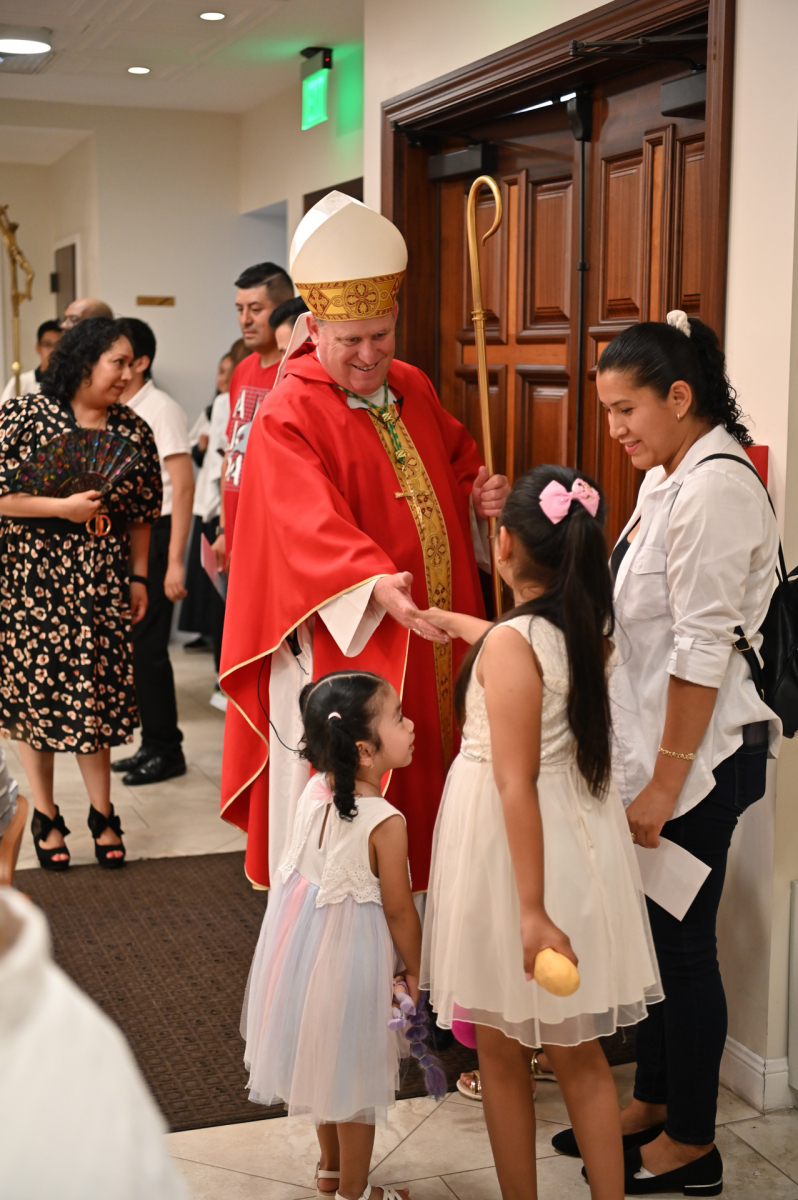 St. Anthony of Padua Parish in Passaic on June 22 welcomed Bishop Kevin J. Sweeney, who celebrated Mass. There, he administered the sacrament of confirmation to 32 parish youth, bringing them into full communion with the Church. Father Javier Bareno, St. Anthony’s pastor, and Father Jose Zuniga, parochial vicar, concelebrated the Mass with Bishop Sweeney.
