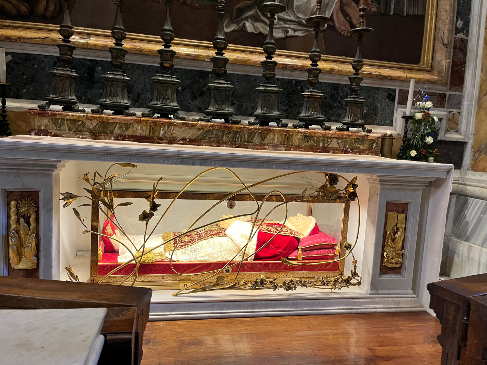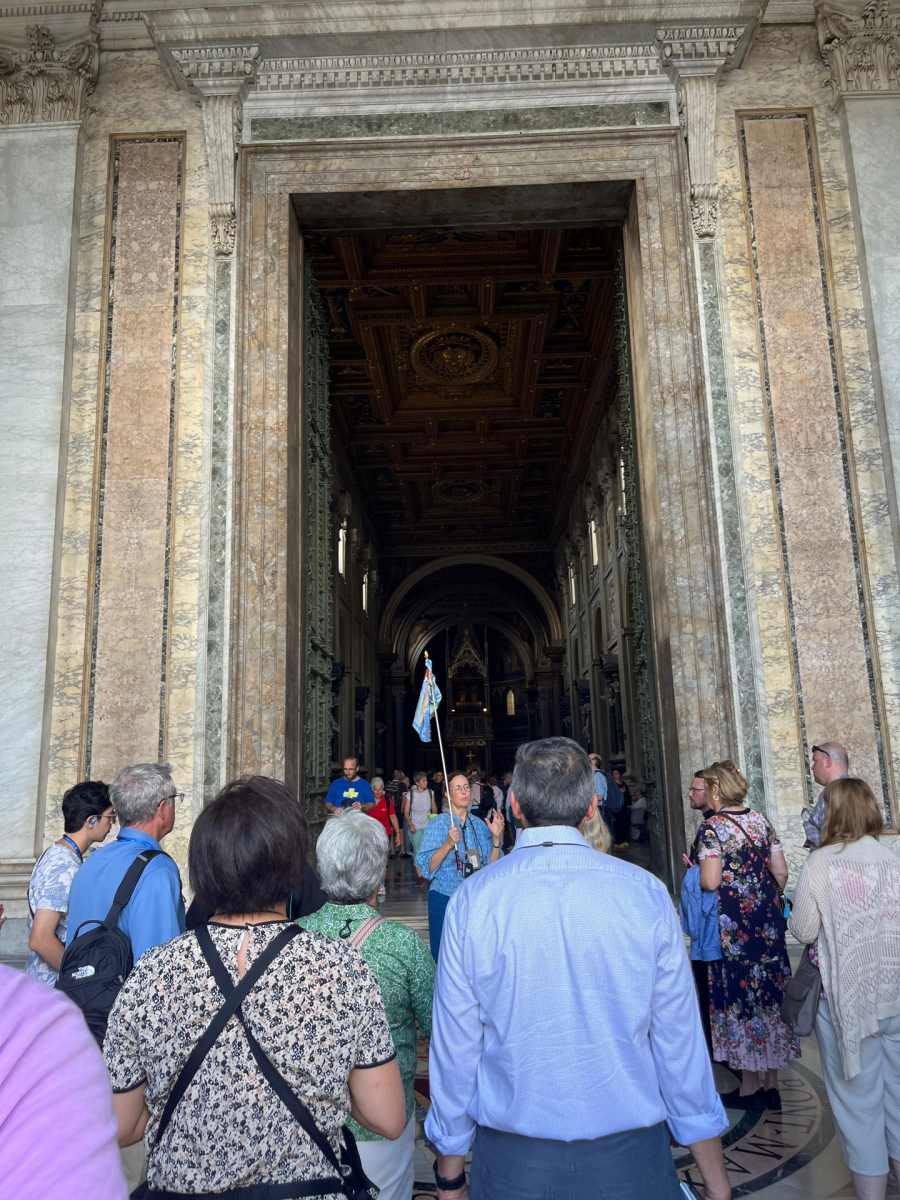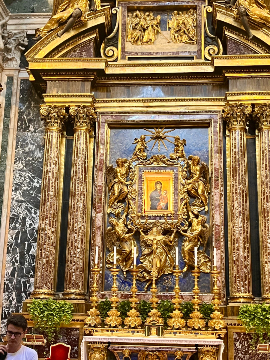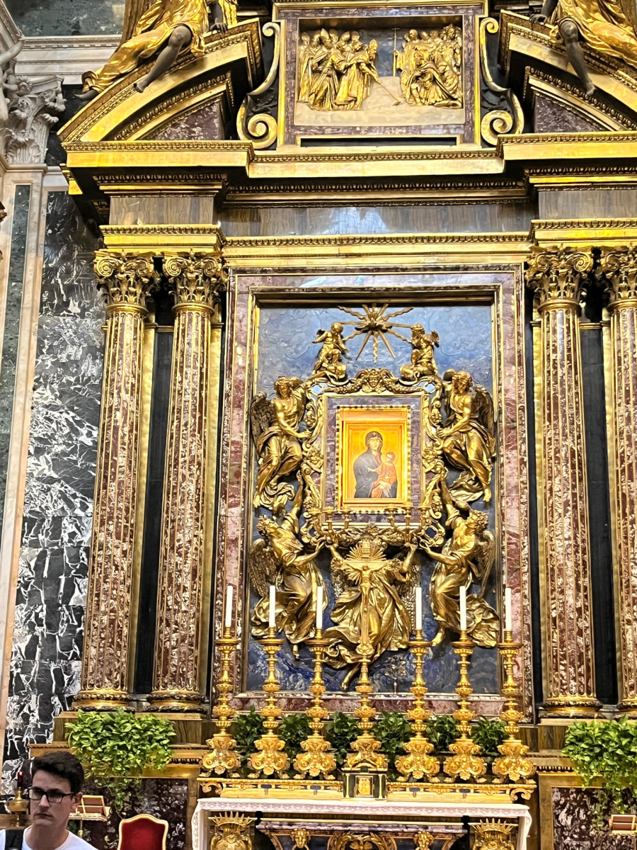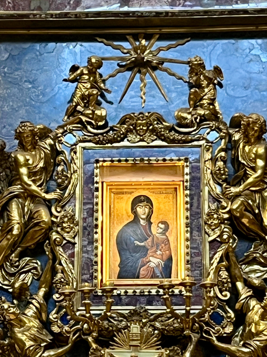 From one Holy Door to another… (two down, two to go). We went from St. Peter’s to St. Mary Major, where we visited the tomb of Pope Francis and the burial place of St. Jerome. St. Mary Major is also the home of the image of our Blessed Mother, “Salus Populi Romani”, Protectress of the Roman People, to which Pope Francis had a great devotion and visited before and after each Apostolic Journey.