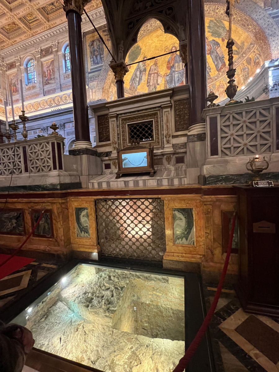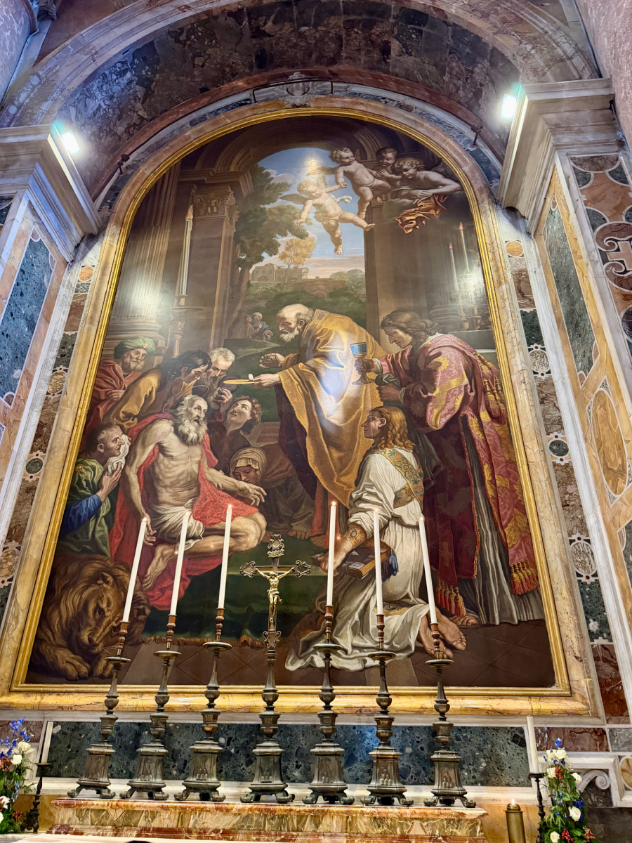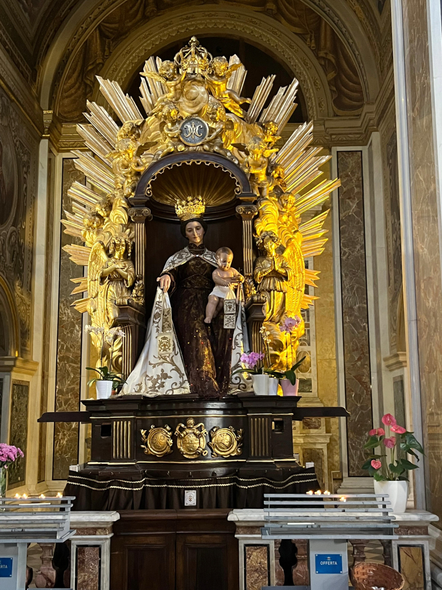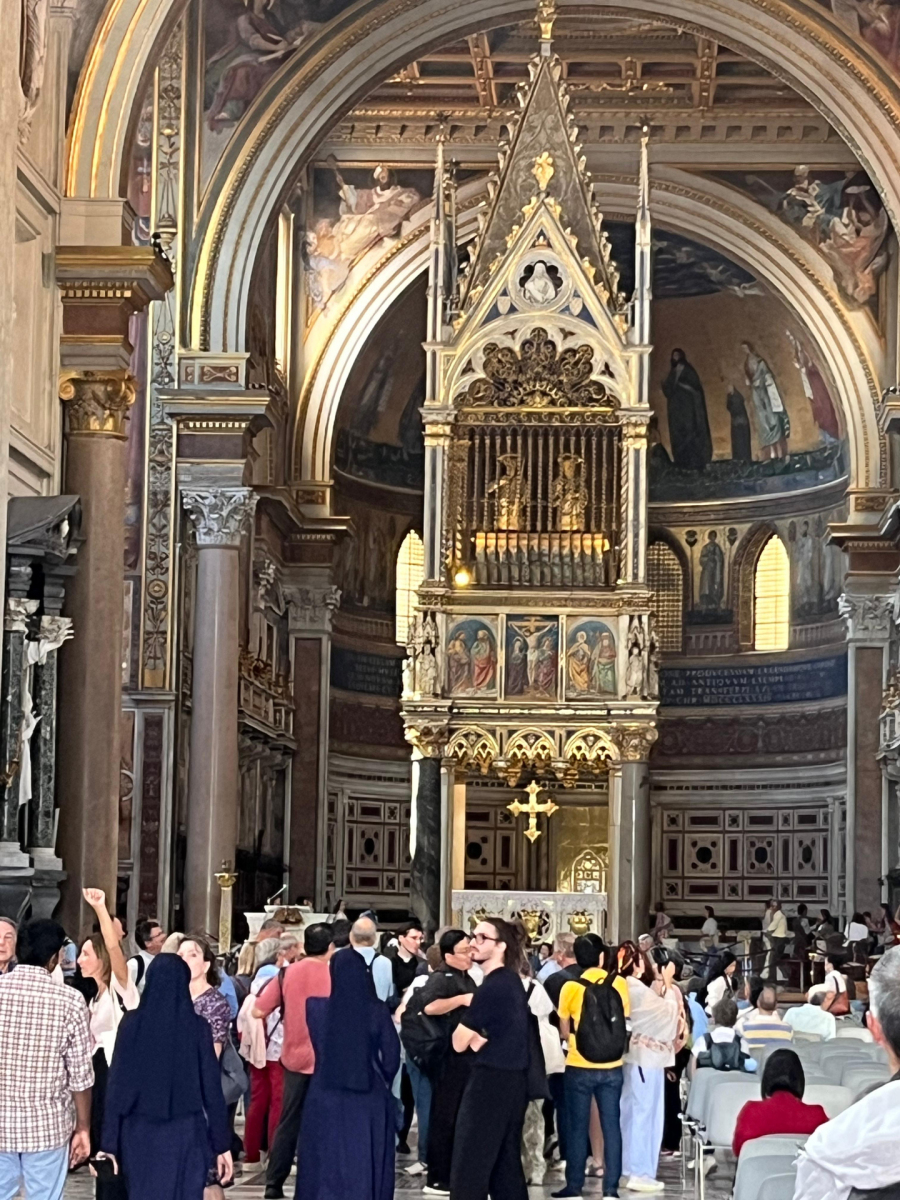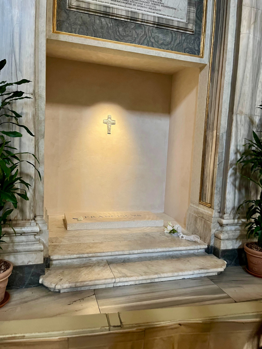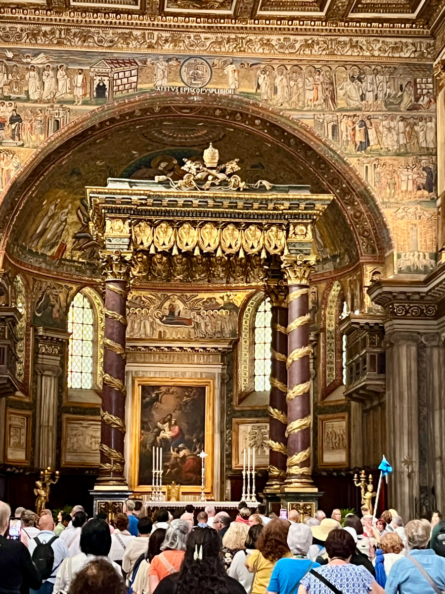 From one Holy Door to another… (two down, two to go). We went from St. Peter’s to St. Mary Major, where we visited the tomb of Pope Francis and the burial place of St. Jerome. St. Mary Major is also the home of the image of our Blessed Mother, “Salus Populi Romani”, Protectress of the Roman People, to which Pope Francis had a great devotion and visited before and after each Apostolic Journey.