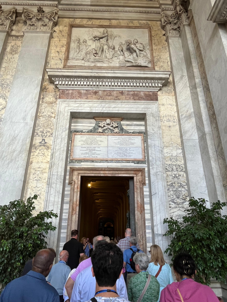 During our visit, we entered St. Peter’s through the Holy Door, opened for the Jubilee. We saw the tombs of St. Pope John Paul II and Pope John 23, also of Pope Paul VI and Pope Benedict XVI.