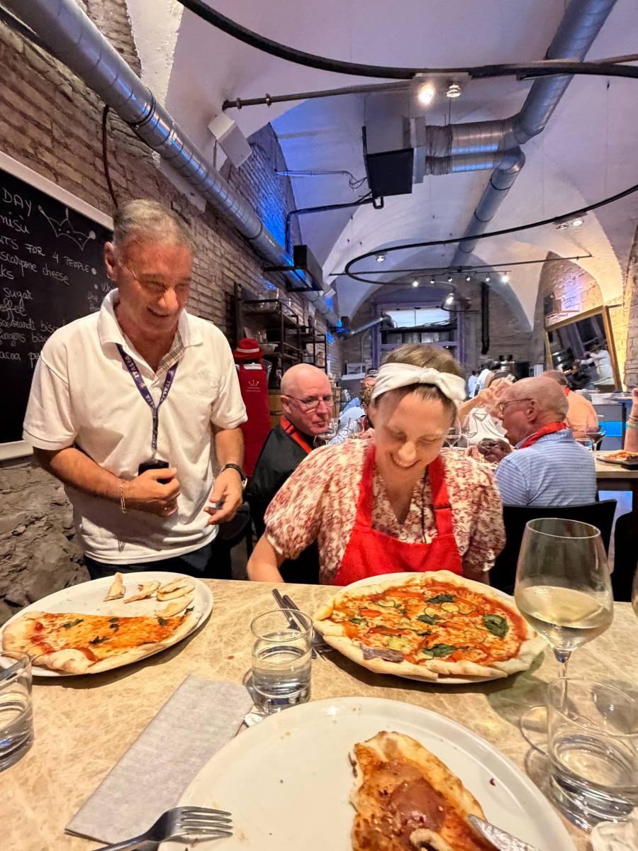 We also woke up to another Beautiful Day in Rome. Yesterday, we had lunch at a “make your own pizza” Pizzeria. Then, in the afternoon, we visited the Catacombs of Priscilla and celebrated Mass in the Basilica of St. Sylvester.