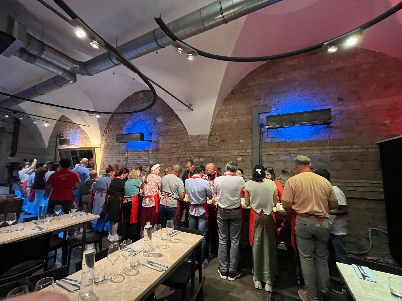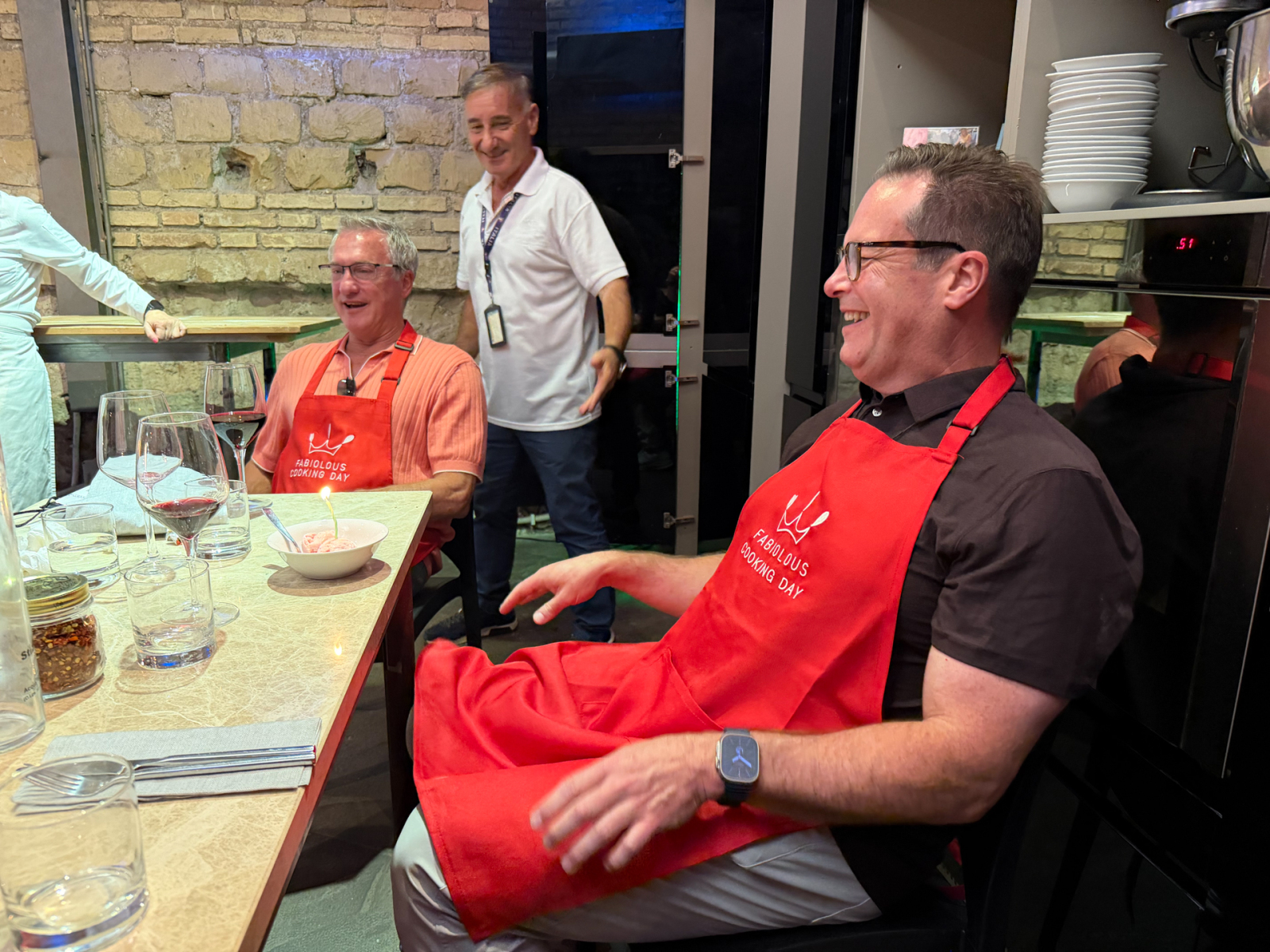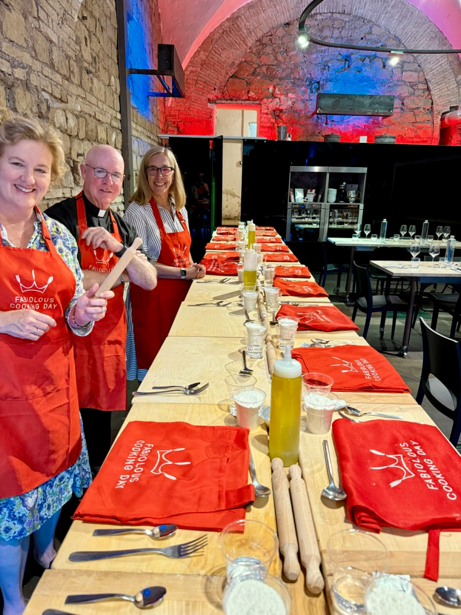 Also included are photos of Pizza making and celebrating the birthdays of two pilgrims — Kevin and Karen.