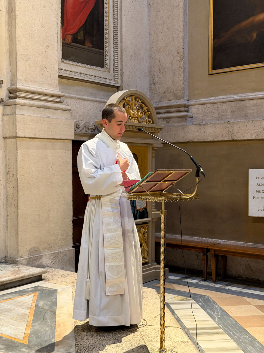 This morning, we were at St. Mary Major for Deacon Lucas’ first “Preaching Mass.” He did a wonderful job!! Here are a few photos of the small community, which gathered with Deacon Lucas, his parents, family, and friends.