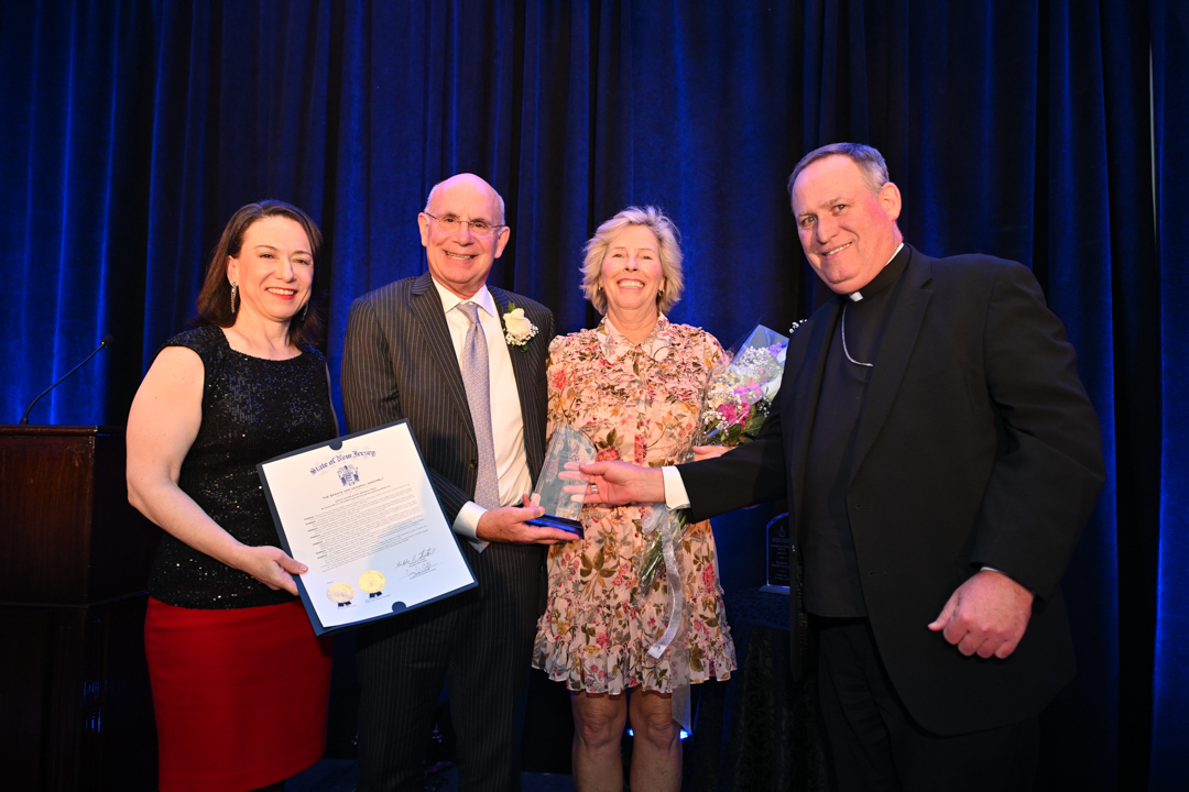Honorees Bob and Susie Waldele received the Diocese of Paterson Bishop’s Award from Bishop Kevin J. Sweeney. Deacon Peter Cistaro received the Father Jack Wehrlen Award from the Department for Persons with Disabilities. Father Ed Reading received the Father Norman James O’Connor Award from the Straight & Narrow substance abuse treatment program in Paterson. Brian and Mary Jo Sullivan and family were honored with the Msgr. Mark Giordani Award from Catholic Family & Community Services.