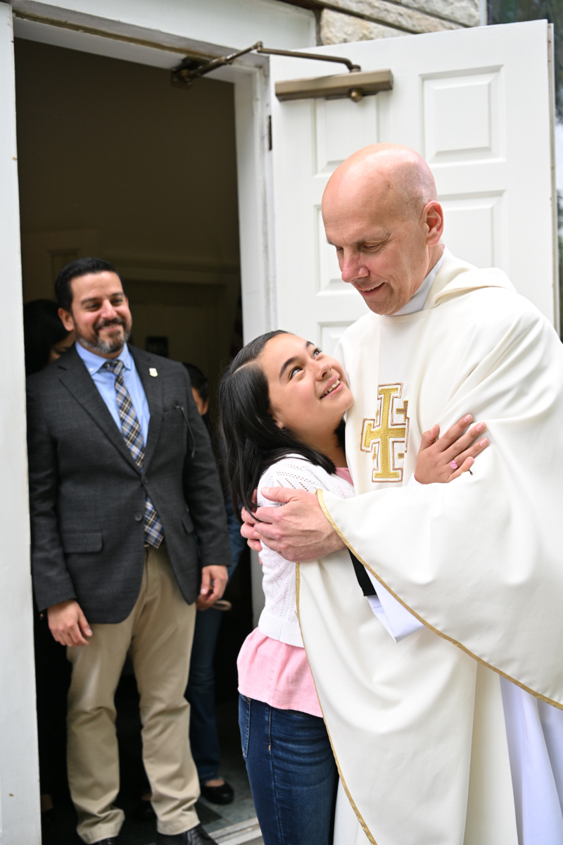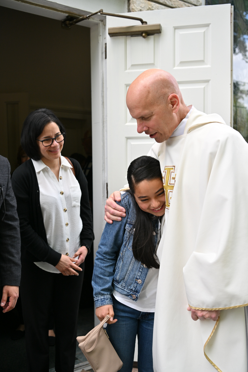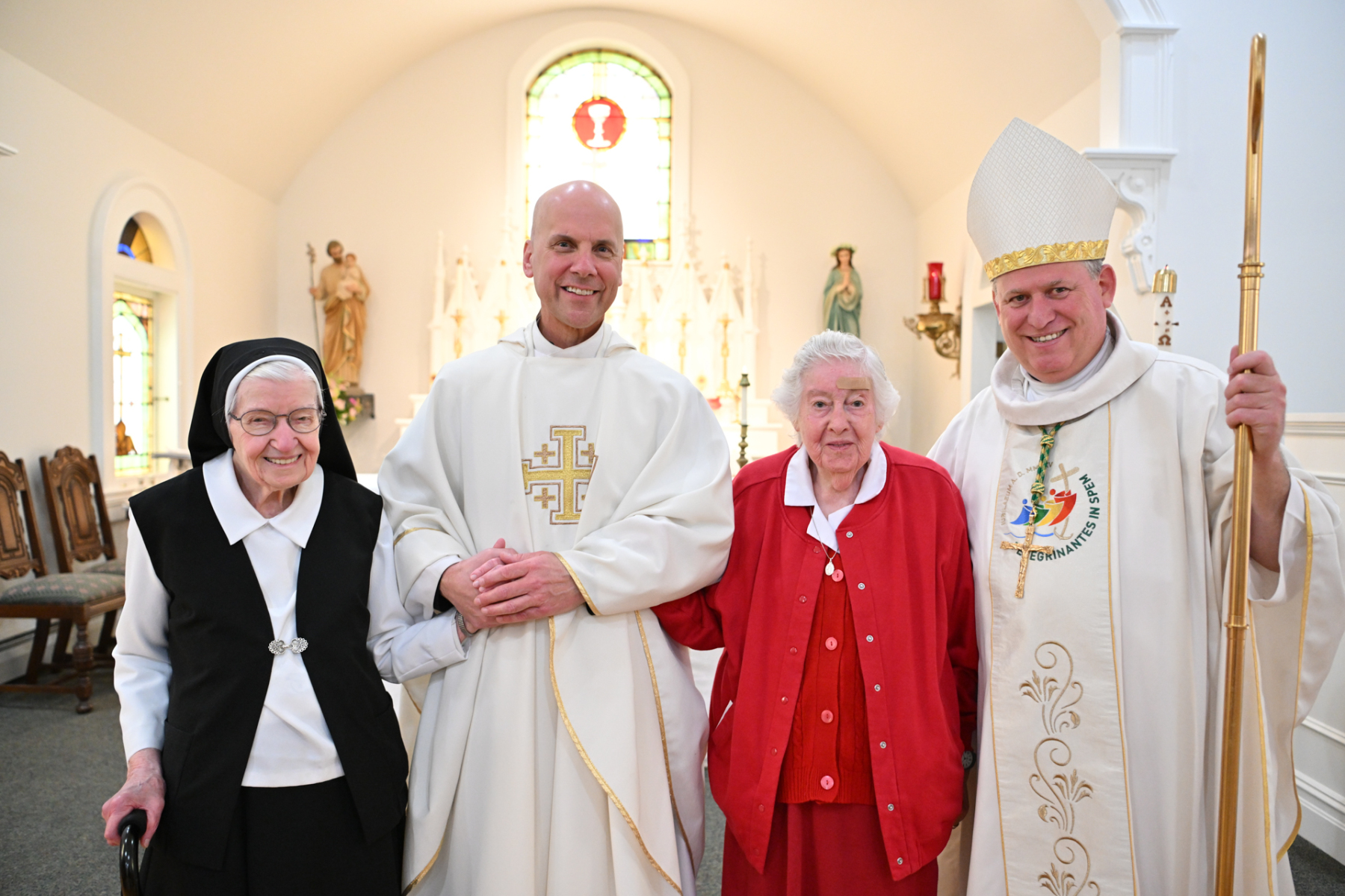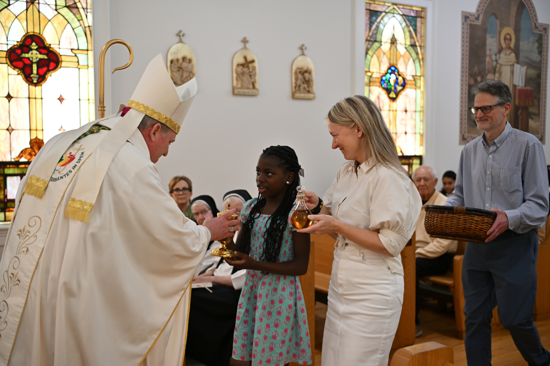 Bishop Sweeney was the main celebrant of the installation Mass. Concelebrating the liturgy were Father Rama, Father Nicholas Bozza, pastor of St. Lawrence the Martyr Parish in Chester, and Father Alfred Lampron, a retired diocesan priest who had served as pastor of St. Bernard’s for 18 years. Father Jared Brogan, diocesan Worship Office director, was the master of ceremonies for the liturgy.