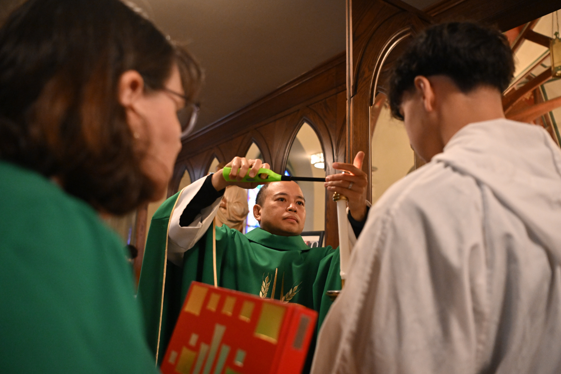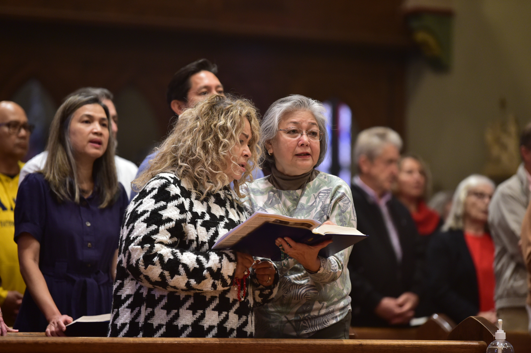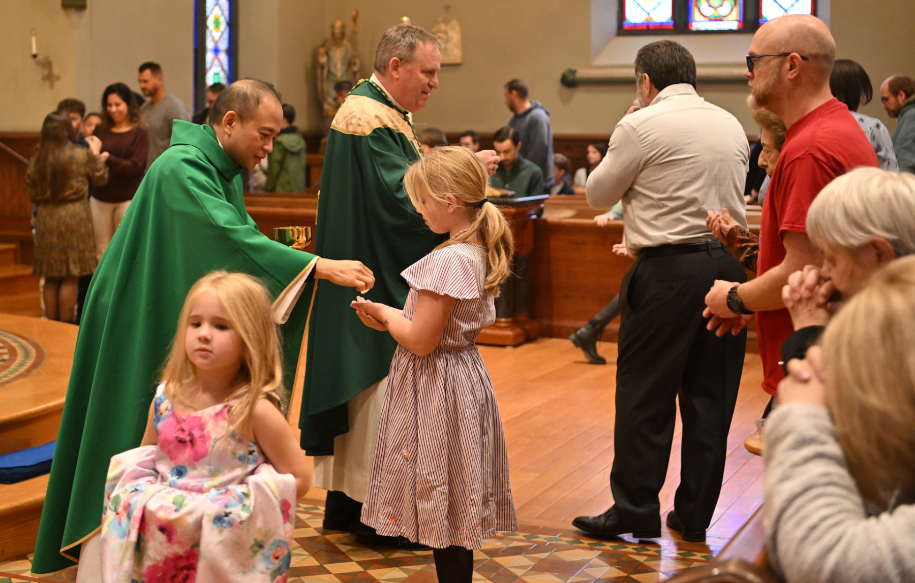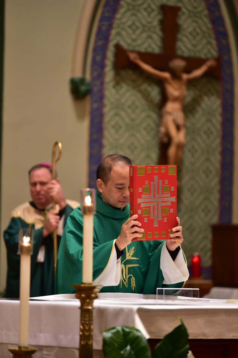 Bishop Kevin J. Sweeney was the main celebrant and homilist of the Mass, which Father Lemmuel Camacho, pastor of St. Mary’s, concelebrated. The parish’s devotion to St. Carlo, one of its patron saints, included the creation of a special place in the church for the faithful to venerate the saint, who was devoted to Jesus’ Real Presence in the Eucharist. The space features a first-class relic of St. Carlo, his portrait, candles, and flowers.