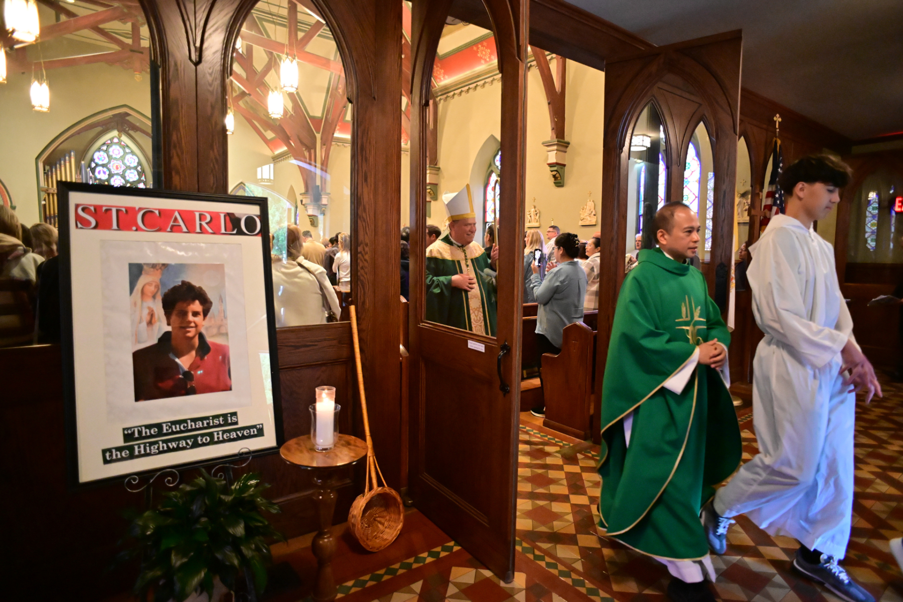St. Mary Parish in Dover, N.J., was filled with joy on Oct. 12 when it celebrated the first feast day of St. Carlo Acutis, as the first Catholic millennial saint, whom Pope Leo XIV canonized in Rome on Sept. 7. St. Mary’s already has a strong devotion to St. Carlo, who used his computer skills to promote Eucharistic miracles before his death from incurable leukemia in 2006 at age 15 in Italy.