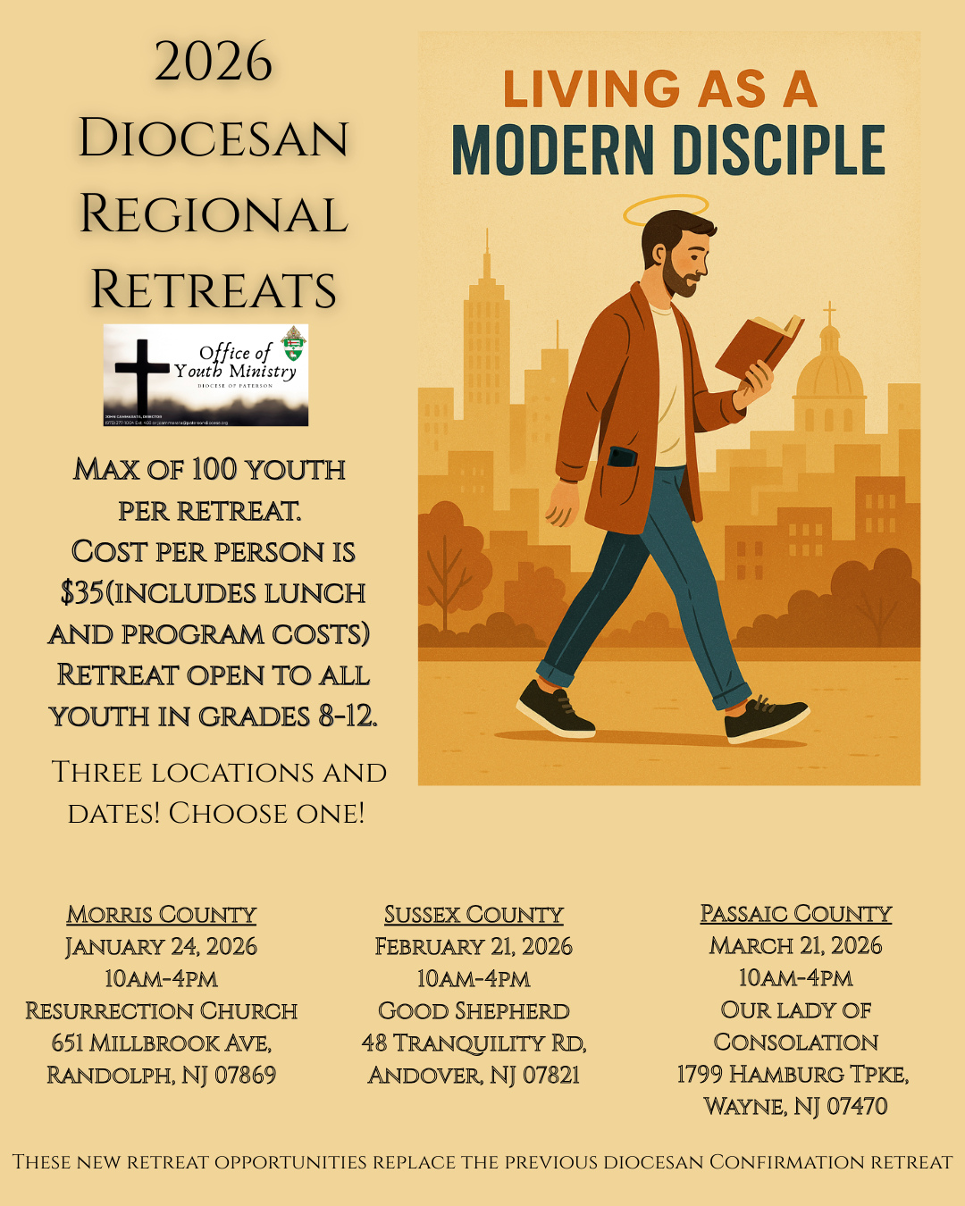 All youth in grades 8–12 are welcome to attend the Diocesan Youth Regional Retreat! This retreat will follow the theme “Living as a Modern Disciple” and is an excellent opportunity to grow in faith together with your diocesan community. Only 100 spots are available for each session, so reserve your spot today!