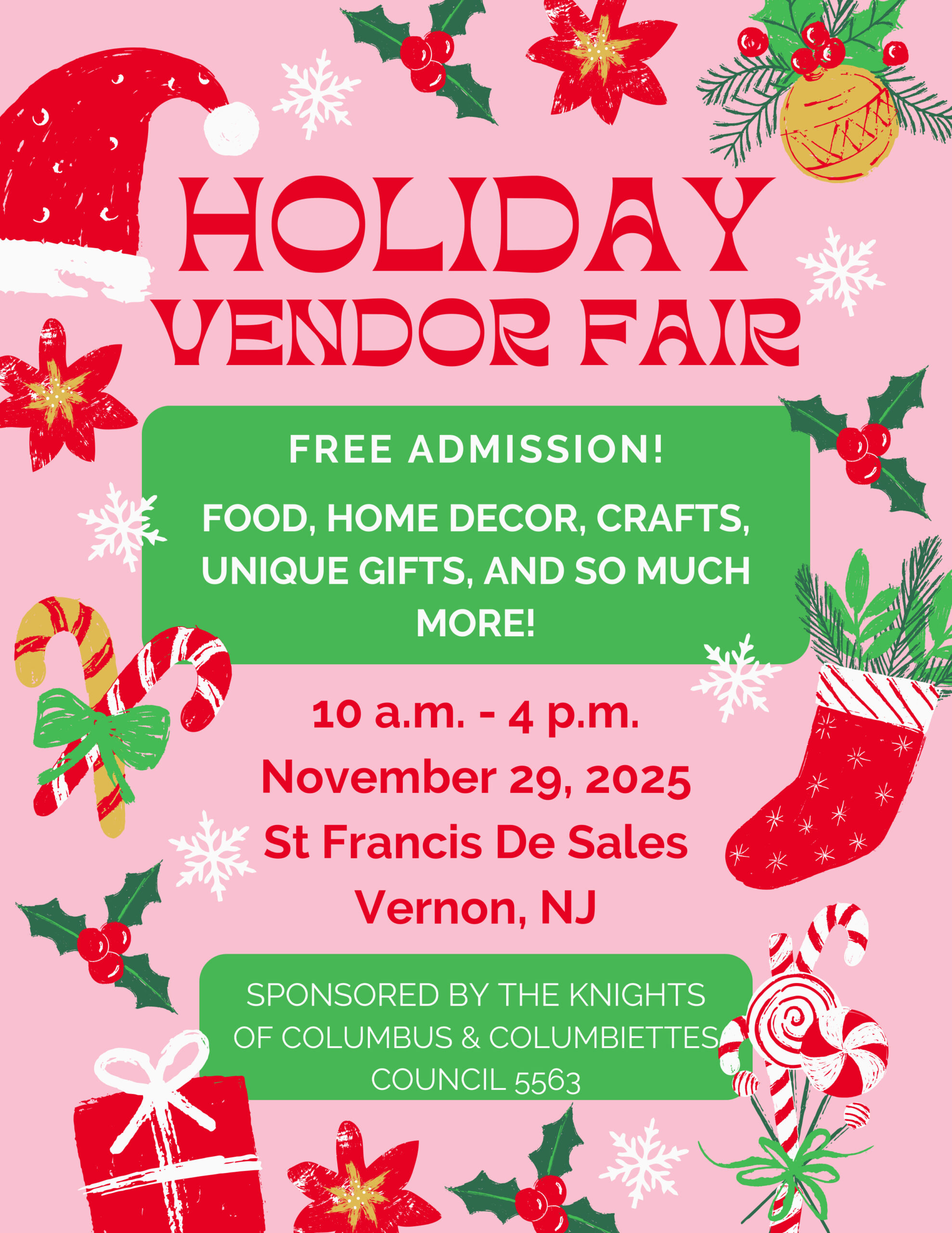 Events Submit an event Keywords Location Any dates Your browser does not support JavaScript, or it is disabled. JavaScript must be enabled in order to view listings. Events ListDayWeeklyMonthly 28 Nov 28 Nov – 28 Nov Knights of Columbus Council 588 Winter Clothing Drive 11-28-2025 @ 09:00 AM – 11-28-2025 @ 11:00 AM Our Lady of the Lake Church, 294 Sparta Ave, Sparta, NJ 07871 29 Nov 29 Nov – 29 Nov Holiday Vendor Fair 11-29-2025 @ 10:00 AM – 11-29-2025 @ 04:00 PM St. Francis de Sales Church, 614 McAfee-Glenwood Rd. (Rt. 517), Vernon, NJ 07462 02 Dec 02 Dec – 02 Dec Theology of the Body Certificate 12-02-2025 @ 07:30 PM – 12-02-2025 @ 09:30 PM St. Paul Inside the Walls, 205 Madison Ave., Madison, NJ 07940 02 Dec 02 Dec – 04 Dec Advent Retreat 12-02-2025 – 12-04-2025 St. Bernard's Church, 22 St. Bernard Rd., Wharton, NJ 07885 05 Dec 05 Dec – 07 Dec Vocation Contact 12-05-2025 – 12-07-2025 Villa Walsh Academy, 455 Western Ave., Morristown, NJ 07960 05 Dec 05 Dec – 05 Dec Annual Diocesan Christmas Concert 12-05-2025 @ 07:30 PM – 12-05-2025 Our Lady of the Valley Church, 630 Valley Rd, Wayne, NJ 07470 06 Dec 06 Dec – 06 Dec Mass and Procession For Life 12-06-2025 @ 08:00 AM – 12-06-2025 St. Margaret of Scotland Church, 6 Sussex Ave., Morristown, NJ 07960 06 Dec 06 Dec – 06 Dec Breakfast with Santa and Mrs. Claus 12-06-2025 @ 08:30 AM – 12-06-2025 @ 12:00 PM Our Lady of the Magnificat, 2 Miller Rd., Kinnelon, NJ 07405 06 Dec 06 Dec – 06 Dec Divine Mercy Academy Holiday Hustle 5K Walk/Run 12-06-2025 @ 09:00 AM – 12-06-2025 Peterson Memorial Field, Fleetwood Dr., Rockaway, NJ 07866 06 Dec 06 Dec – 07 Dec Living Nativity 12-06-2025 @ 04:00 PM – 12-07-2025 Our Lady Queen of Peace Church, 1911 Union Valley Rd., Hewitt, NJ 07421 06 Dec 06 Dec – 06 Dec Sharing the Season Community Benefit Auction and Dinner 12-06-2025 @ 06:00 PM – 12-06-2025 St Luke Parish Hall, 265 West Mill Road, Long Valley, NJ 07853 09 Dec 09 Dec – 09 Dec Christmas Tree Lighting and Open House 12-09-2025 @ 06:00 PM – 12-09-2025 All Saints Academy, 189 Baldwin Rd., Parsippany, NJ 07054 09 Dec 09 Dec – 09 Dec Angels & Demons 12-09-2025 @ 07:00 PM – 12-09-2025 @ 08:30 PM Notre Dame of Mt. Carmel, 75 Ridgedale Avenue, Cedar Knolls, NJ 07927 13 Dec 13 Dec – 13 Dec The Nativity Scene – Father Louis Scurti Explains It All 12-13-2025 @ 02:00 PM – 12-13-2025 Italian American Museum, 151 Mulberry St, New York, NY, 10013 13 Dec 13 Dec Praying with Mary & Joseph 12-13-2025 – St Michael's Villa/ Sisters of St Joseph of Peace, 399 Hudson Terrace, Englewood Cliffs, NJ 07632 13 Dec 13 Dec – 14 Dec 2025 Retirement Fund for Religious Collection 12-13-2025 – 12-14-2025 Diocese of Paterson 14 Dec 14 Dec – 14 Dec Advent Candlelight Service 12-14-2025 @ 04:00 PM – 12-14-2025 Sisters of Christian Charity, 350 Bernardsville Rd., Mendham, NJ 07945 14 Dec 14 Dec – 14 Dec OLM Annual Christmas Concert 12-14-2025 @ 06:00 PM – 12-14-2025 Our Lady of the Magnificat Church, 2 Miller Road, Kinnelon, NJ 07405 16 Dec 16 Dec – 16 Dec Free Christmas Concert 12-16-2025 @ 01:00 PM – 12-16-2025 St. Catherine of Siena Church, 10 North Pocono Road, Mountain Lakes, NJ 07046 18 Dec 18 Dec – 18 Dec First Annual Christmas Tree Lighting 12-18-2025 @ 06:00 PM – 12-18-2025 Sisters of Christian Charity, 350 Bernardsville Rd., Mendham, NJ 07945 21 Dec 21 Dec – 21 Dec Special Needs Sensory Mass 12-21-2025 @ 03:00 PM – 12-21-2025 St. Mary’s Church, 17 Pompton Ave., Pompton Lakes, NJ 07442 28 Dec 28 Dec – 28 Dec Jubilee Year of Hope Closing Liturgy 12-28-2025 @ 03:00 PM – 12-28-2025 Cathedral of St. John the Baptist, 381 Grand St., Paterson, NJ 07505 08 Jan 08 Jan – 08 Jan Marriage Enrichment Experience 01-08-2026 @ 07:30 PM – 01-08-2026 @ 09:00 PM St. Vincent Martyr Church, 26 Green Village Rd., Madison, NJ 07940 10 Jan 10 Jan Women’s Retreat 01-10-2026 – St. Michael the Archangel Catholic Church, 70 Cianci St., Paterson, NJ 07501 30 Jan 30 Jan – 31 Jan Women’s Cornerstone Retreat XXVI 01-30-2026 – 01-31-2026 Notre Dame of Mount Carmel, 75 Ridgedale Ave., Cedar Knolls, NJ 07927 14 Apr 14 Apr – 24 Apr Pilgrimage to the Shrines of Italy 04-14-2026 – 04-24-2026 Online Event 26 May 26 May – 02 Jun 8-Day Pilgrimage Trip to Ireland 05-26-2026 – 06-02-2026 Immaculate Heart of Mary Parish, 580 Ratzer Rd., Wayne, NJ 07470