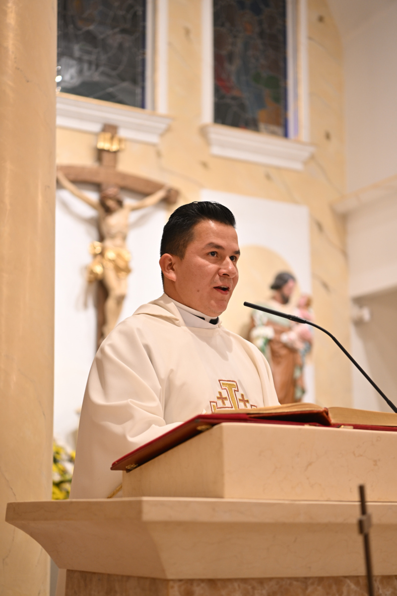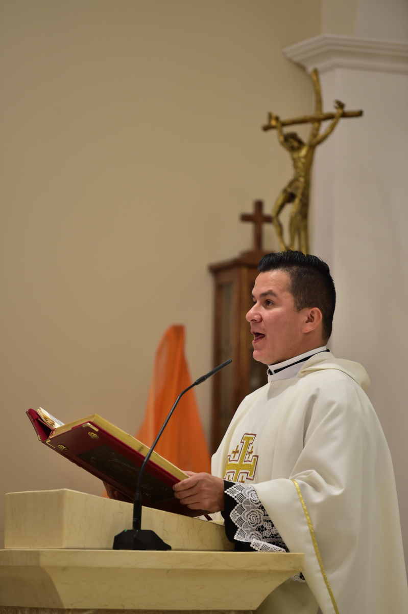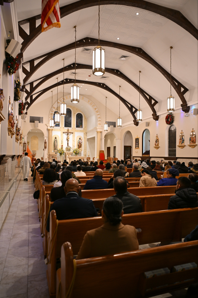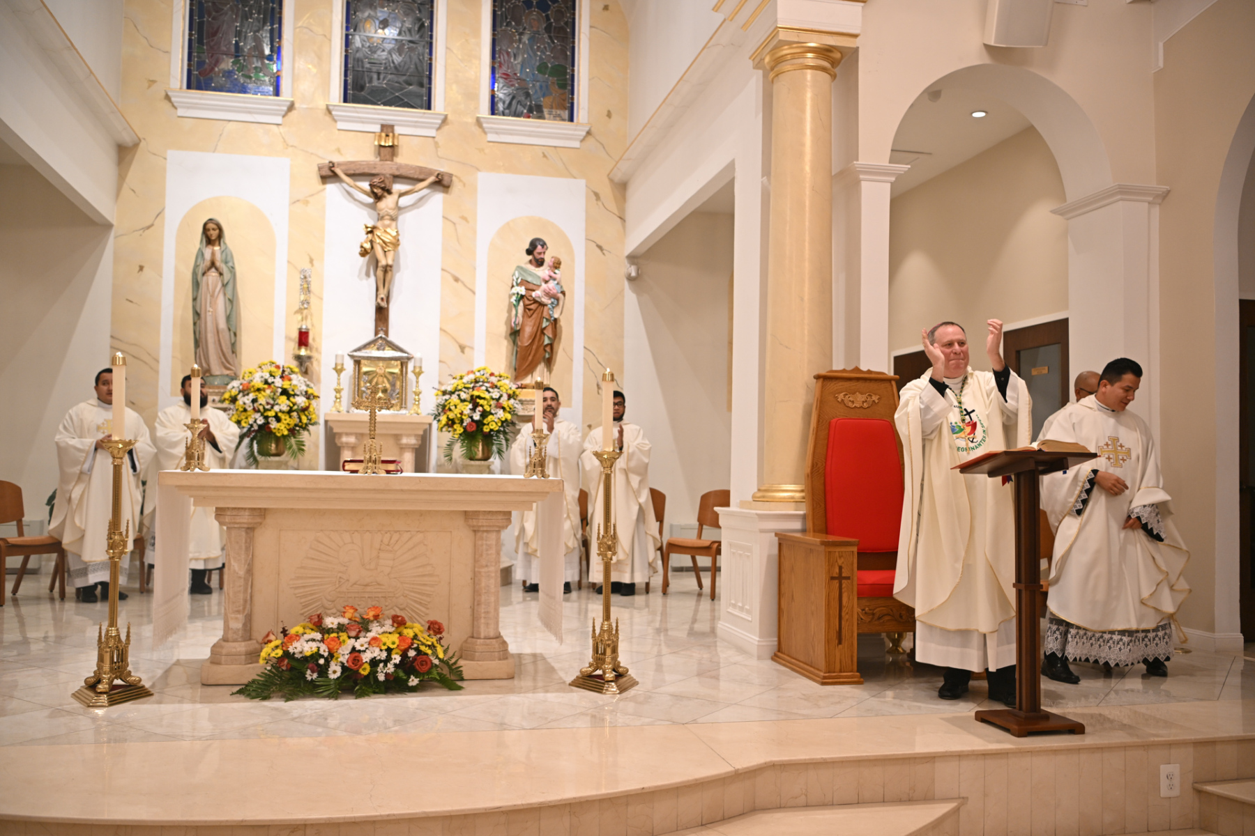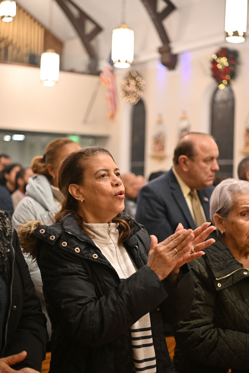 Concelebrating the Mass with Bishop Sweeney were Father Bareno; Father Alexis Coffi Gonzalez, parochial vicar of St. Anthony’s; Father Hernan Cely, pastor of St. Vincent de Paul Parish in the Stirling neighborhood of Long Hill Township, N.J. and a former St. Anthony’s pastor; Father Jose M. Zuniga, parochial vicar of St. Vincent Martyr Parish in Madison, N.J., and a former parochial vicar at St. Anthony’s; Father Duberney Villamizar, pastor of St. Margaret of Scotland Parish in Morristown, N.J., and vicar for Hispanic Affairs for the Paterson Diocese; and Father Vidal Gonzales, Jr., pastor of Notre Dame of Mount Carmel Parish in the Cedar Knolls neighborhood of Hanover Township, who was born in the Philippines.