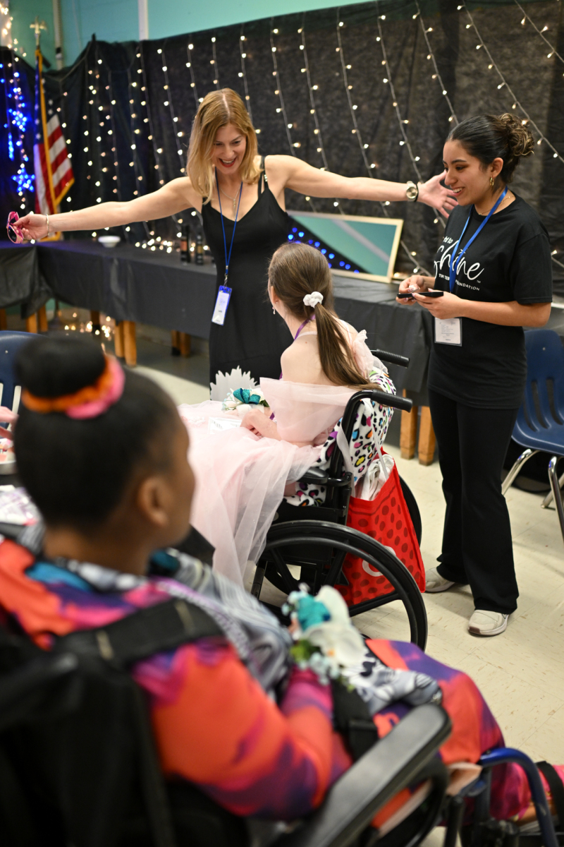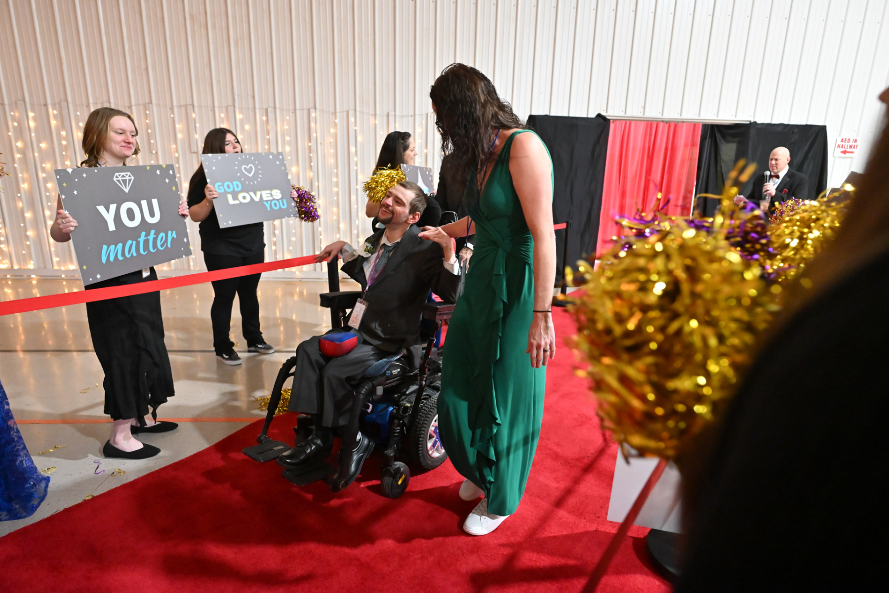 Guests of Night to Shine entered the complimentary event on a red carpet with a warm welcome from a friendly crowd and paparazzi. Once inside, guests received the royal treatment, including hair and makeup stations, shoe shining stations, limousine rides, corsages and boutonnieres, a karaoke room, a catered dinner, prom favors, a Respite Room for parents and caretakers, and dancing.