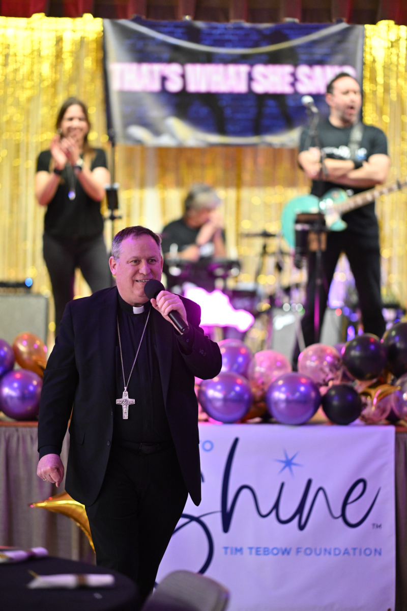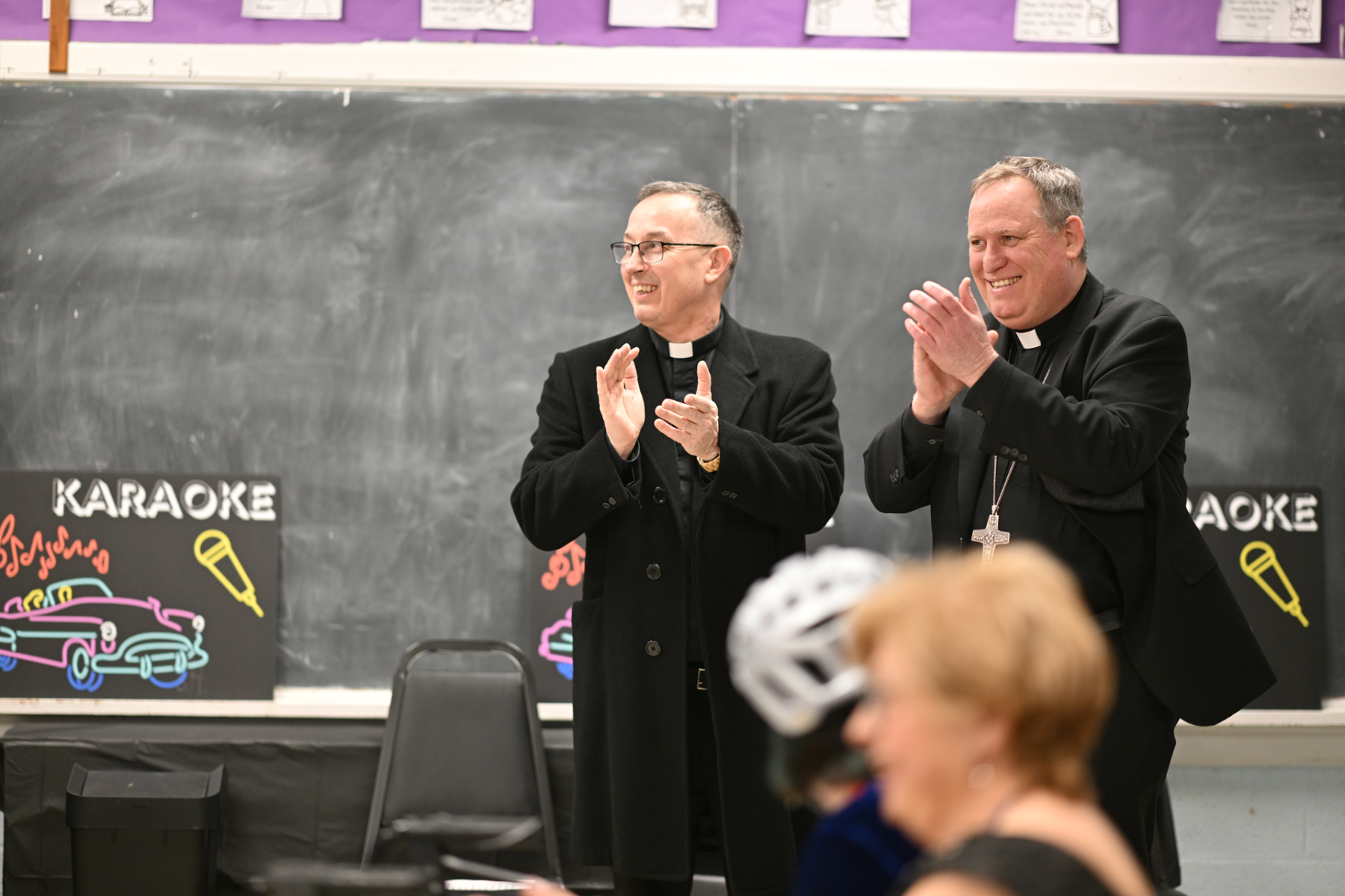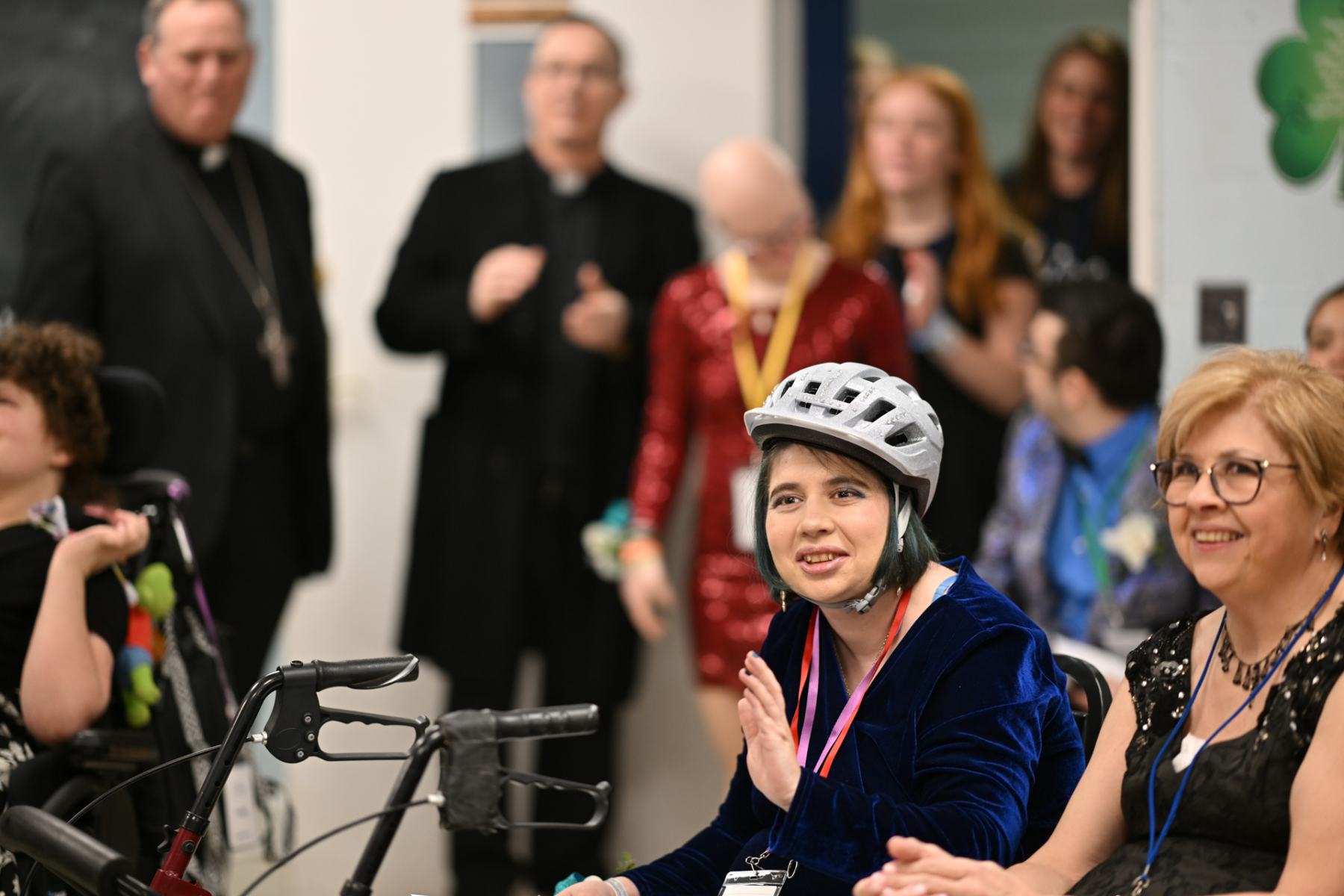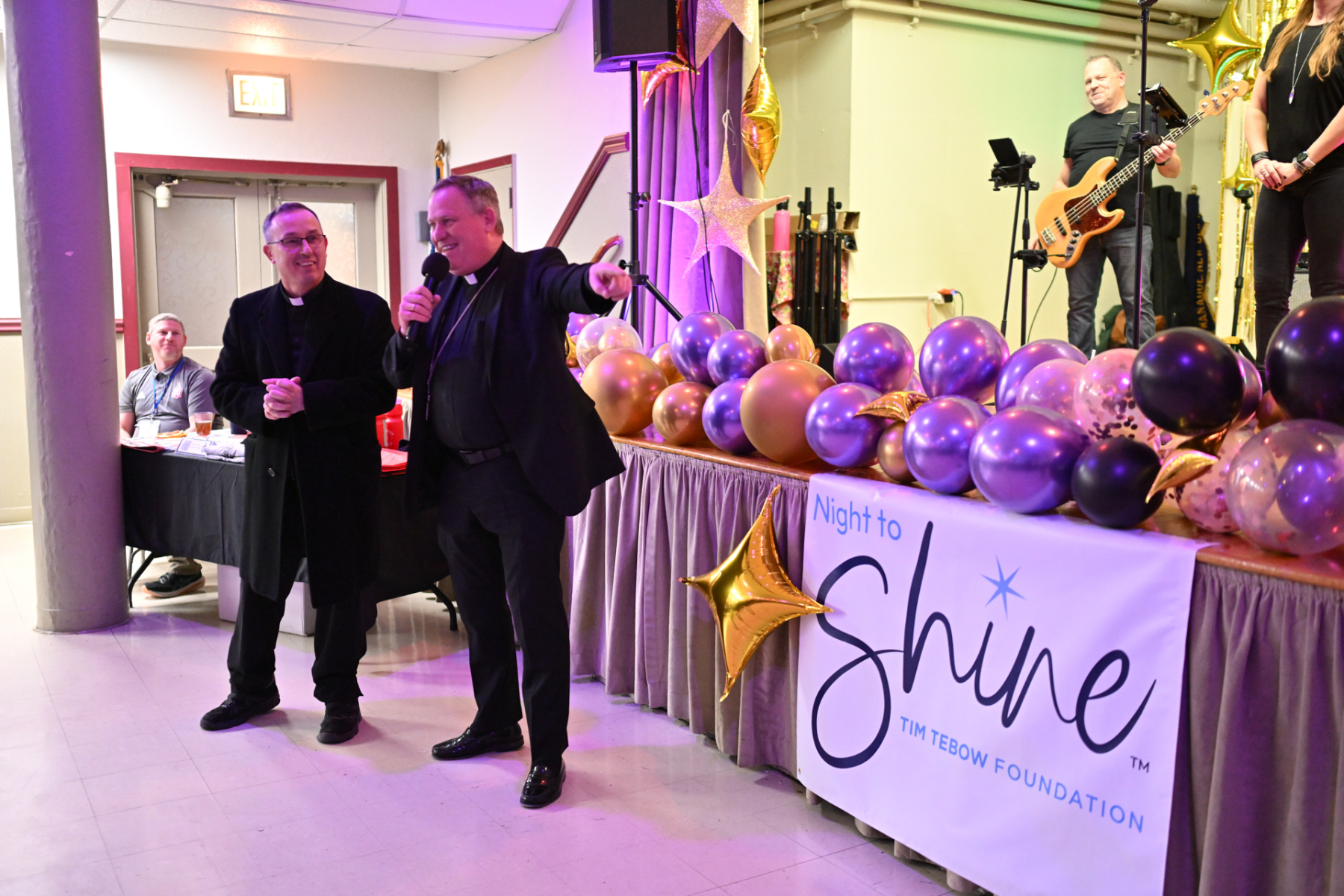 Night to Shine is a prom night experience and part of a worldwide celebration, centered on God’s love, for people with physical or developmental disabilities, ages 14 and older. Bishop Kevin J. Sweeney and Father Greg Golba, pastor of St. Francis, joined the party that night.