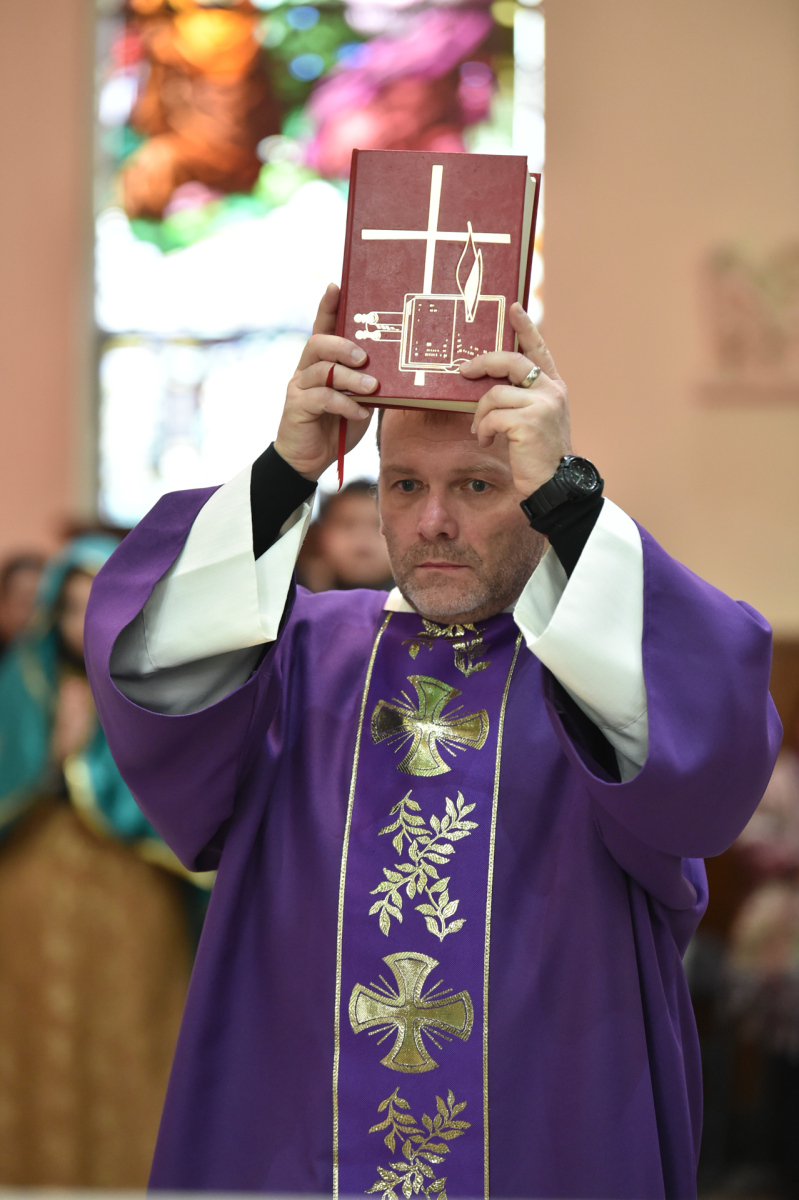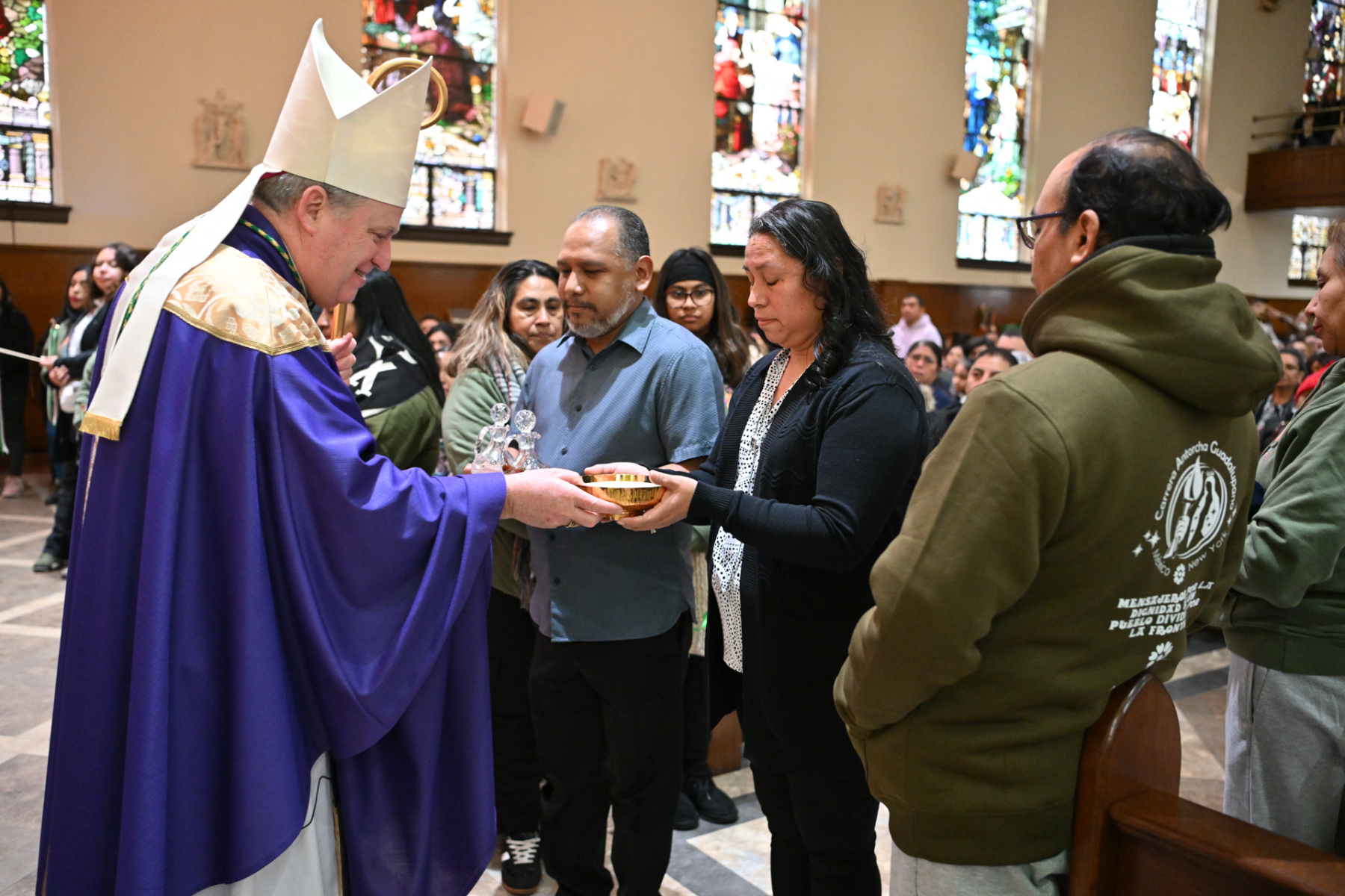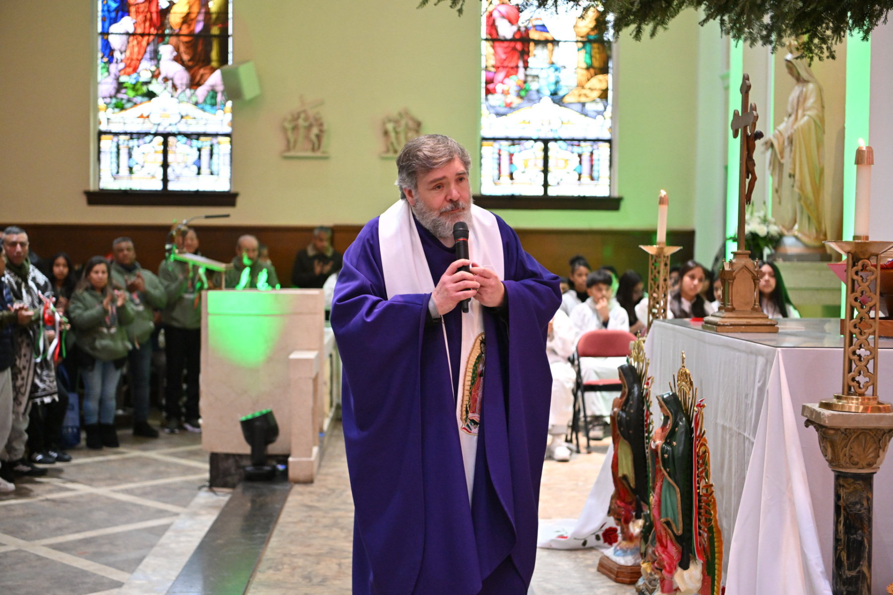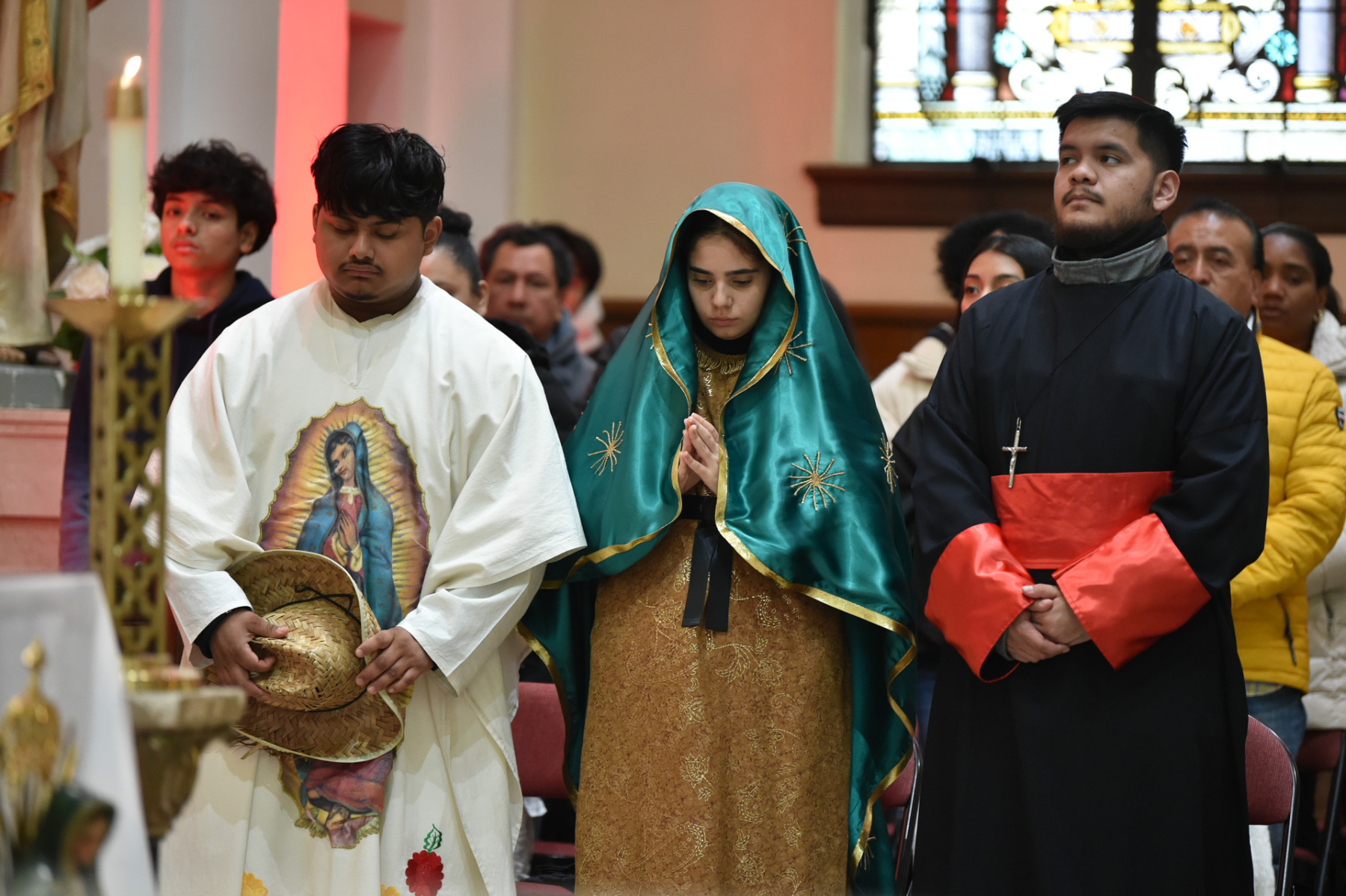 Bishop Sweeney celebrated the Mass after the faithful finished the 90-minute procession through the streets of Passaic — a 28-year tradition. Father Antonio Rodriguez, Holy Trinity’s pastor, concelebrated the liturgy with Bishop Sweeney, assisted by Deacon Pawel Halat of the parish and a visiting deacon. The church’s altar displayed a large image of Our Lady of Guadalupe.