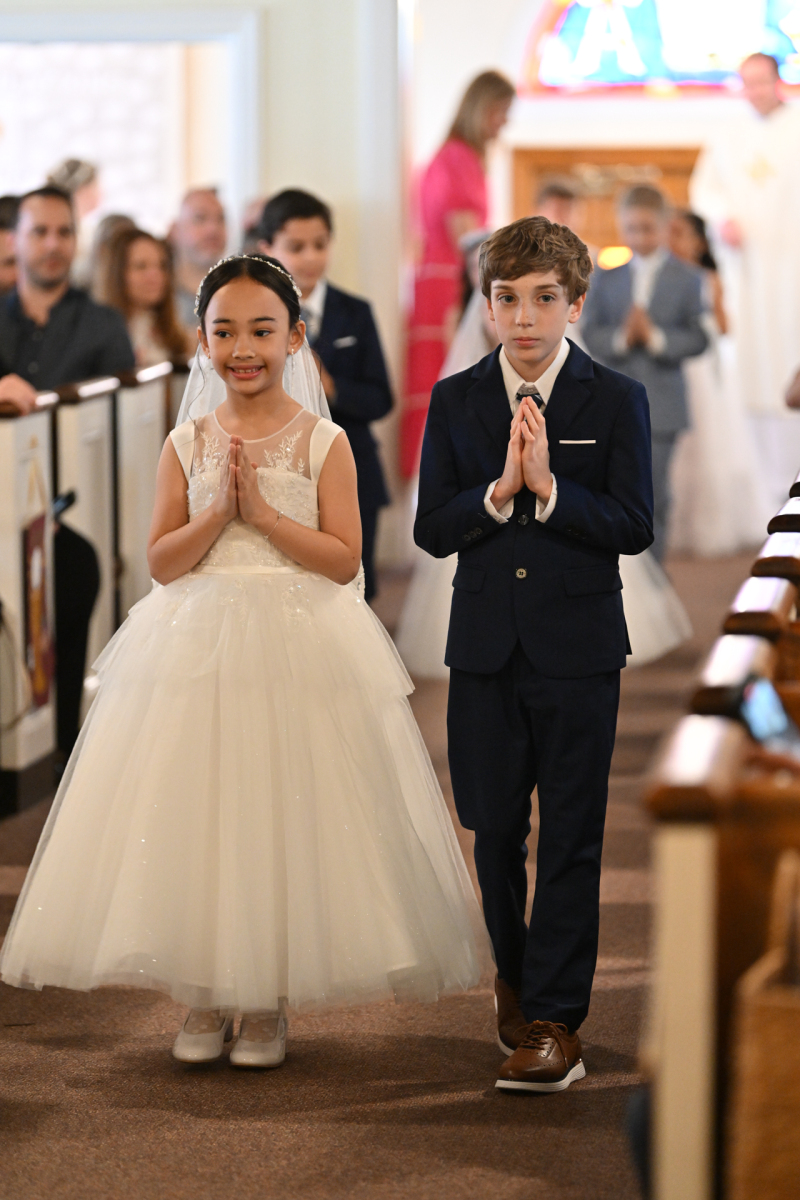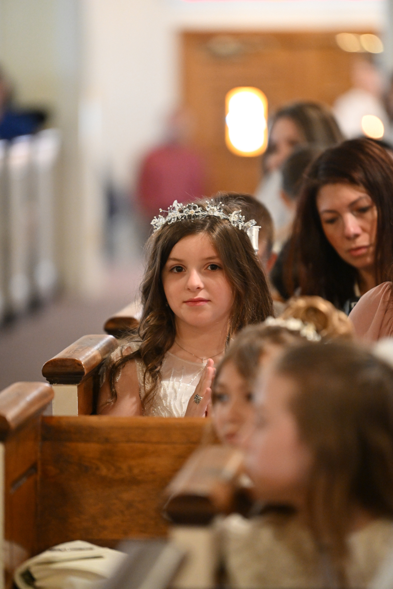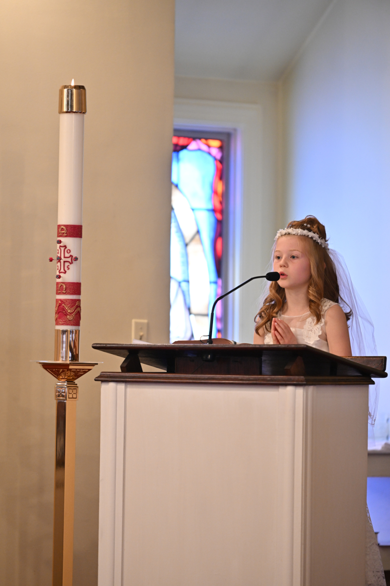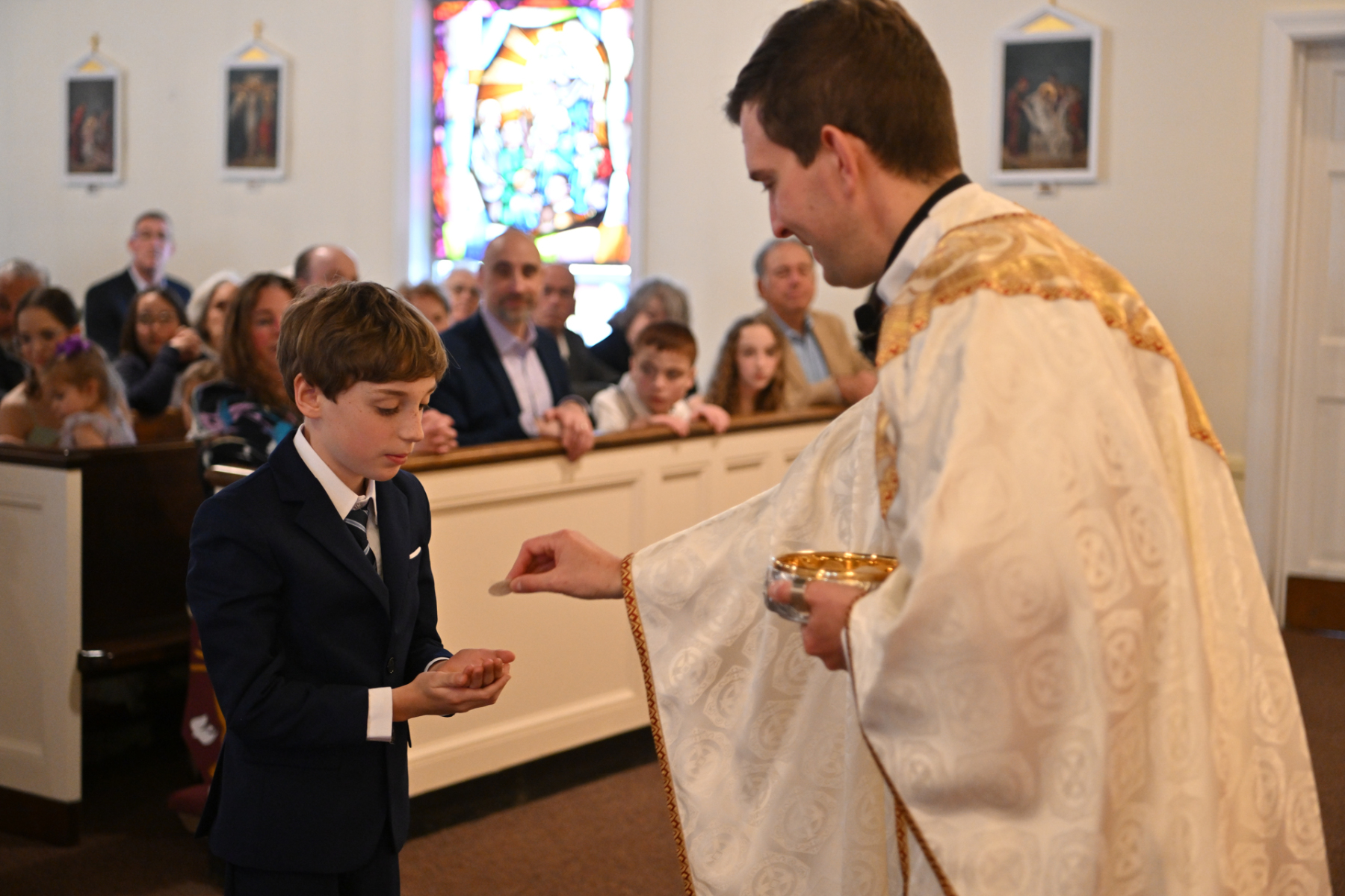 On May 10, 47 youth from the Family Faith Formation program of Holy Family Parish in Pequannock and the parish school received Jesus’ Body and Blood in the Eucharist for the first time during two Masses at 10 a.m. and noon.