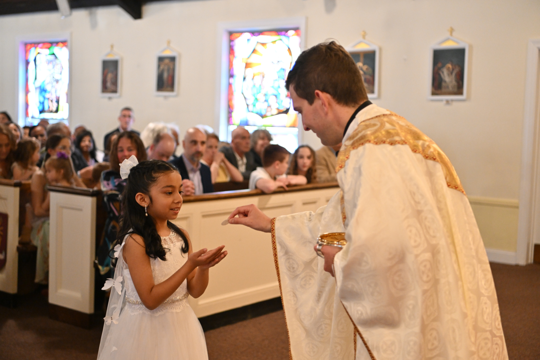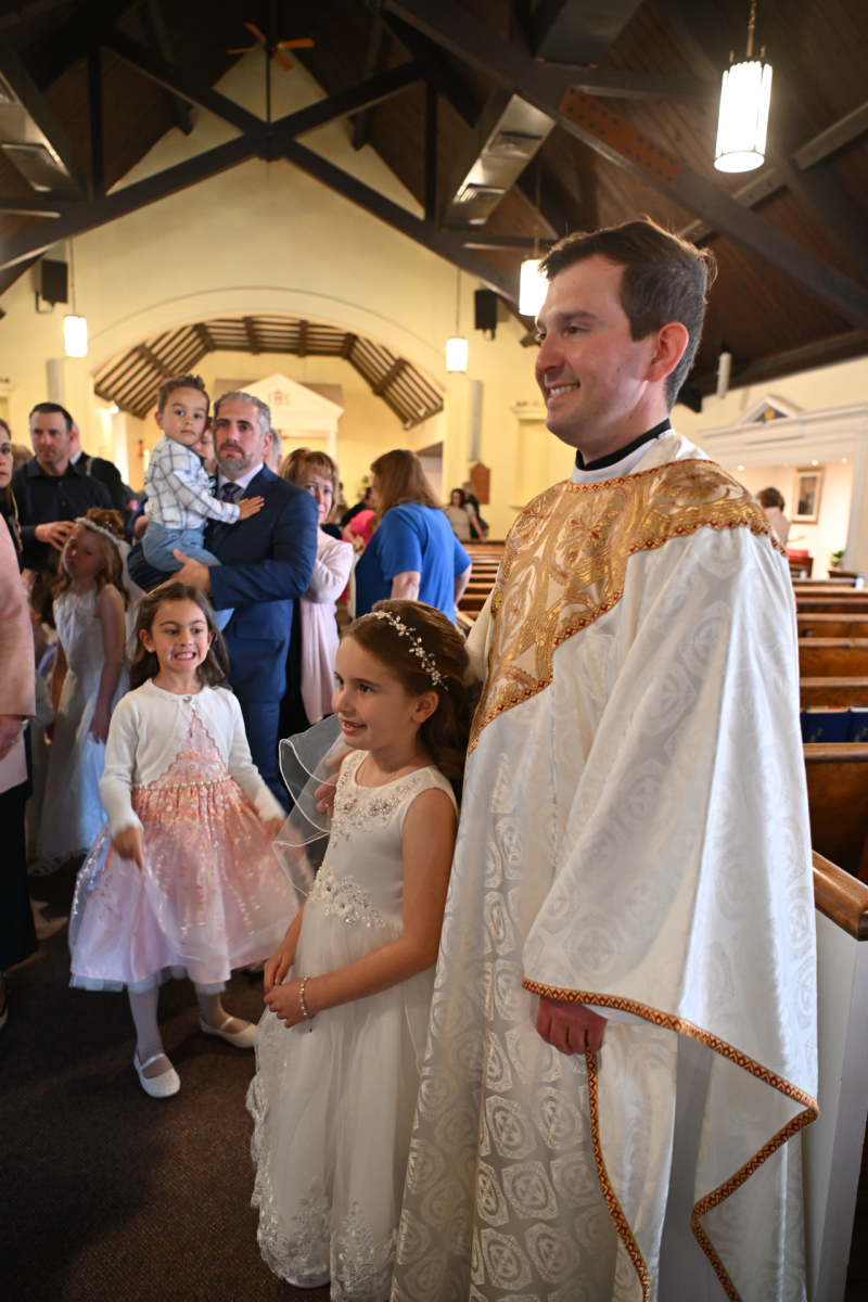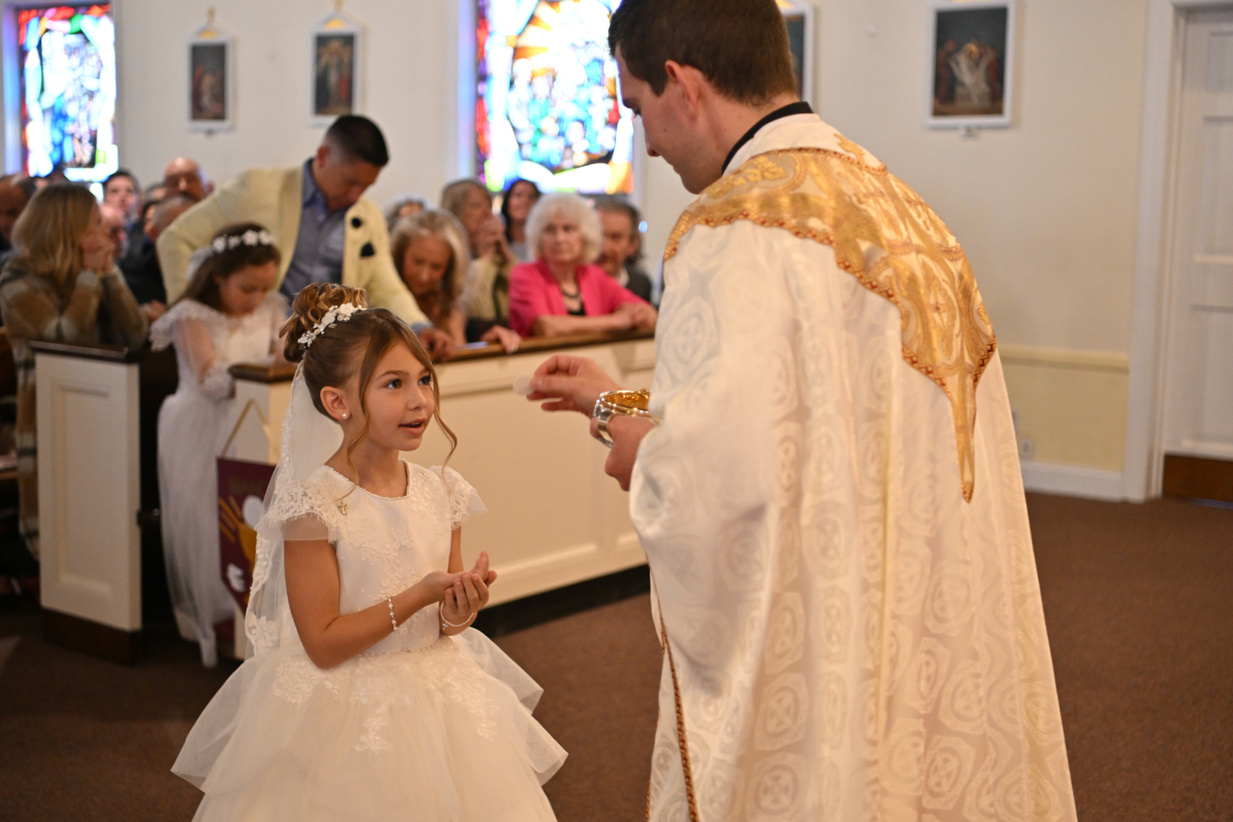Addressing the First Communicants, Father Prisk said, “Boys and girls, today we become a tabernacle. We become the dwelling place of God as we receive him in the Eucharist. And so as Jesus dwells in us, may others recognize him in us, and may the Eucharist change us to be more like him. May others recognize Jesus in us and, importantly, may we recognize Jesus in other people and treat them accordingly.”