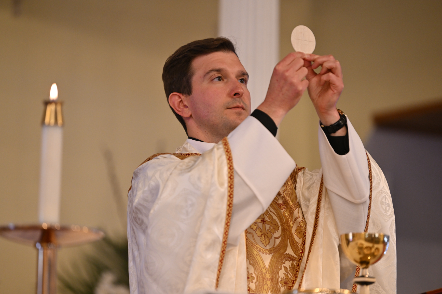 Father Stephen Prisk, Holy Spirit’s pastor, and Paterson Diocesan vice chancellor, celebrated the First Eucharist liturgies. Rev. Mr. Brendon J. Harfmann assisted with the Masses. He is among three transitional deacons who will be ordained to the Paterson Diocesan priesthood by Bishop Sweeney on Saturday, June 7, at 10 a.m. in the Cathedral of St. John the Baptist in Paterson.