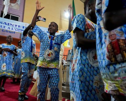 The Mass marked the final event of the pope’s 11-day visit to Africa. Arriving at the stadium in his popemobile, Pope Leo was greeted with cheers from the people attending the Mass, many of whom were dressed in the Vatican’s white and yellow colors.