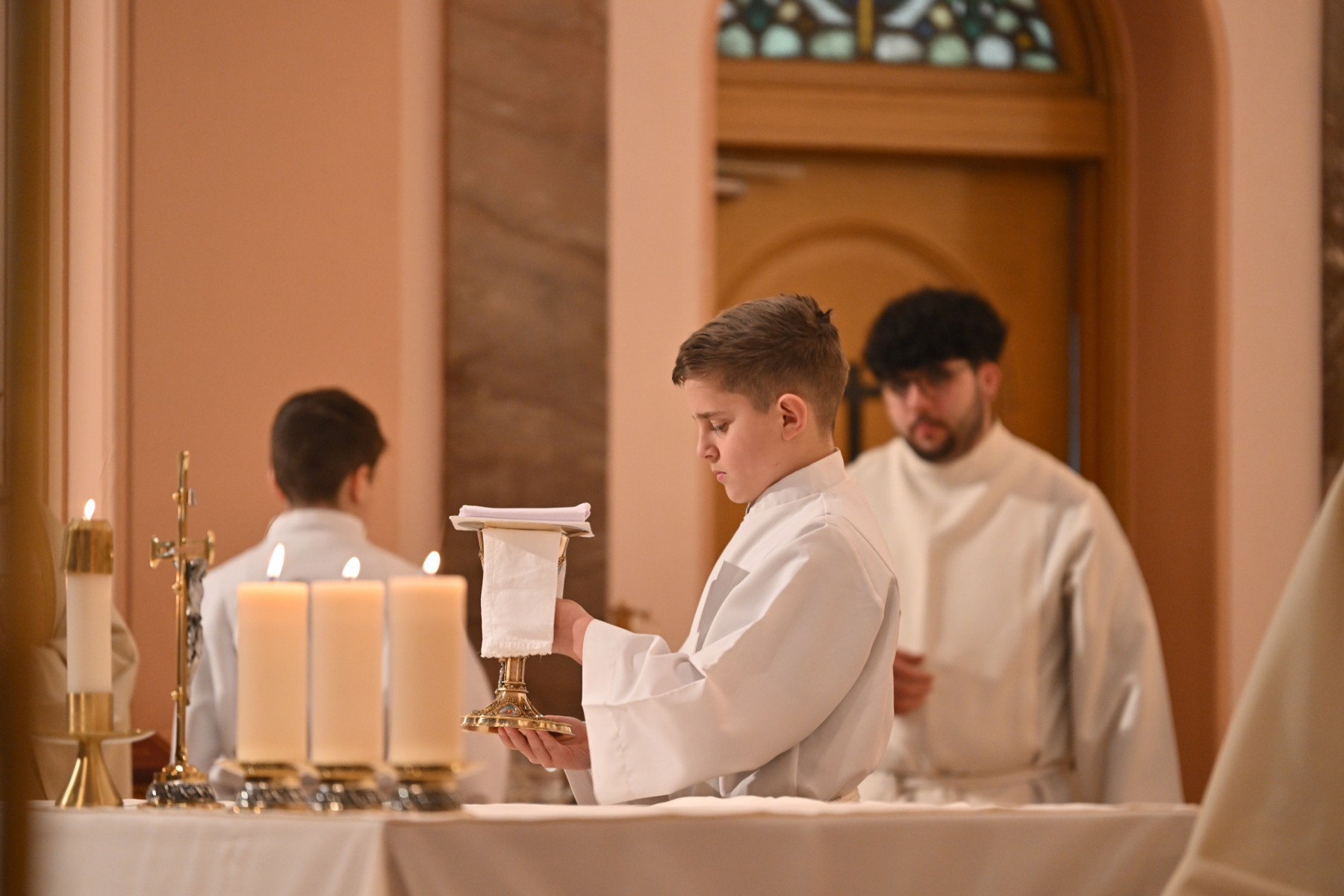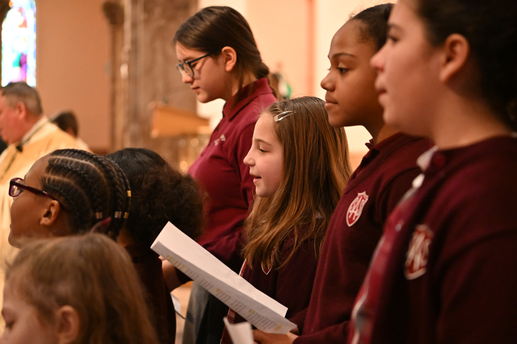 Father Stephen Prisk, pastor of St. Anthony Parish, and Father Brendon Harfmann, the parish’s parochial vicar, concelebrated the Mass. Students of St. Anthony’s also participated in the liturgy. The Knights of Columbus presented Salesian Sister Mary Jackson, the principal, with a check for the school from proceeds they raised during their “Keep Christ in Christmas” magnet sale.