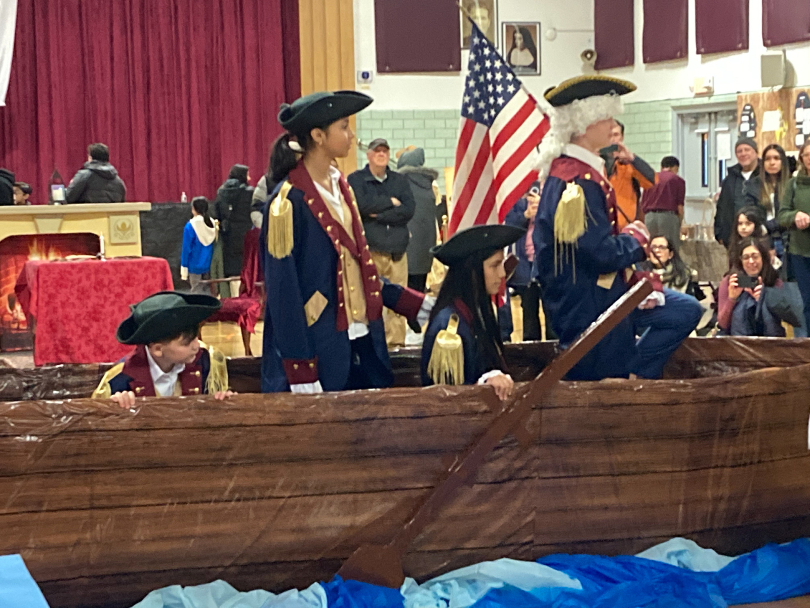 The eighth grade capped off the day with reenactments of the signing of the Declaration of Independence and Washington Crossing the Delaware.
