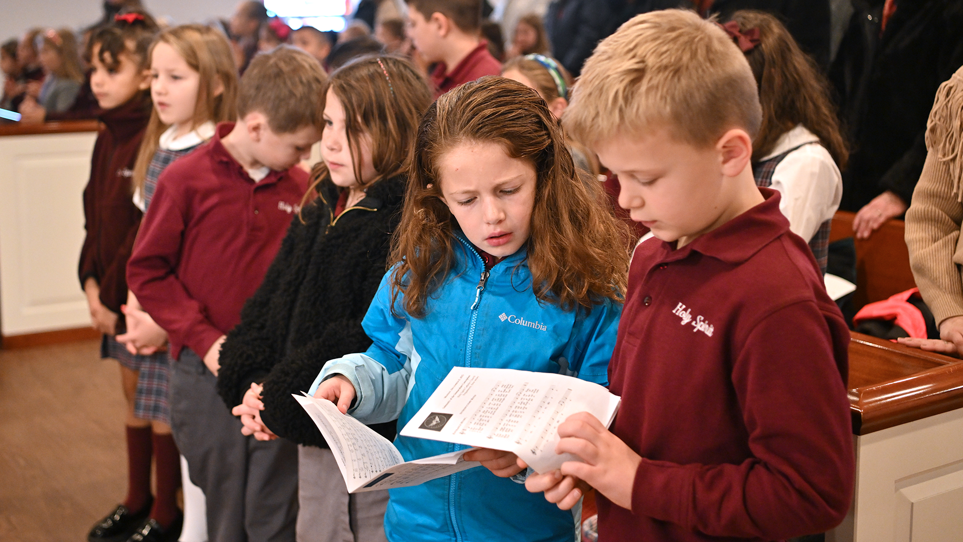 Holy Spirit Parish and School welcomed Bishop Kevin J. Sweeney on Dec. 8, who celebrated a Mass in the church for the Solemnity of the Immaculate Conception. After, he blessed and presented class rings to the eighth-graders during a ceremony.
