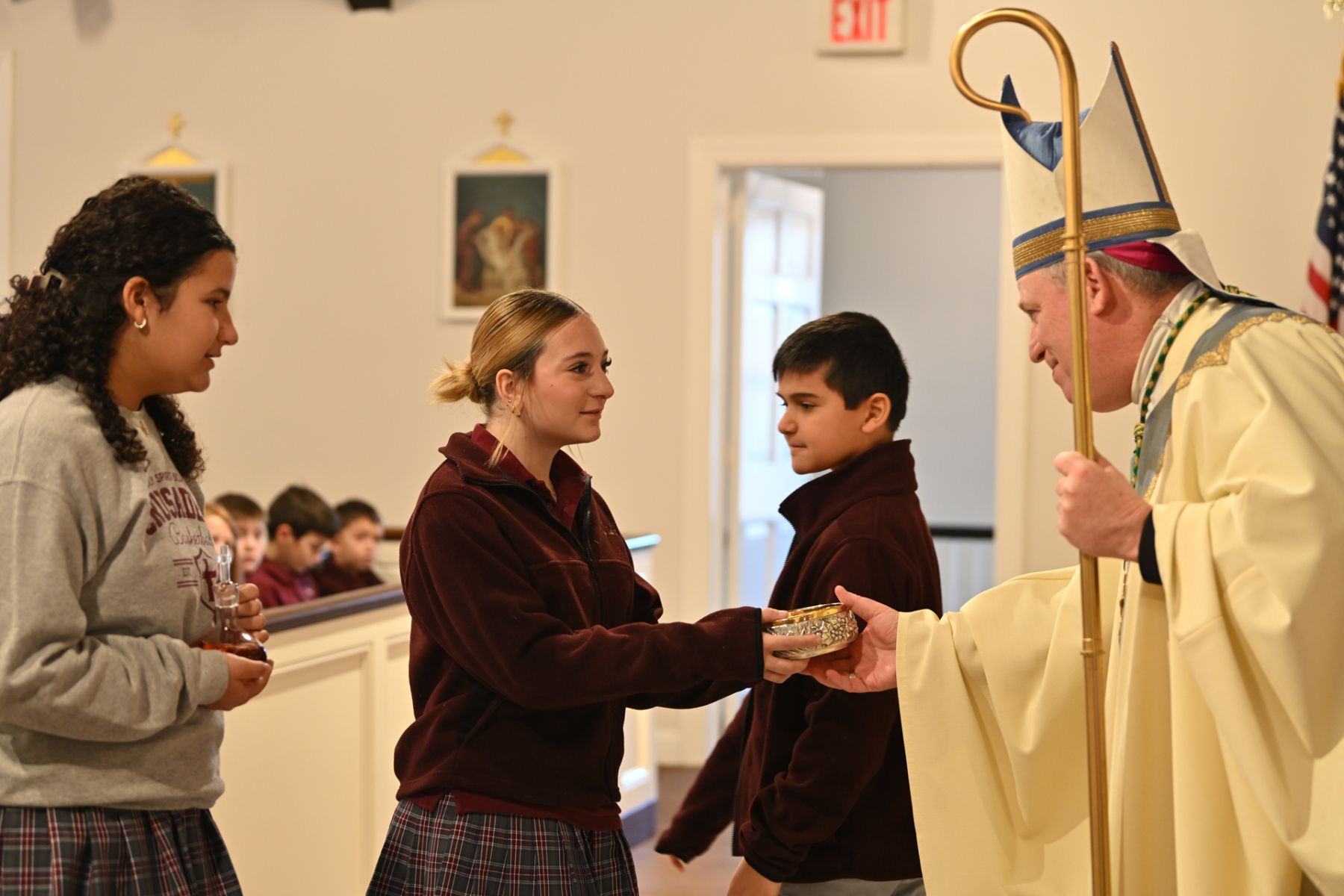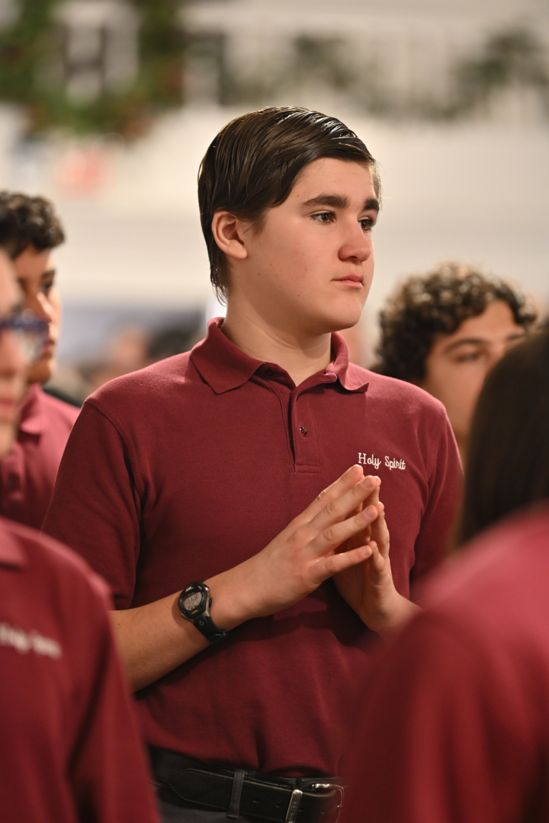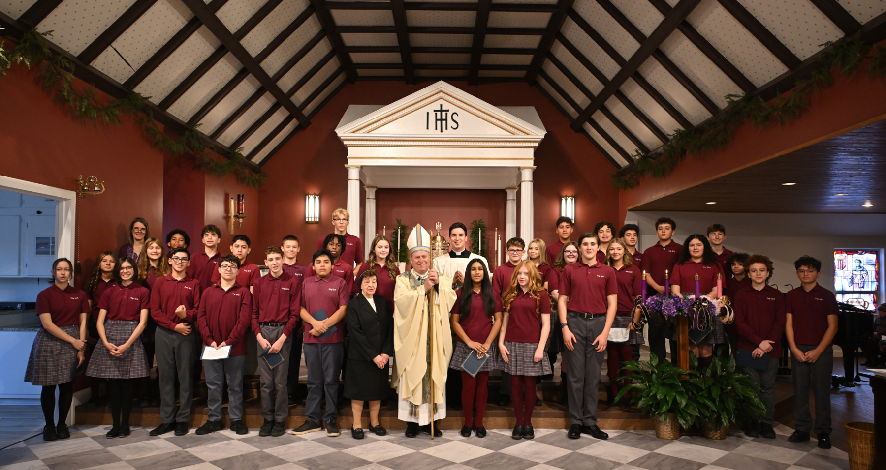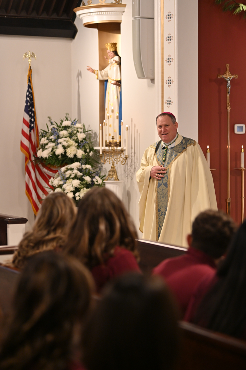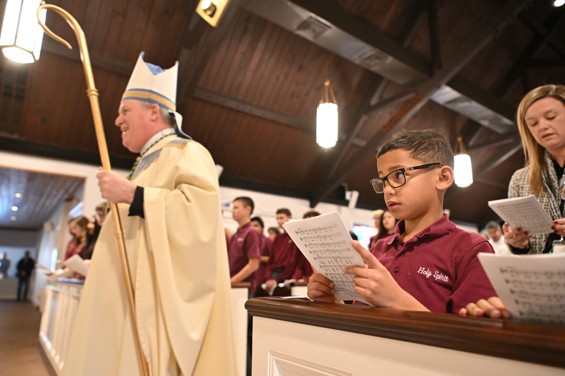 Holy Spirit Parish and School welcomed Bishop Kevin J. Sweeney on Dec. 8, who celebrated a Mass in the church for the Solemnity of the Immaculate Conception. After, he blessed and presented class rings to the eighth-graders during a ceremony.