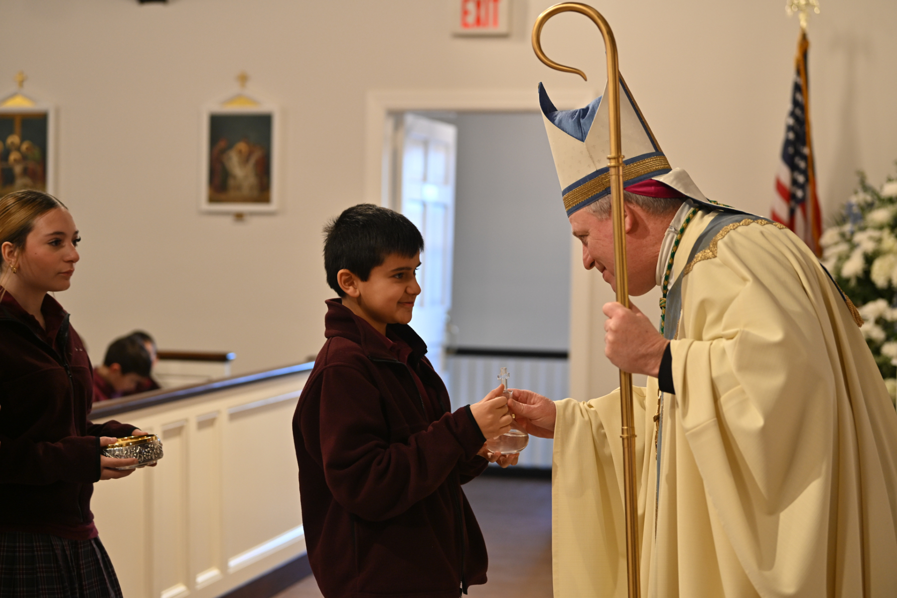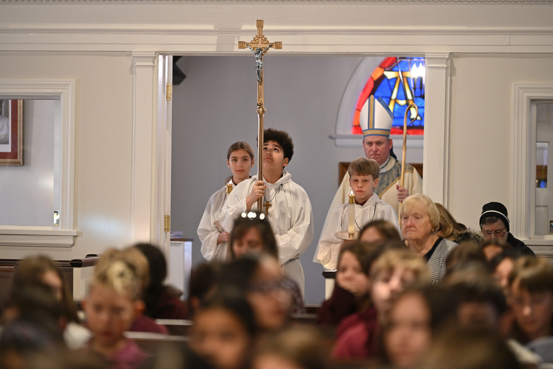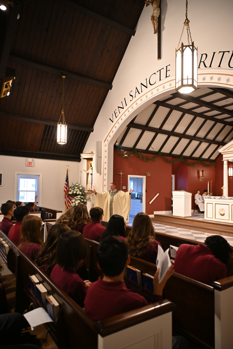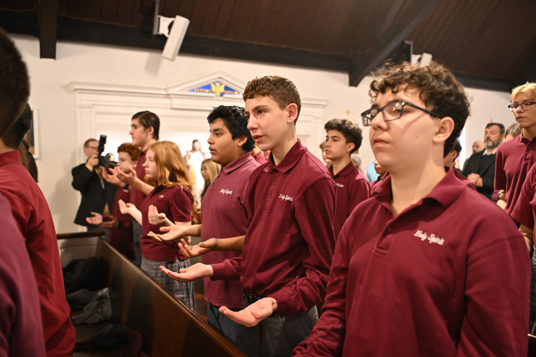 Holy Spirit Parish and School welcomed Bishop Kevin J. Sweeney on Dec. 8, who celebrated a Mass in the church for the Solemnity of the Immaculate Conception. After, he blessed and presented class rings to the eighth-graders during a ceremony.