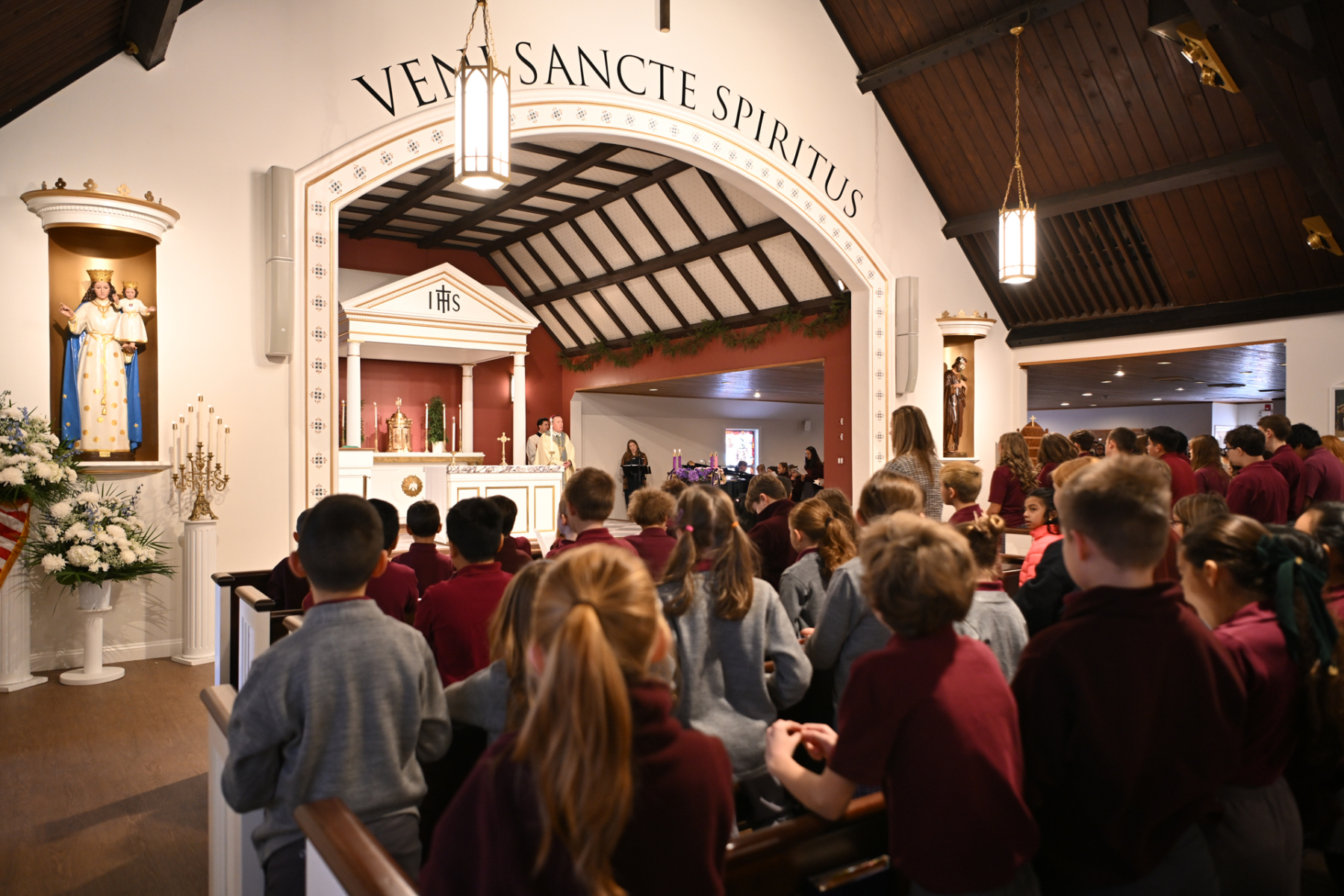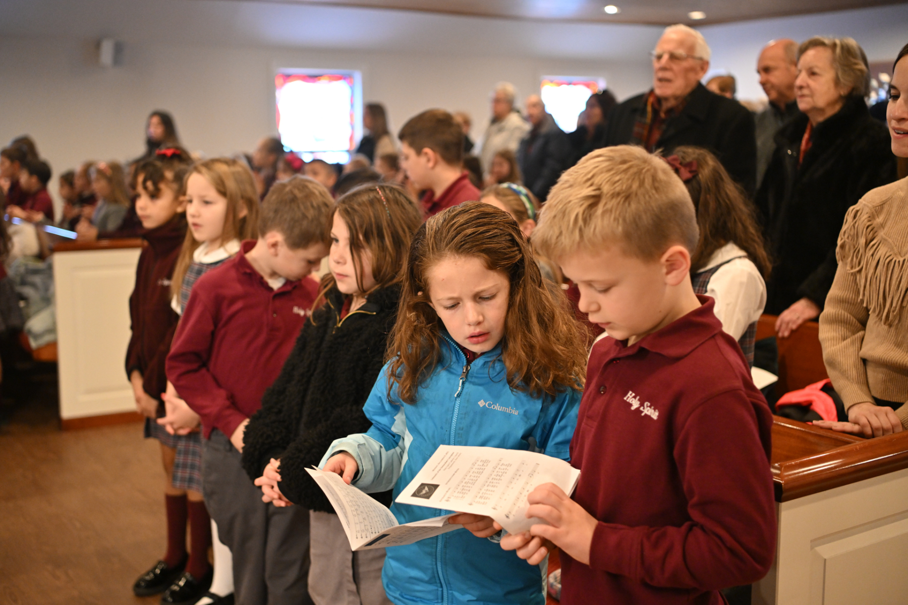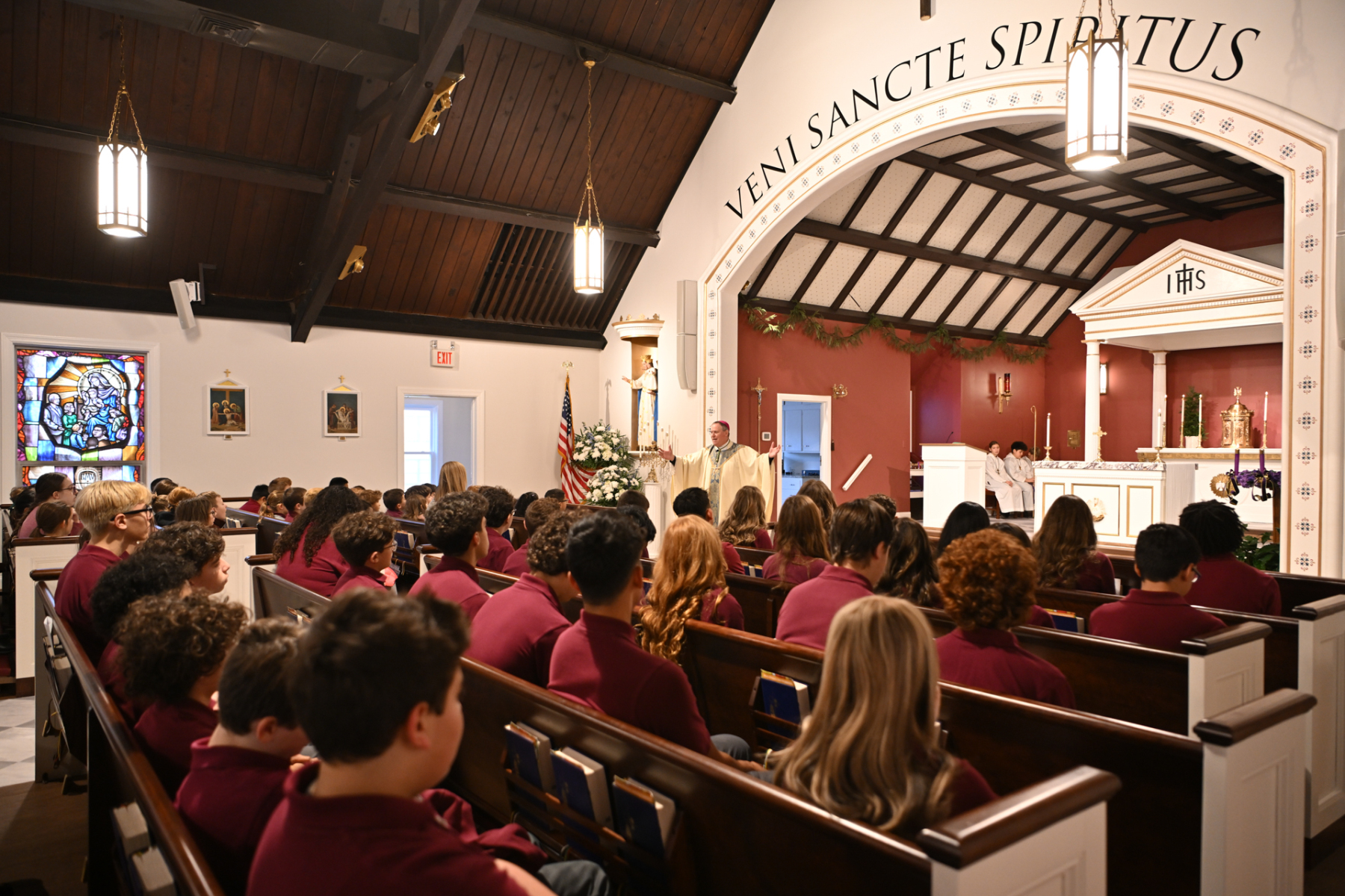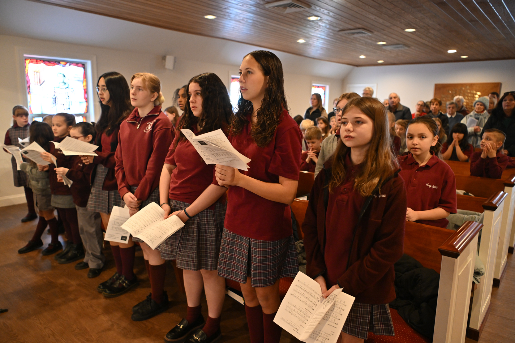 Holy Spirit Parish and School welcomed Bishop Kevin J. Sweeney on Dec. 8, who celebrated a Mass in the church for the Solemnity of the Immaculate Conception. After, he blessed and presented class rings to the eighth-graders during a ceremony.