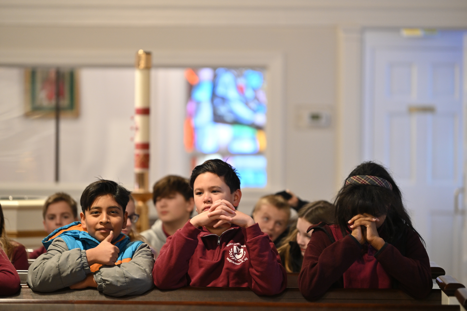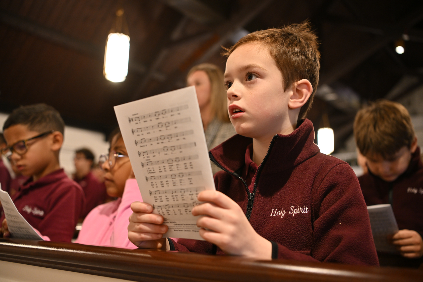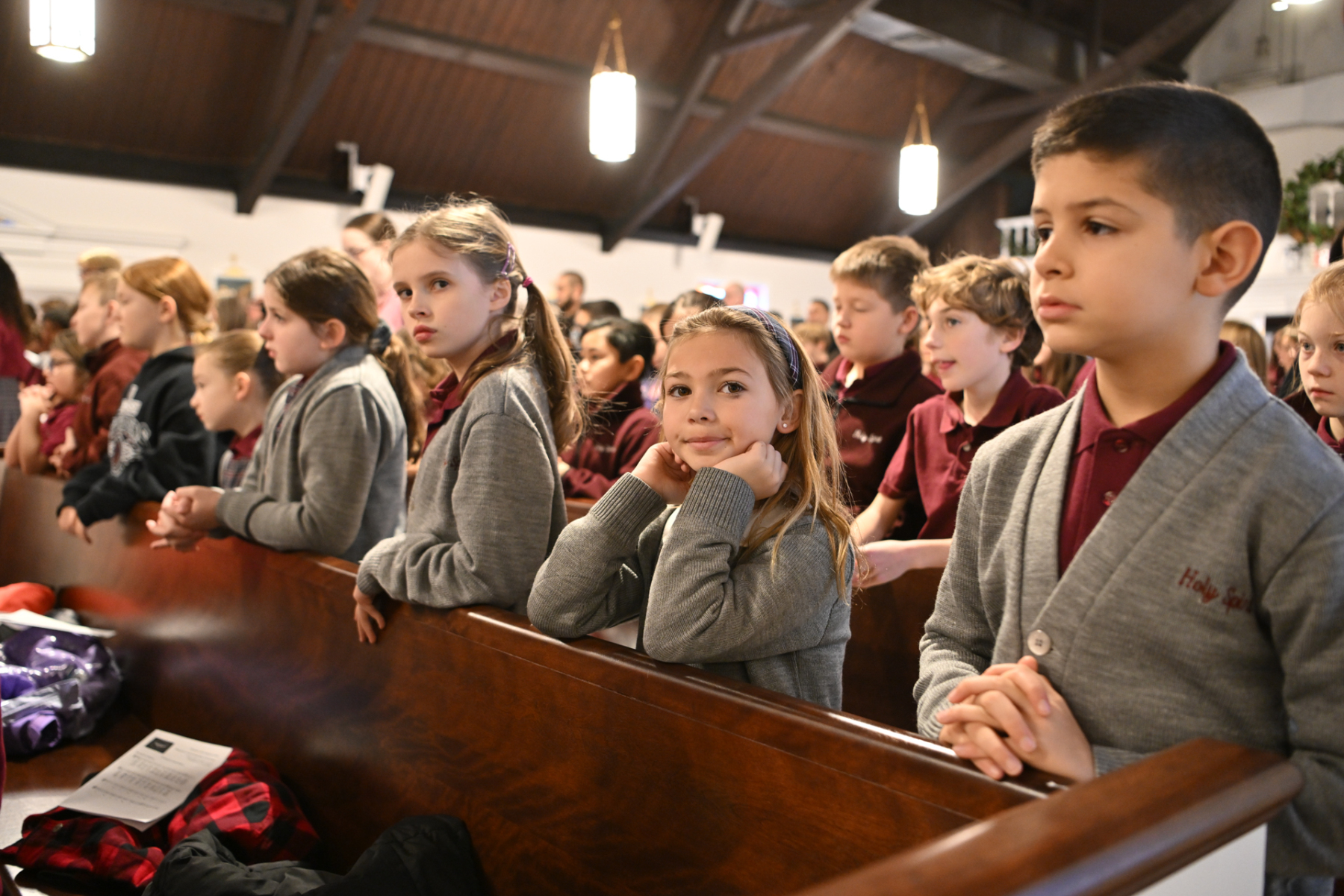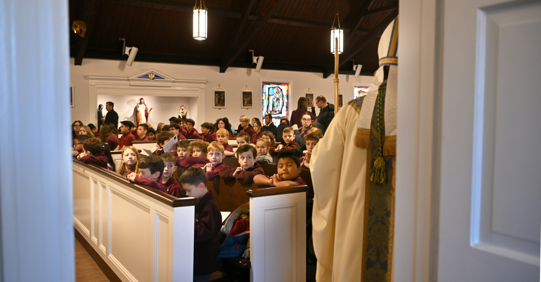 Holy Spirit Parish and School welcomed Bishop Kevin J. Sweeney on Dec. 8, who celebrated a Mass in the church for the Solemnity of the Immaculate Conception. After, he blessed and presented class rings to the eighth-graders during a ceremony.