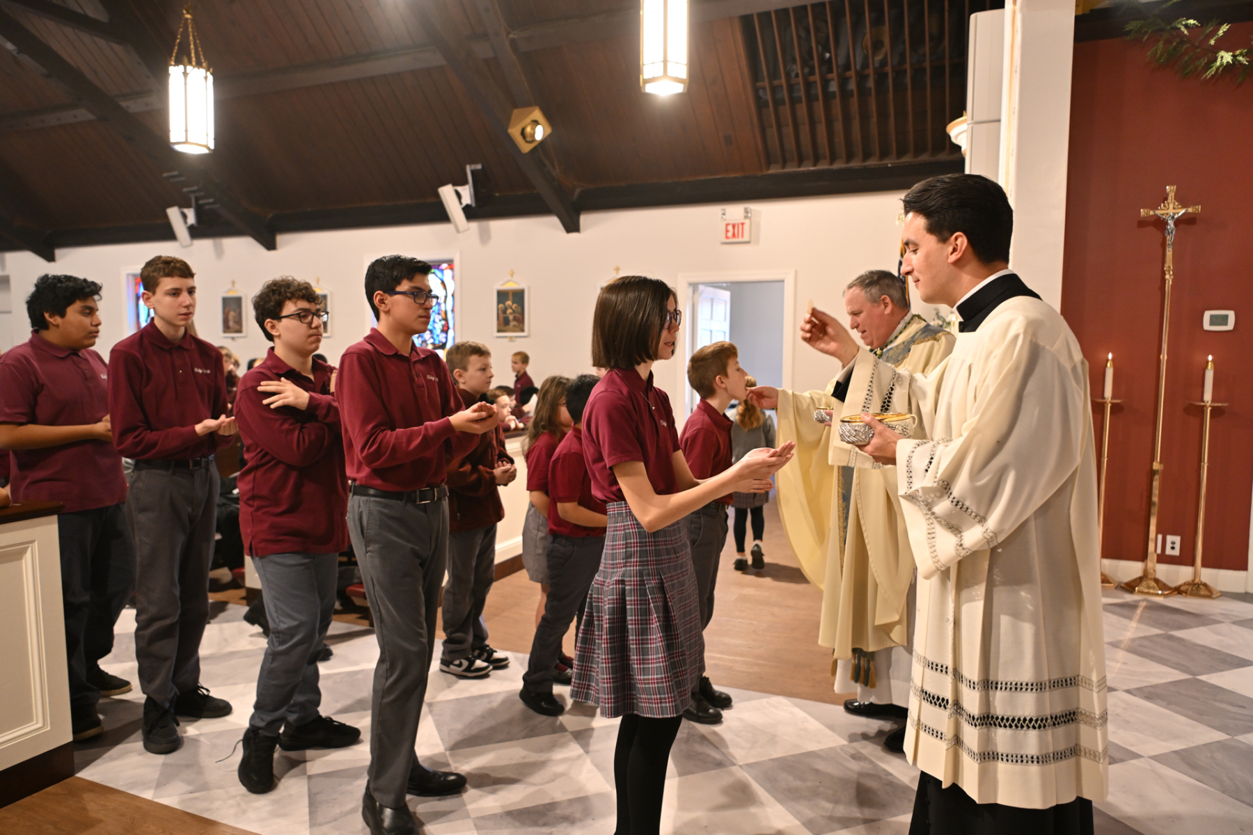 “How providential that, as we recall God’s wonders in the life of our Blessed Mother, our 8th graders will receive their class rings at the end of this Mass, thus marking the beginning of the end of this stage of their lives, but looking forward to what the Lord has in store for them as they pursue their education throughout their high school years,” Father Jaramillo said.