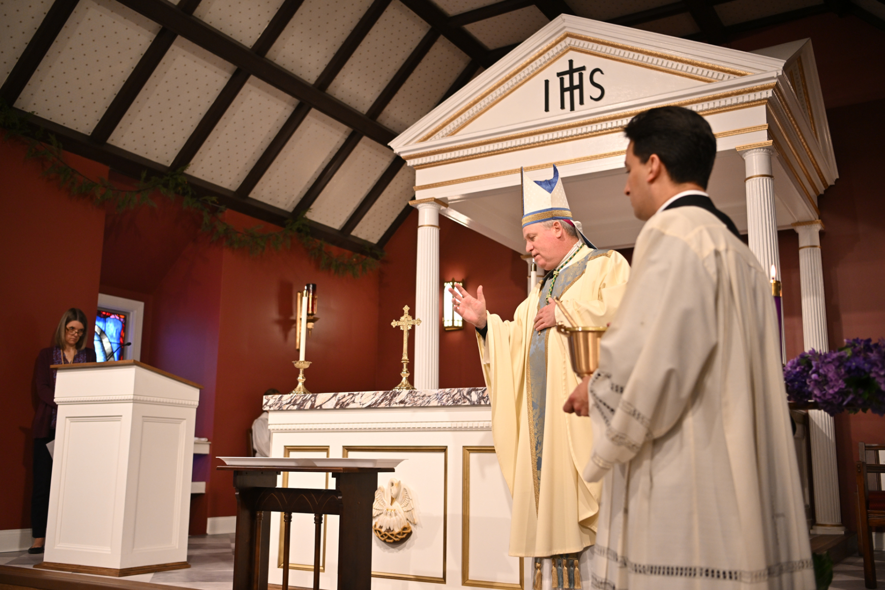 Father Cesar Jaramillo, pastor of Holy Spirit, concelebrated the Mass with Bishop Sweeney. The priest briefly spoke of the Immaculate Conception, a dogma declared by Pope Pius IX in 1854. The dogma proclaimed that the Blessed Virgin Mary, Mother of God and our Mother, was preserved from all stain of original sin from the first moment of her conception.