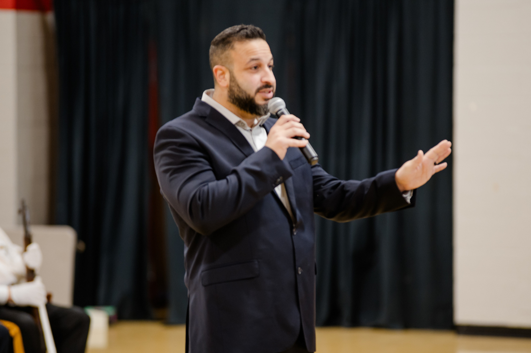 During the ceremony, Mazloom shared his experiences serving in the Navy, speaking about teamwork, perseverance, and the honor of representing the United States. His words encouraged students to appreciate the freedoms they enjoy and recognize the sacrifices made to protect them.