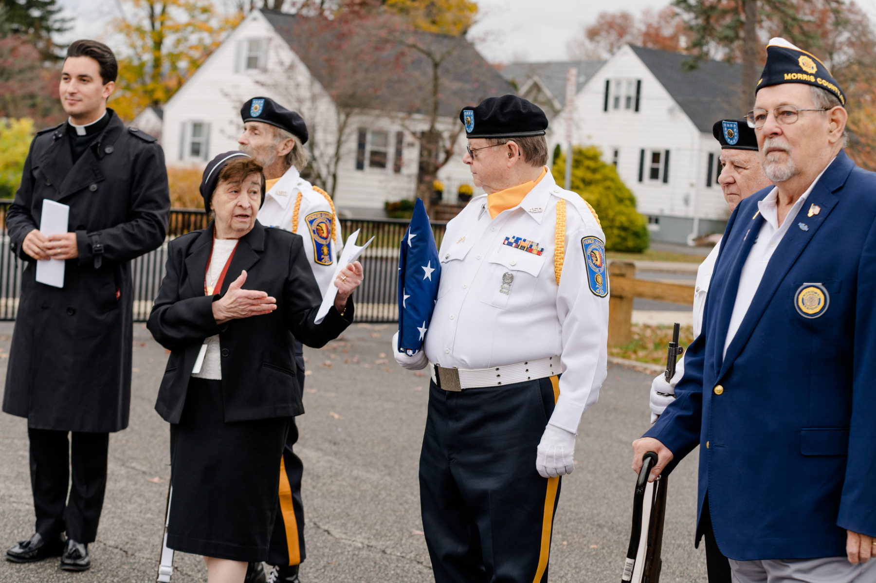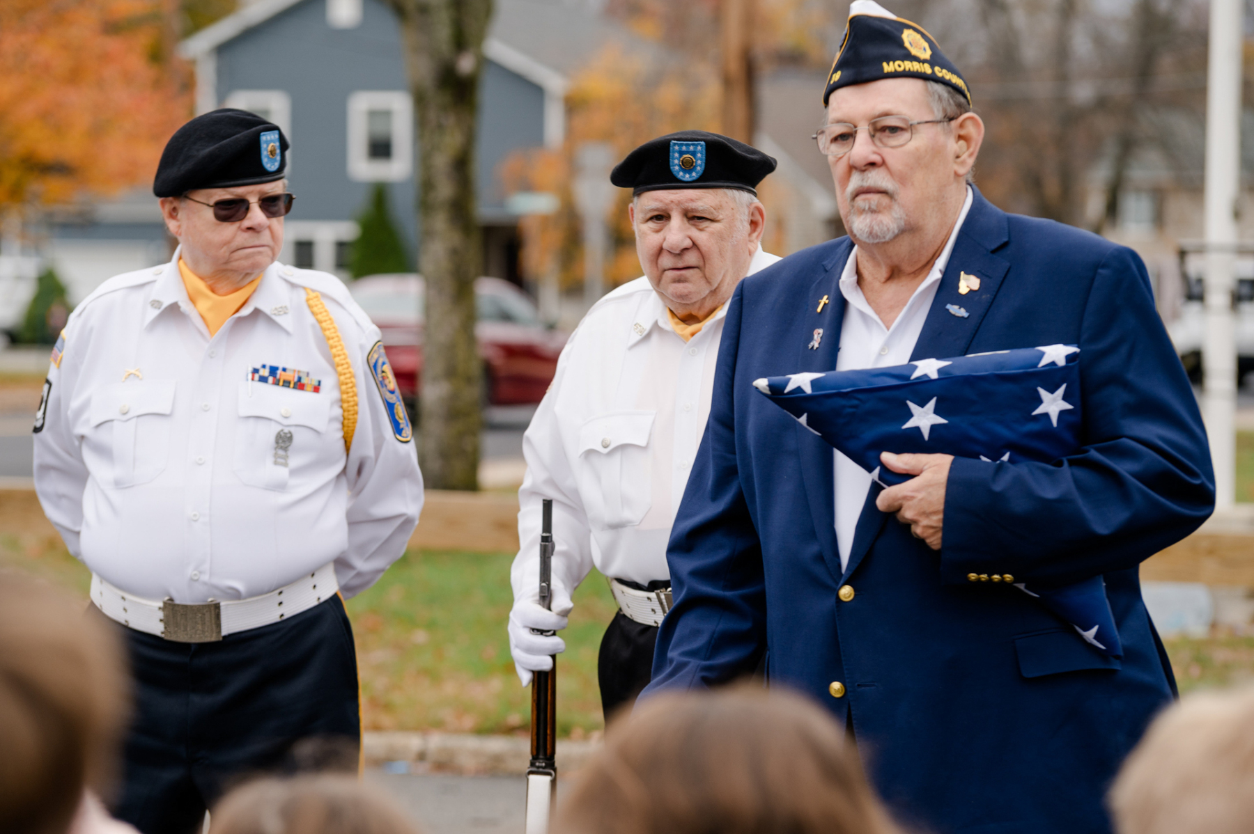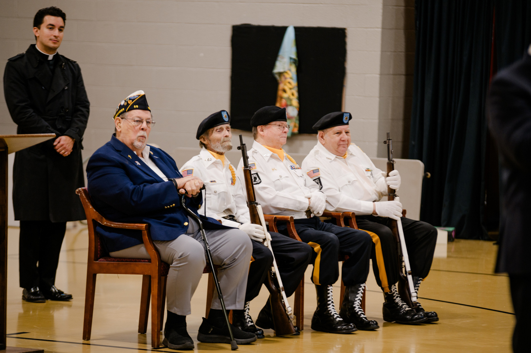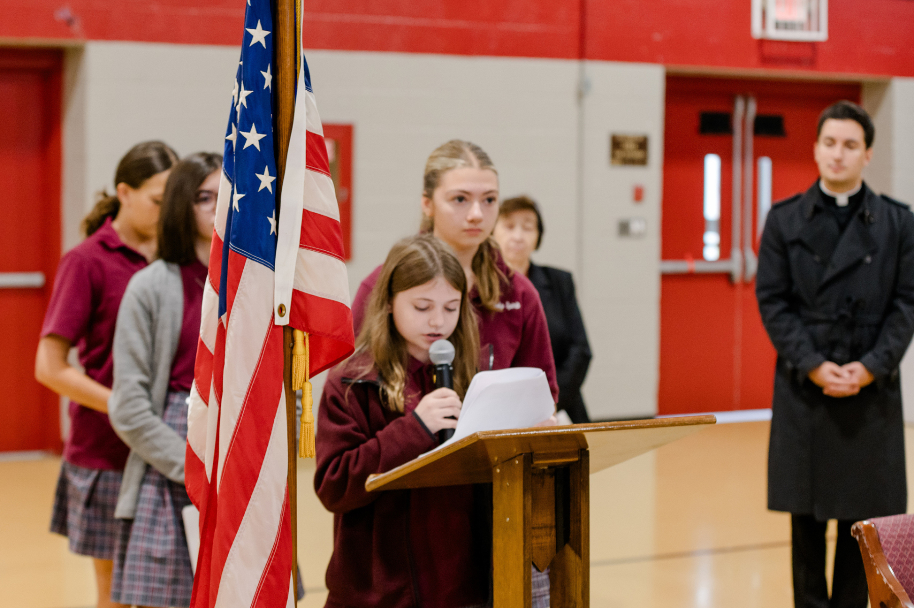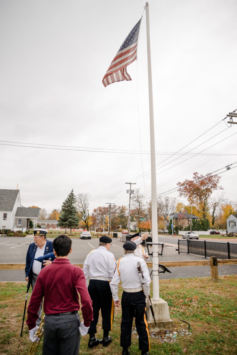 Students, teachers, parents, and guests filled the gym. They welcomed members from American Legion Post 450, including Dennis Porpora, Daniel Boyle, Pat McKevor, and Morris County American Legion Vice Commander Dominick Sabol Sr. The ceremony began with a prayer of gratitude for all who serve or have served and a moment of silence for those who made the ultimate sacrifice.
