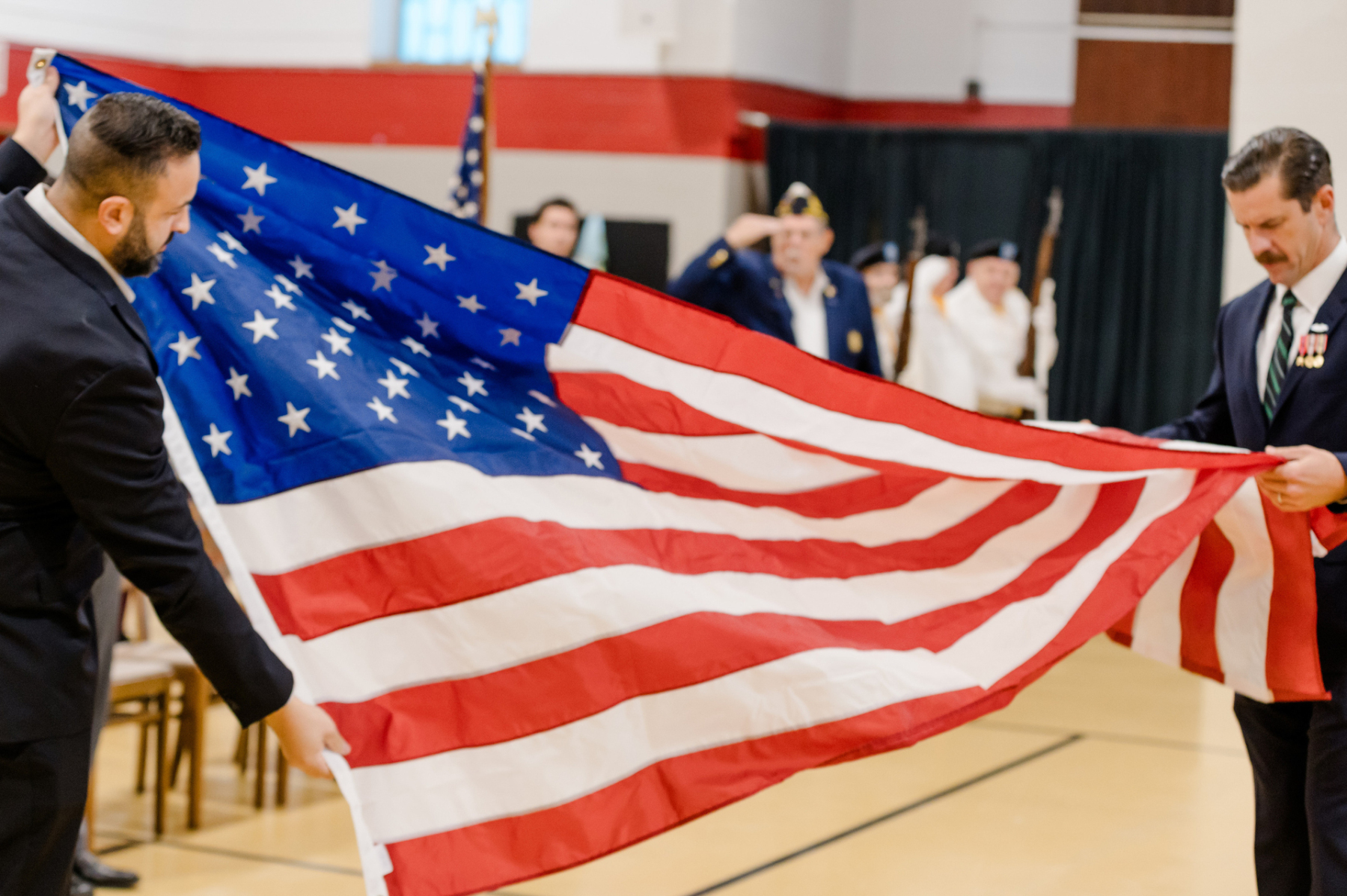 Mazloom and Moore led a flag-folding demonstration. The gymnasium fell silent for the playing of “Taps” by eighth grader Christiano Levia on the trumpet.