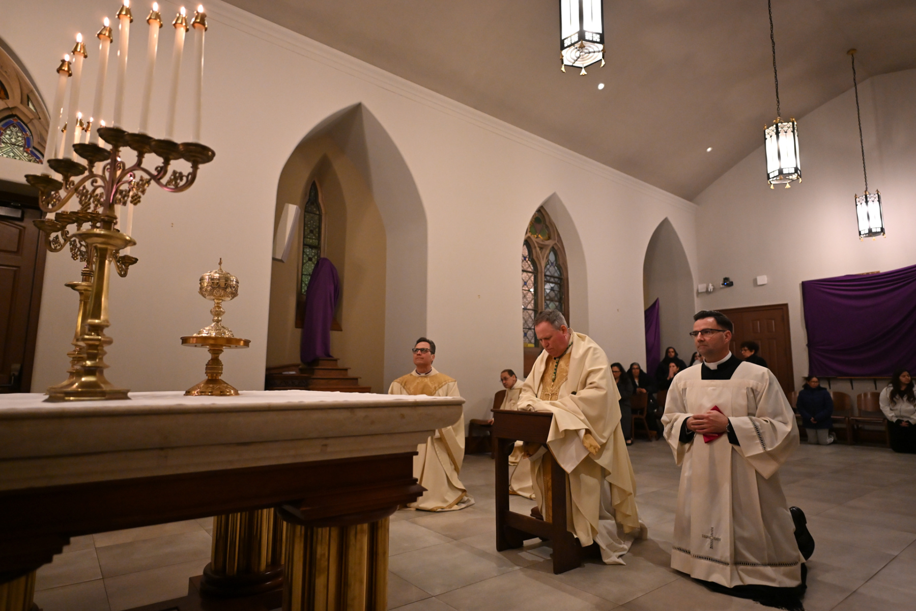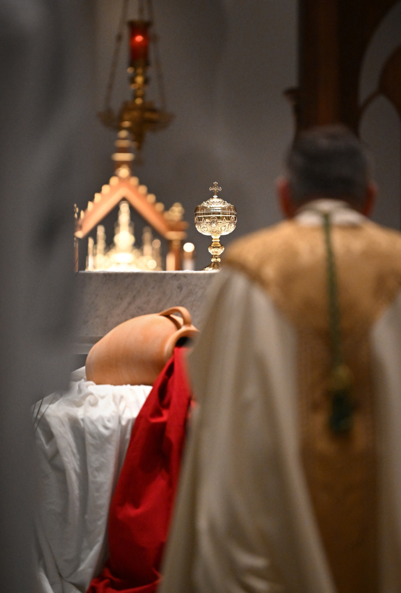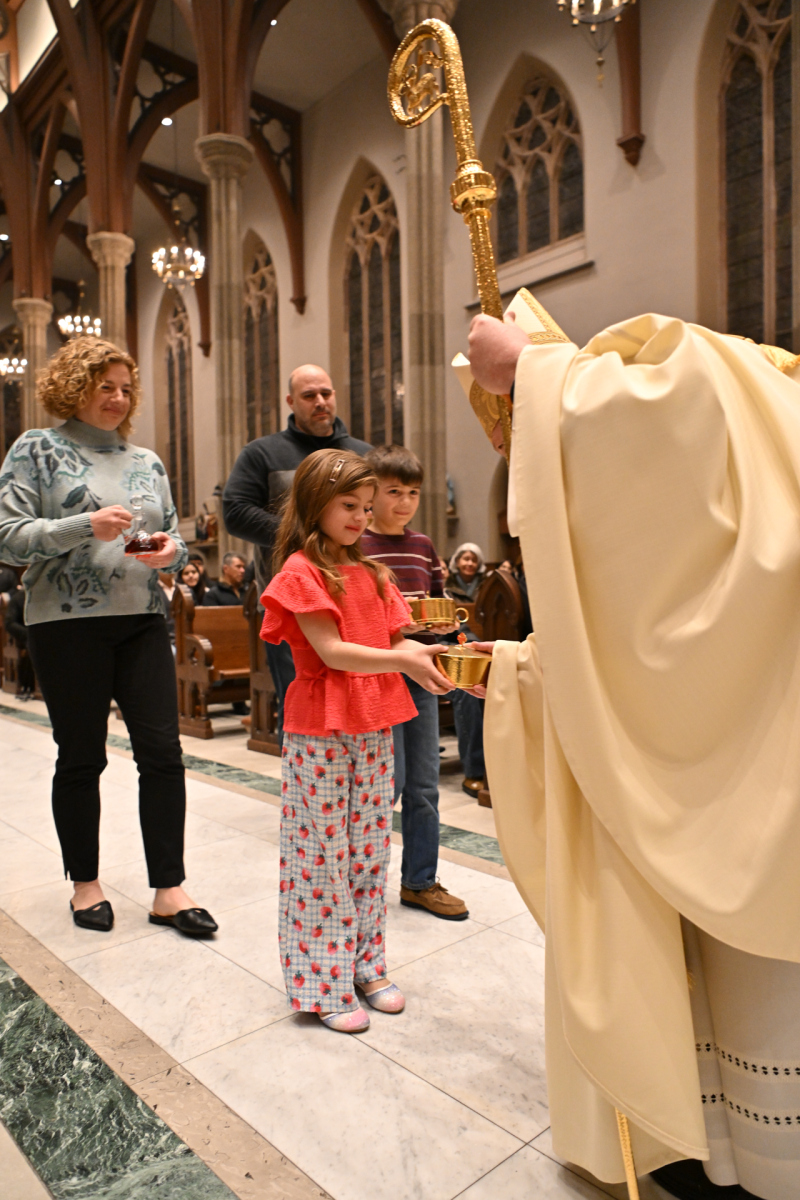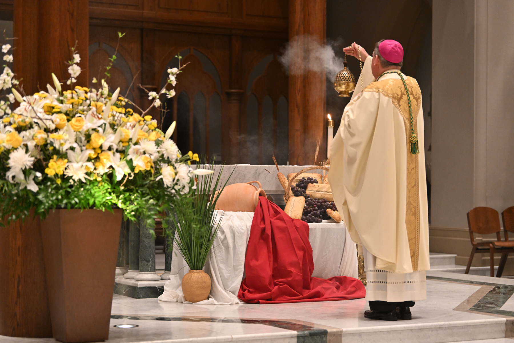 The Mass commemorates the institution of the sacraments of the Eucharist and Holy Orders by Jesus Christ. Just as Jesus washed the feet of his disciples at the Last Supper, Bishop Sweeney washed the feet of select faithful to symbolize the service and charity of Christ, who came “not to be served, but to serve.” By example of washing his disciples’ feet, Jesus demonstrated how Christians are to love one another through humble service.