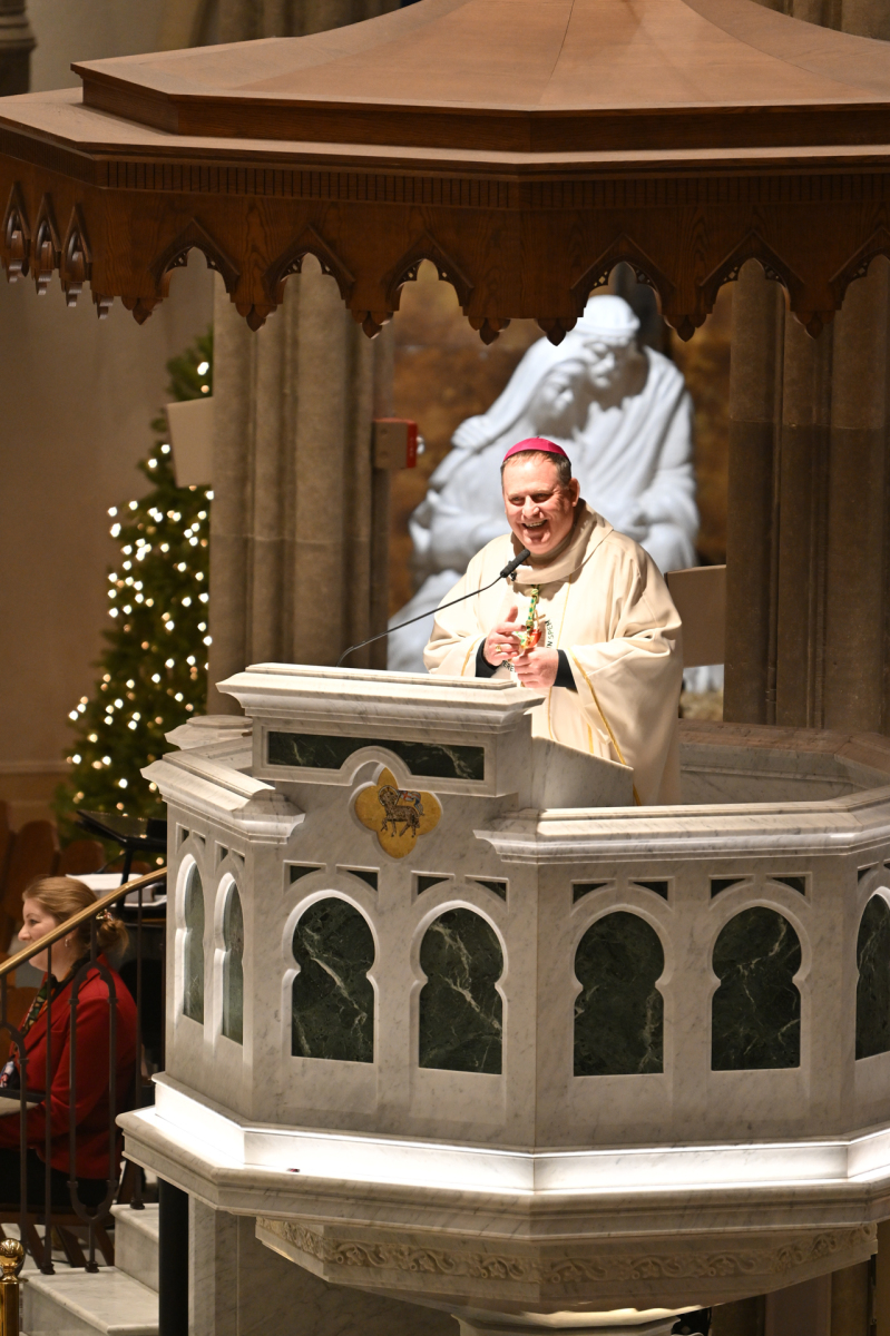 Again looking toward the future for the diocese, Bishop Sweeney said in his homily that Pope Leo might have given the Church some direction when he delivered his first address to the papal curia, Church leaders in Rome, on the Monday before Christmas. The pope asked them to reflect on two aspects of the Church: mission — the call to be “missionary disciples” and “witnesses to the Gospel”— and evangelization — to be a “joyful Church, welcoming to all and attentive to the poorest,” Bishop Sweeney said.