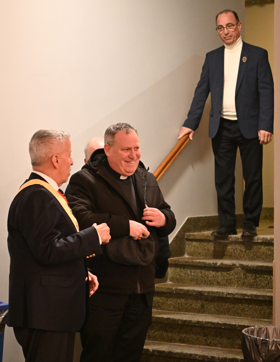 Among those in attendance were representatives of 35 to 40 knights councils of the 55 in the Paterson Diocese and N.J. State Knights’ officers. Father Steven Shadwell, chaplain of the Paterson knights’ federation and pastor of Our Lady of the Magnificat Parish in Kinnelon, N.J., and Msgr. T. Mark Condon, diocesan vicar general and moderator of the Curia and Holy Angels’ pastor, also attended the event.
