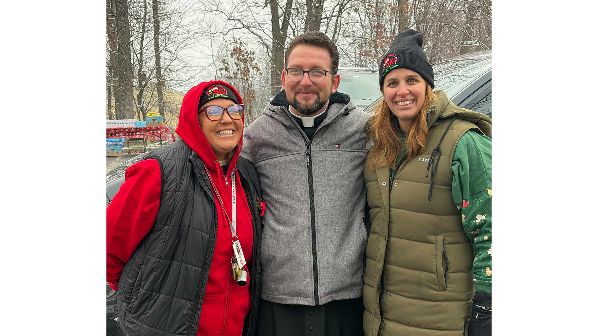 The inaugural Divine Mercy Academy (DMA) Holiday Hustle 5K walk/run was held on Saturday, Dec. 6, at Peterson Memorial Field in Rockaway. 160 runners participated in the event, which raised more than $9,700 to be used to support DMA, also in Rockaway, N.J. Pictured above are Dr. Kelly Cacella, DMAprincipal; Father Mateusz Darlak, parochial vicar of St. Cecilia Parish in Rockaway; and Lauren Bretzger, DMA physical education teacher and event chairperson.
